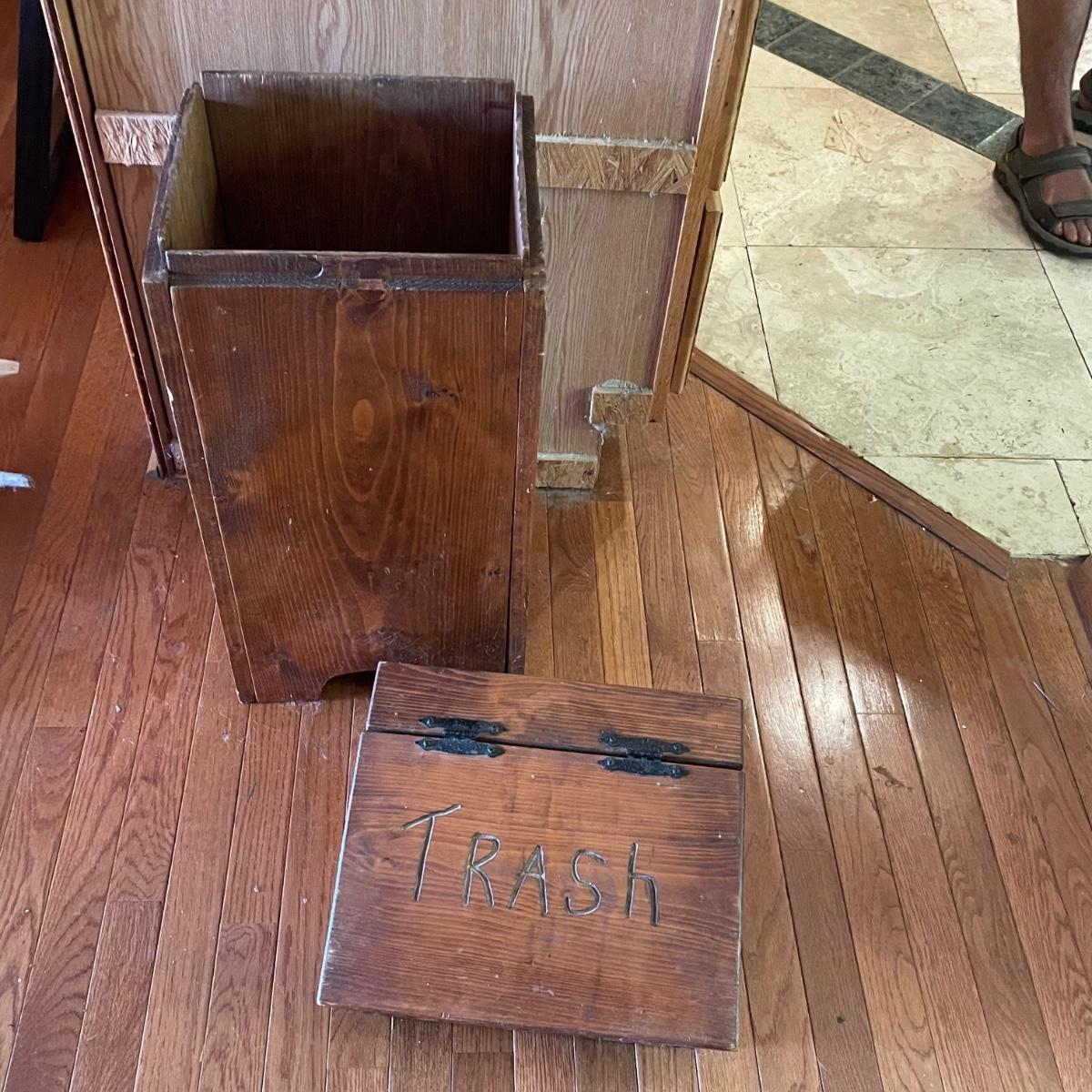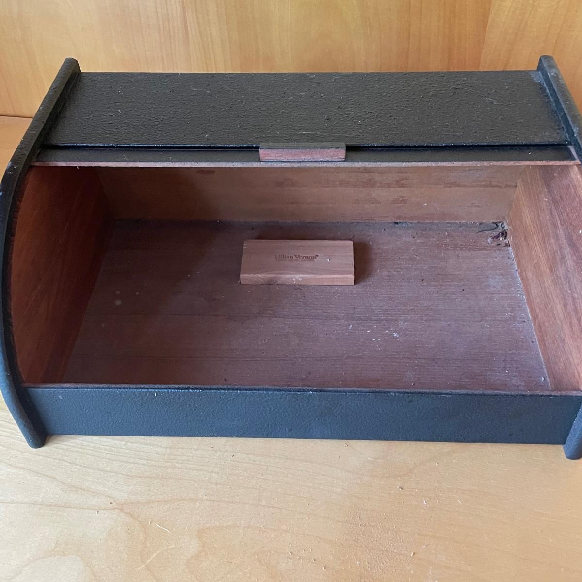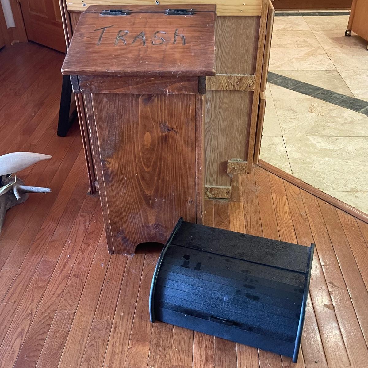 Lillian Vernon Solid Teak Bread Bin & Wood Trash Bin (K-RG)