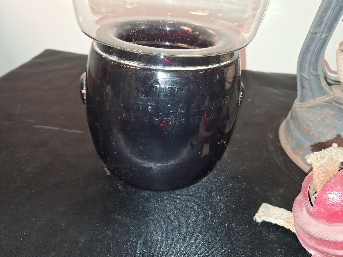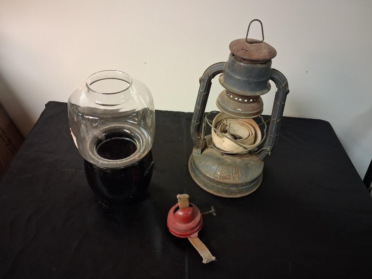 LITTLE WIZARD LANTERN, CLEAR AND RED GLASS GLOBES AND LANTERN BURNER