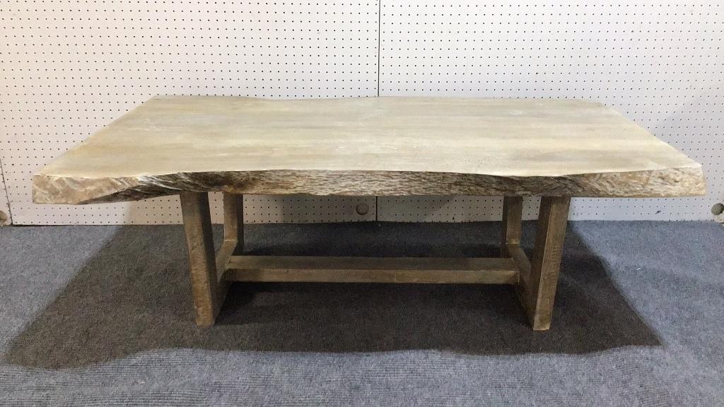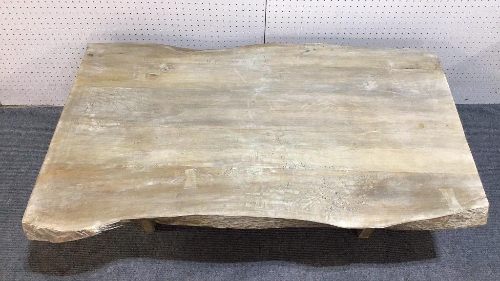 Contemporary coffee table..whitewashed..butterfly joints..52 inch x 30 inch x 18.5 inch..light scratching to top
