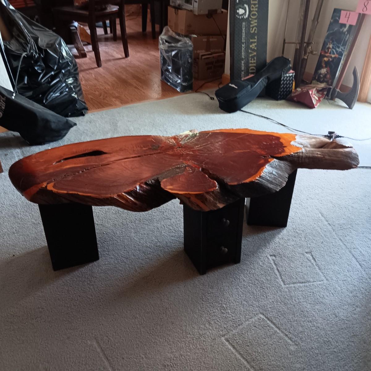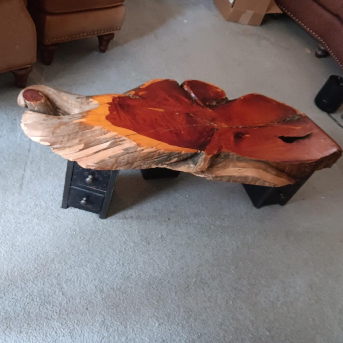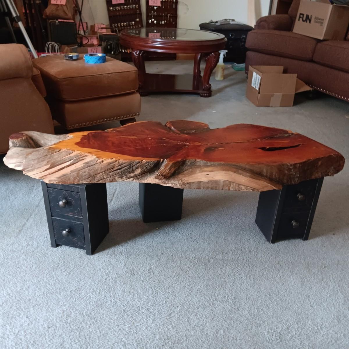 LIVE EDGE SLAB TABLE WITH 3 TWO DRAWER LEGS