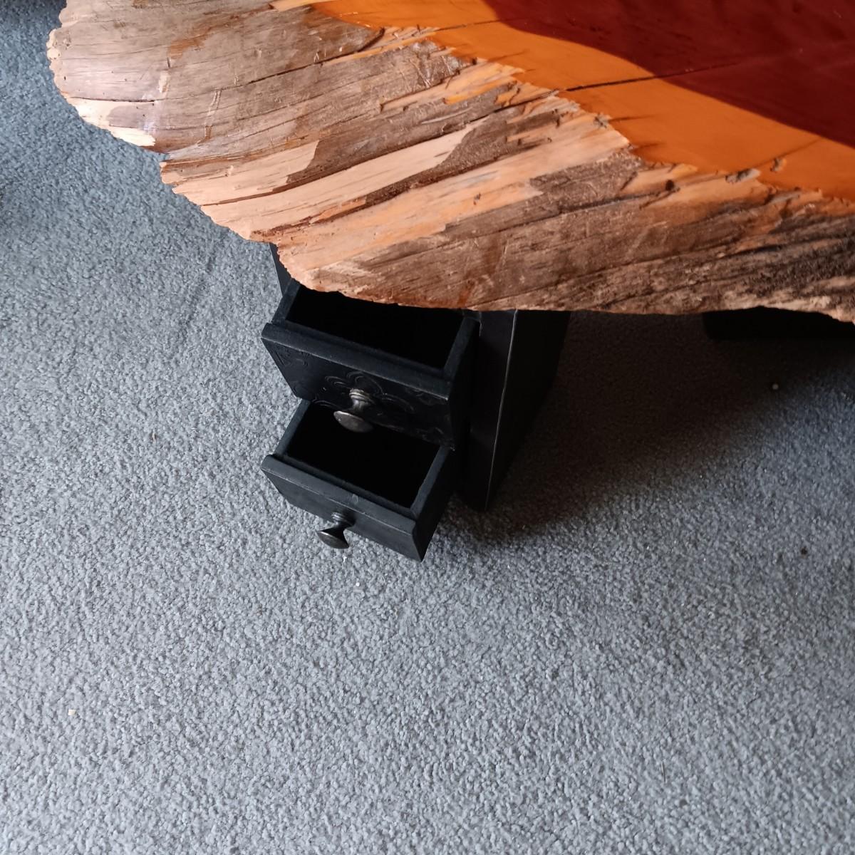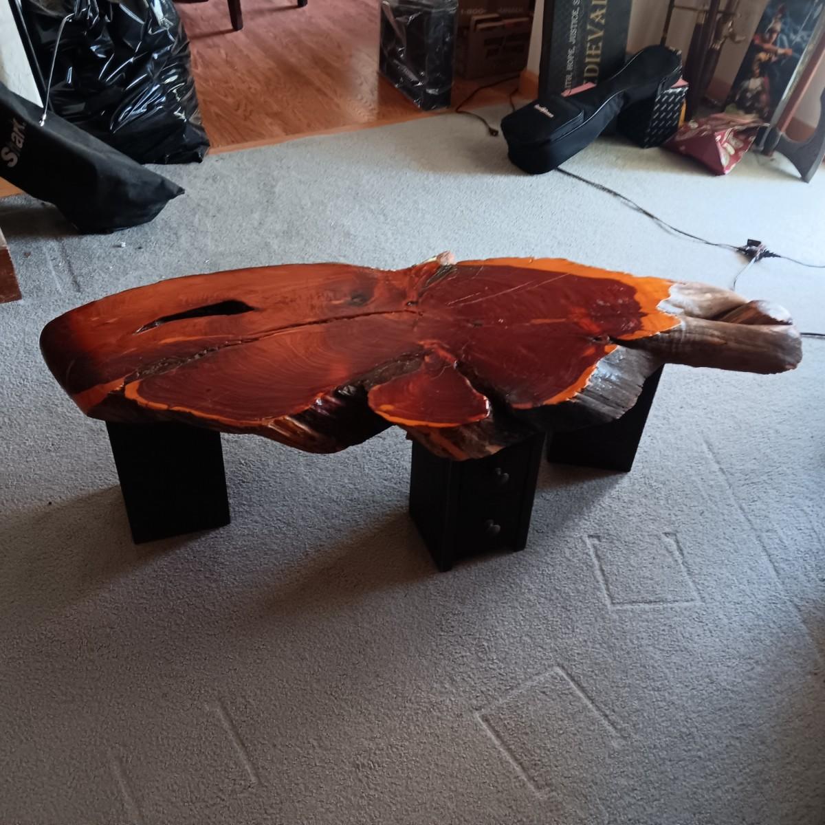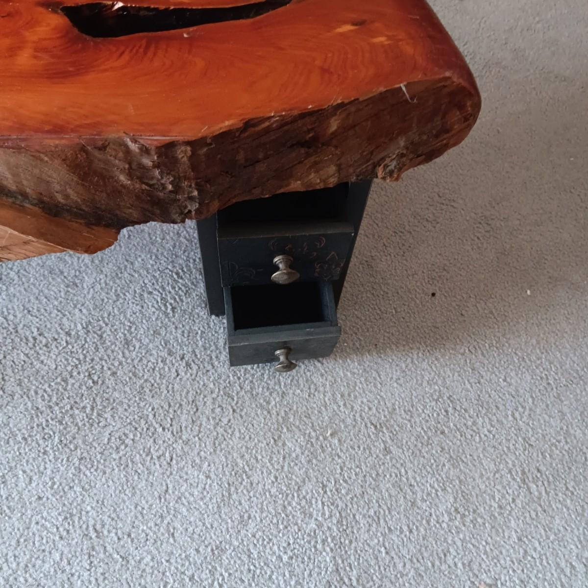 LIVE EDGE SLAB TABLE WITH 3 TWO DRAWER LEGS