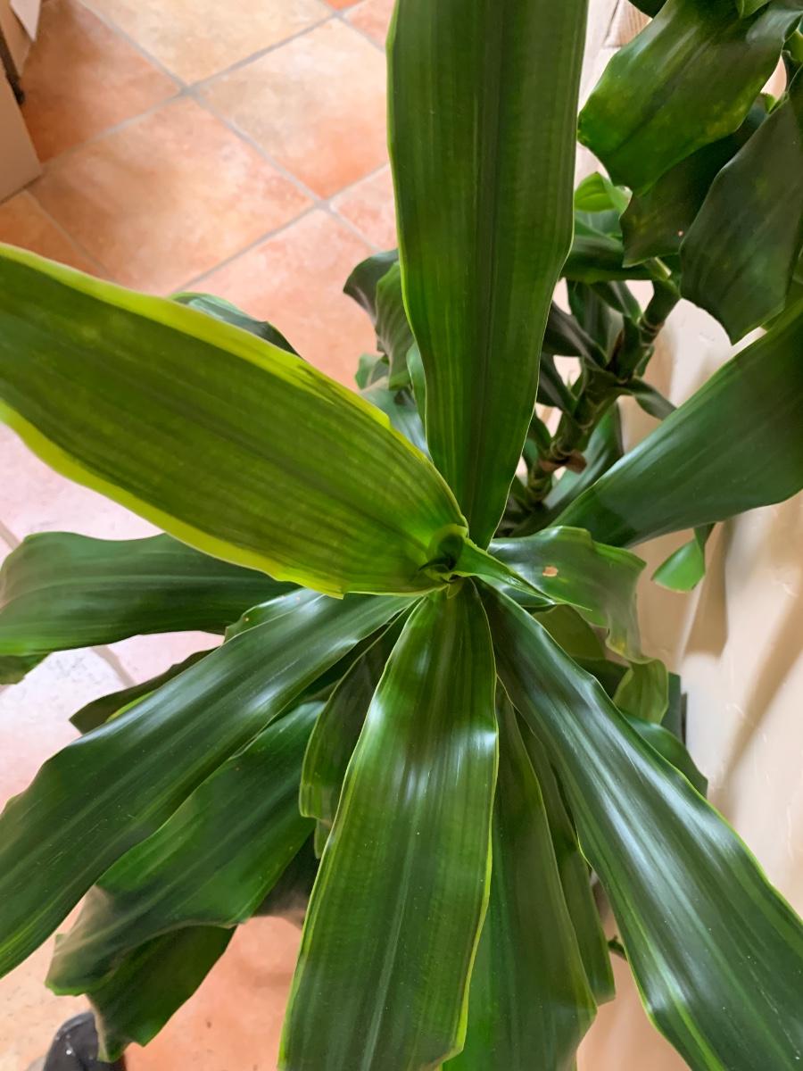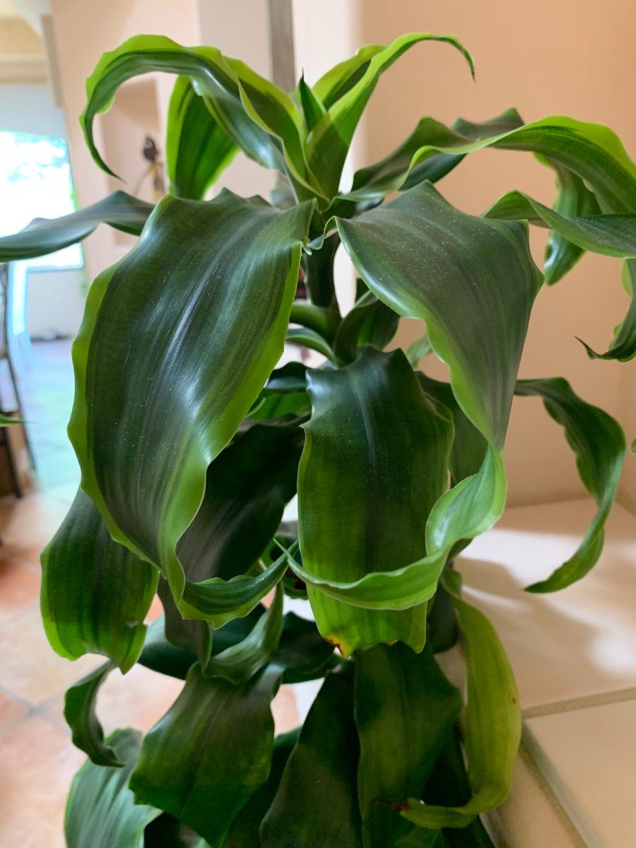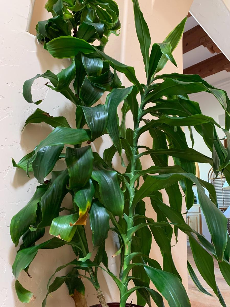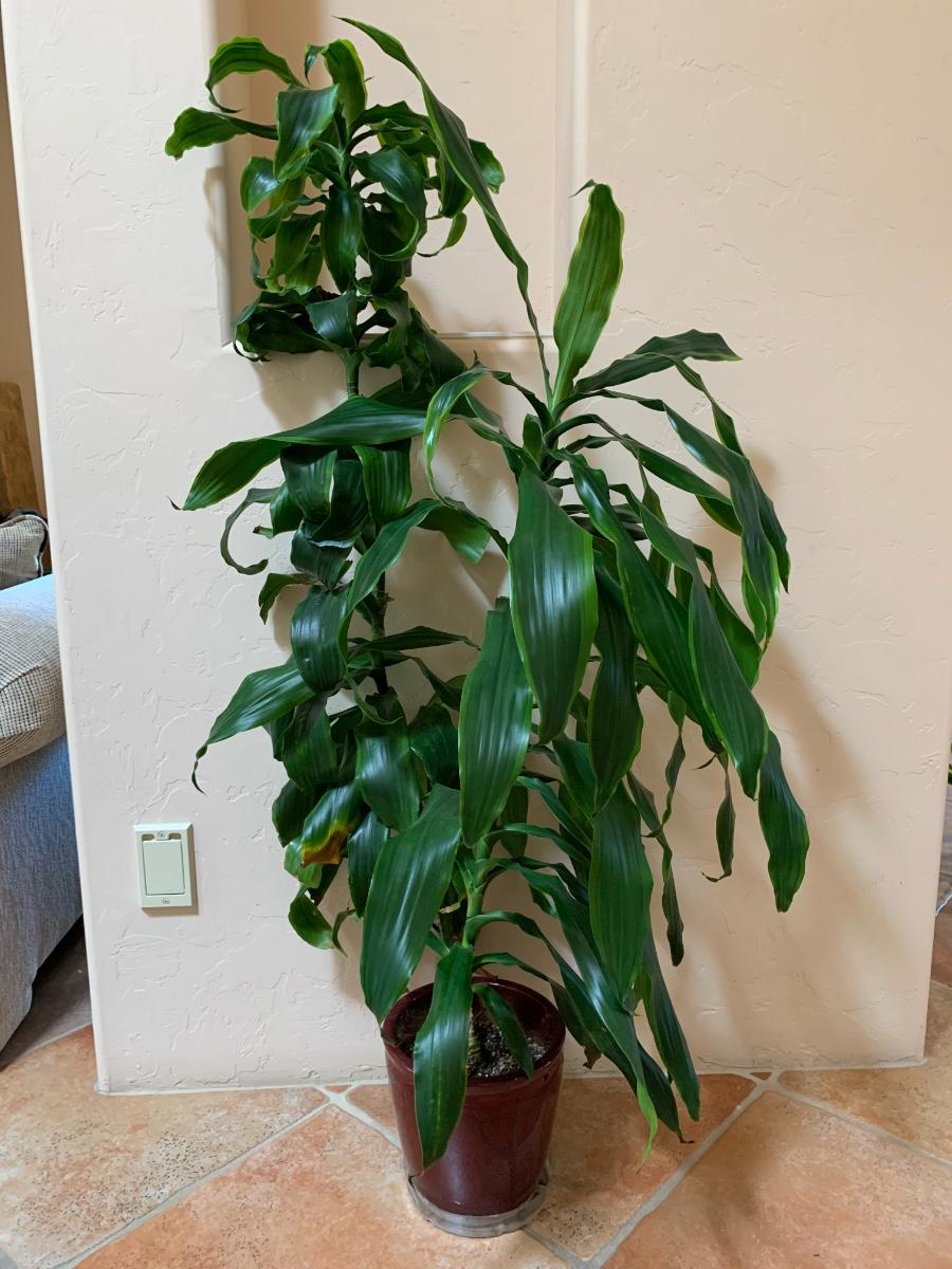 Live plant with two stalks in ceramic pot. Longest stalk is 48 inches, diameter of pot is 9 inches