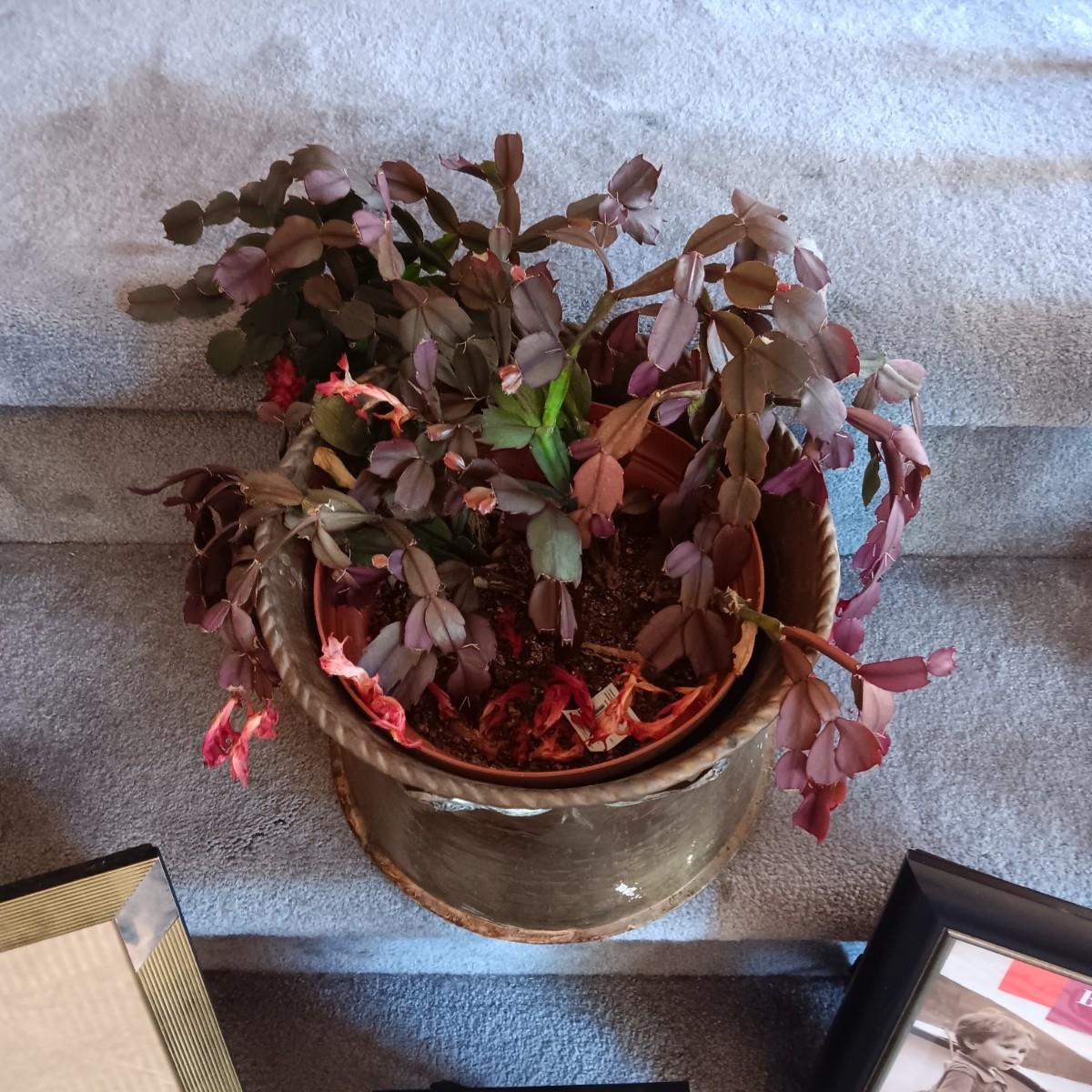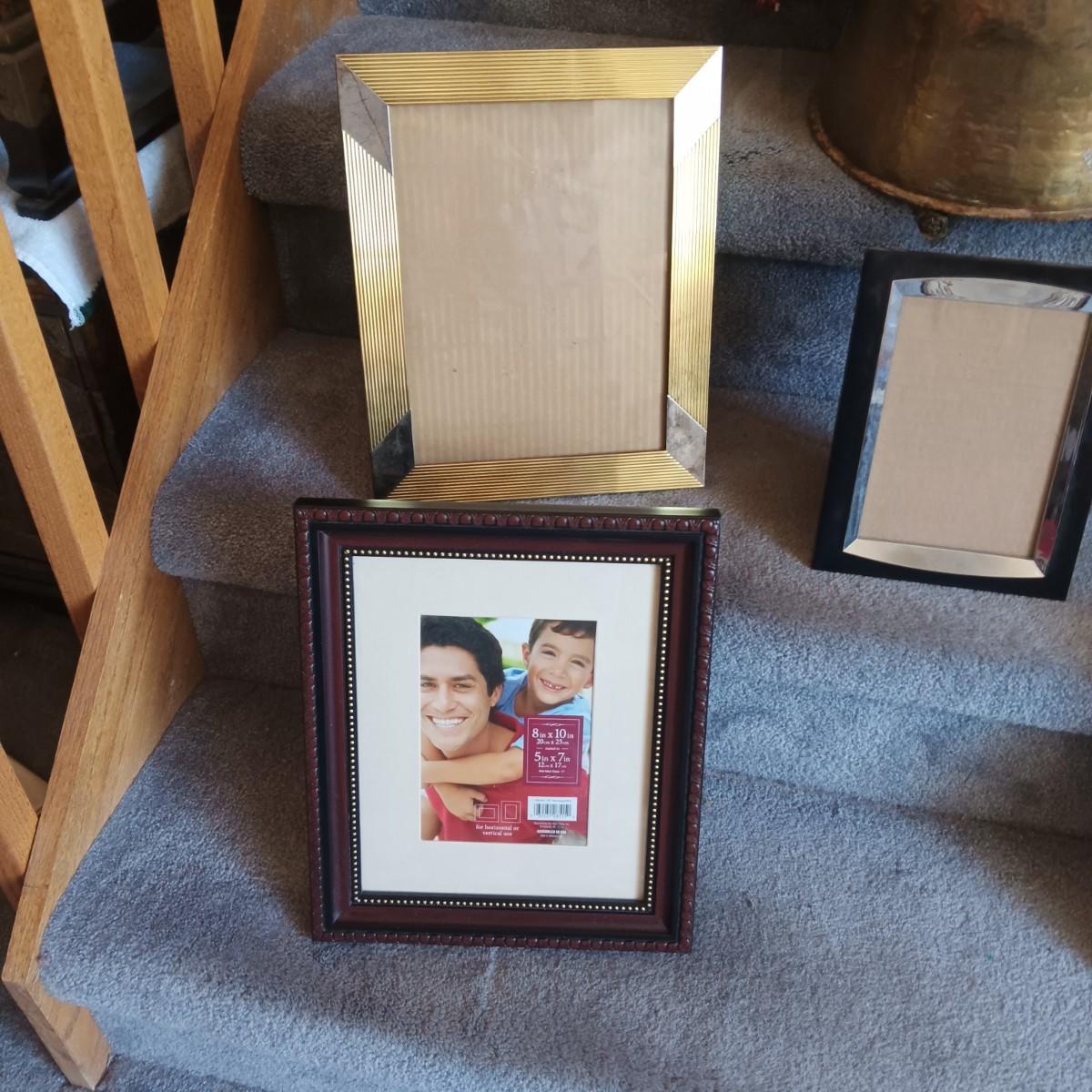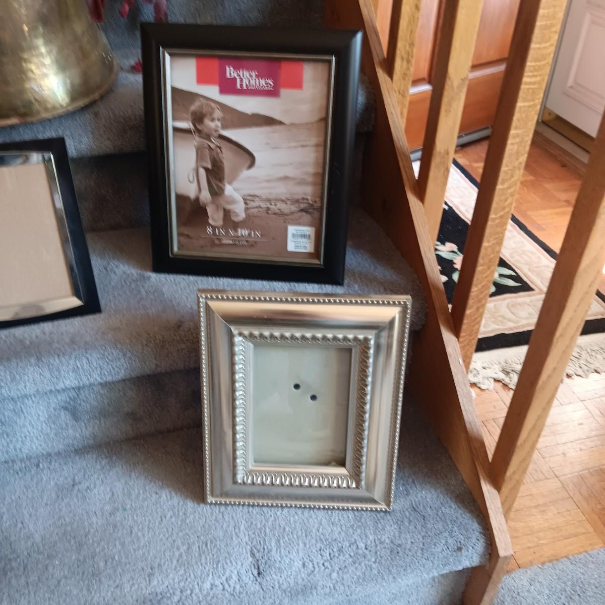 LIVE PLANT IN A HEAVY BRASS POT AND PICTURE FRAMES