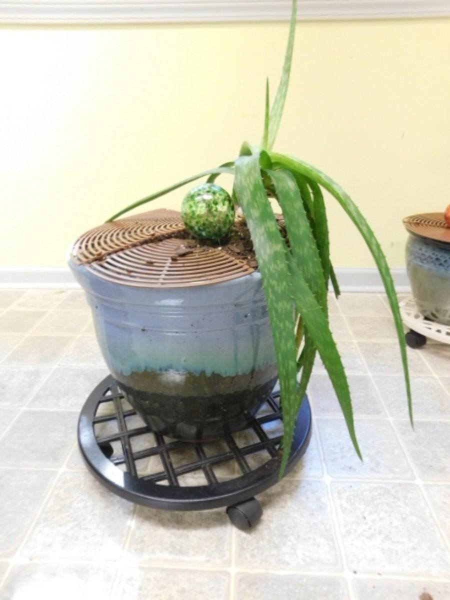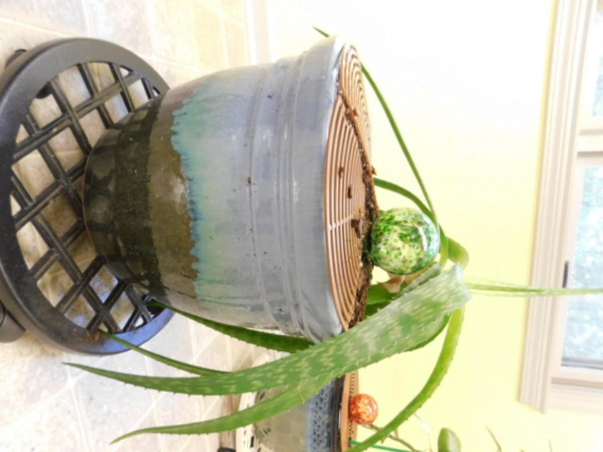 Live Aloe Vera Plant in Ceramic Blue Tone Planter with Dolly Base