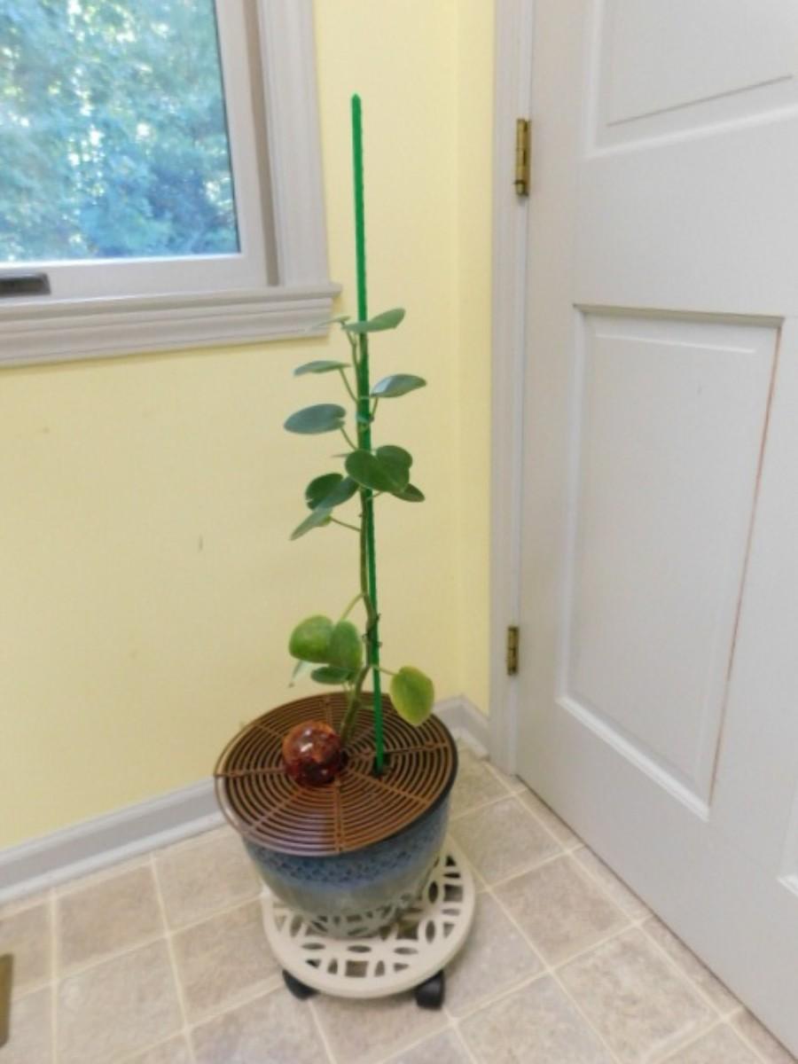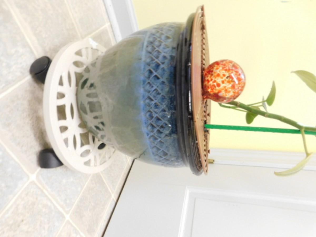 Live Vine Leaf Plant in Ceramic Blue Tone Planter with Dolly Base