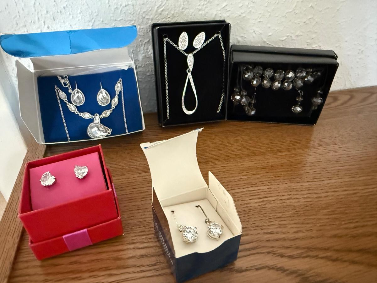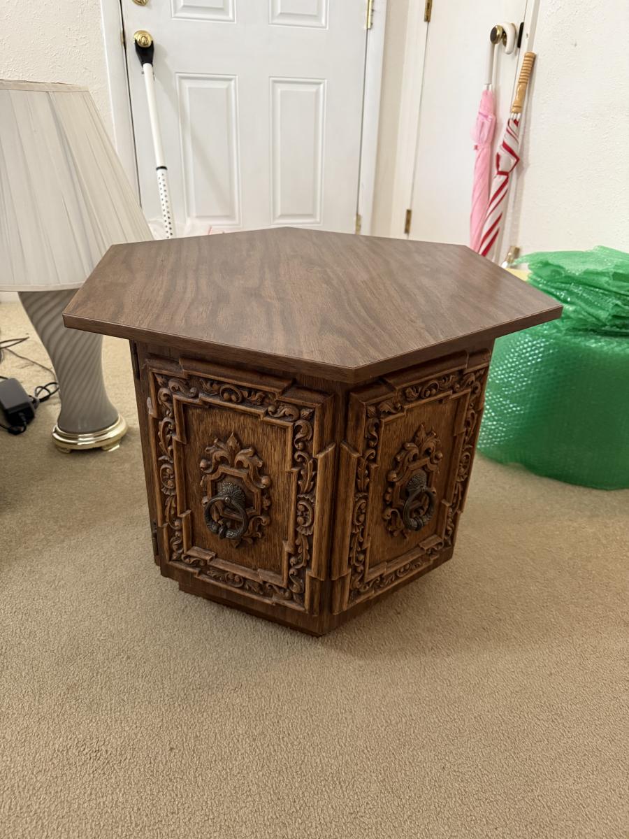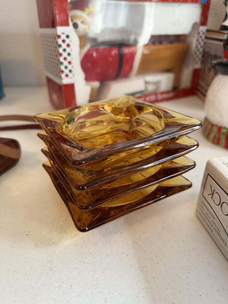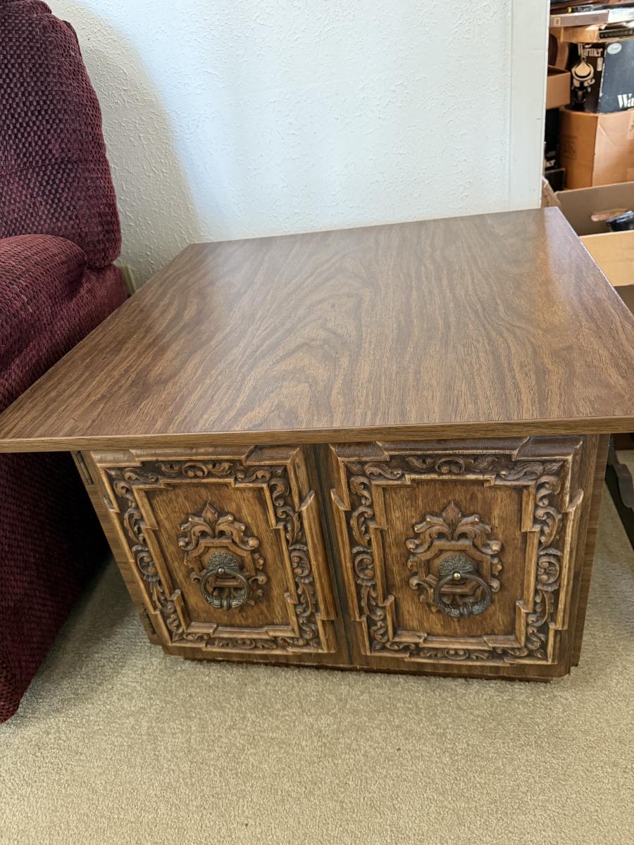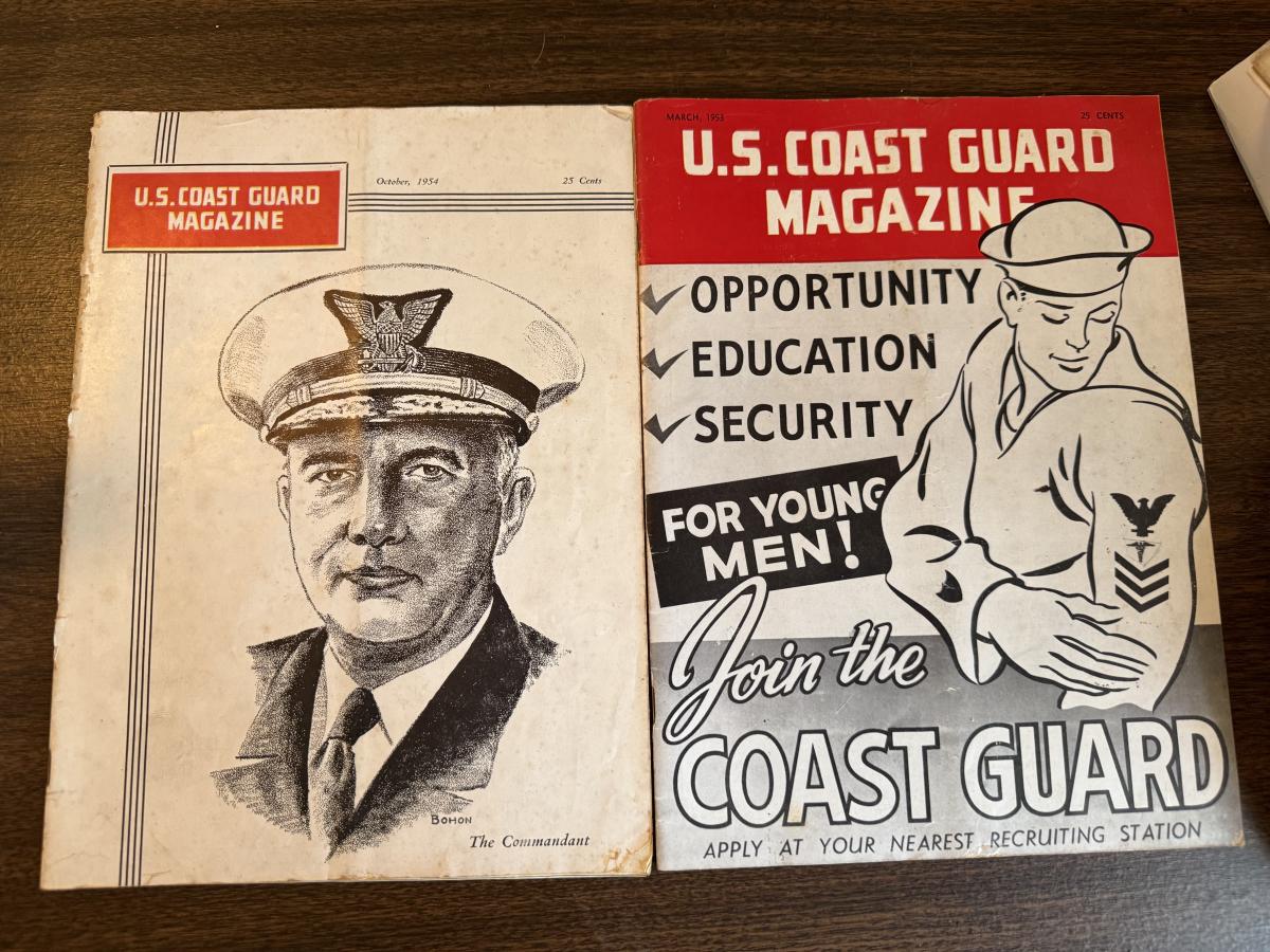 2 end table cabinets, 2 glass lamps, hummingbird plates collection, Amber ashtrays Coast Guard magazines, Avon jewelry watches, etc