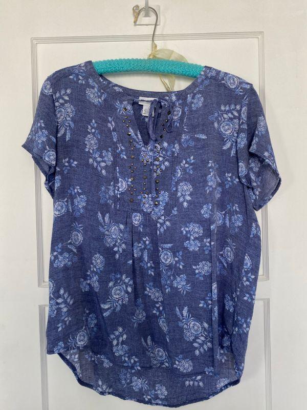 Liz Claiborne Blue Floral Short Sleeve Blouse Size Large YD#019-0058