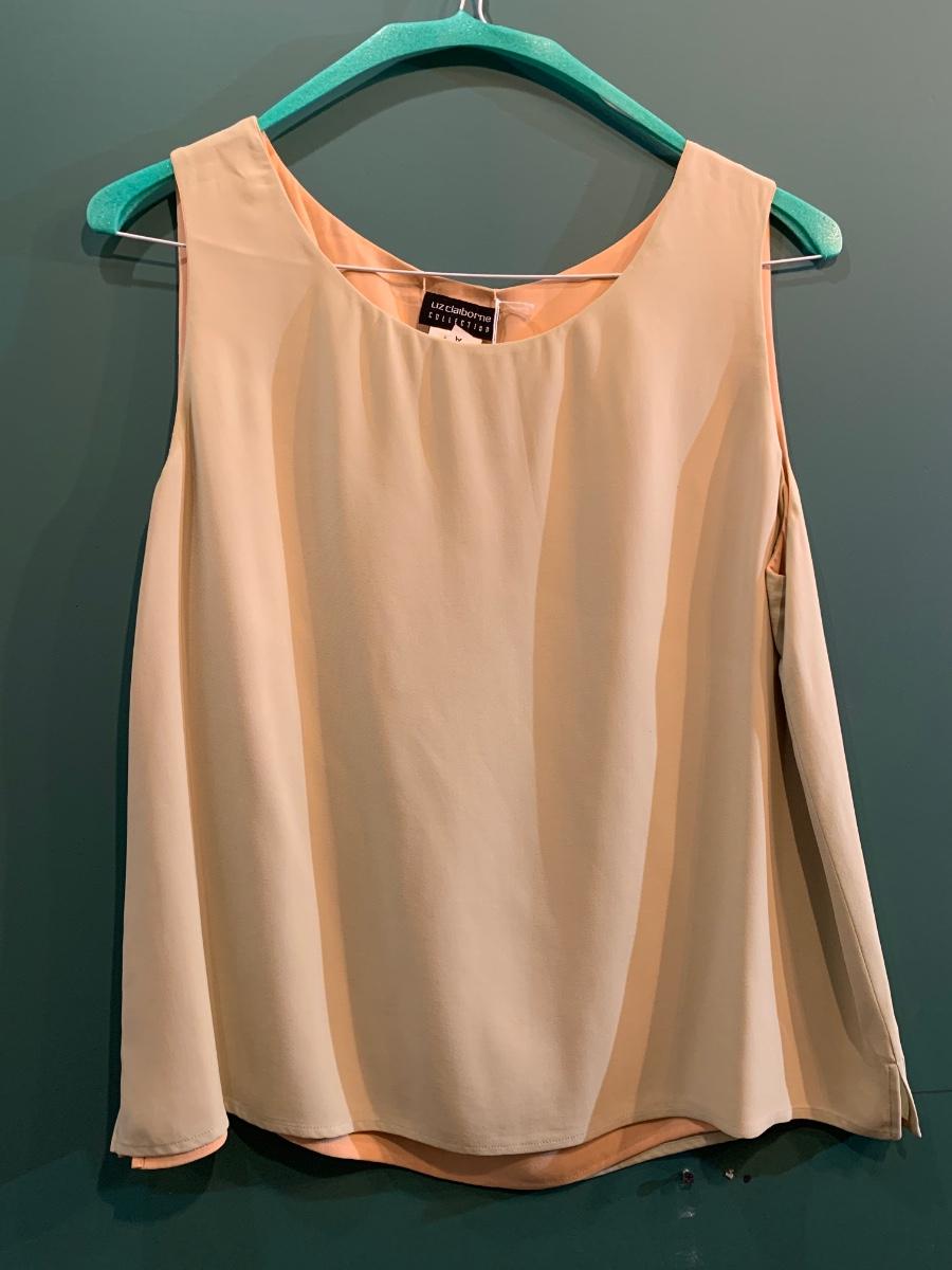 Liz Claiborne Collection Reversible Silk Shell Top - Size 14, Cream and Blush
