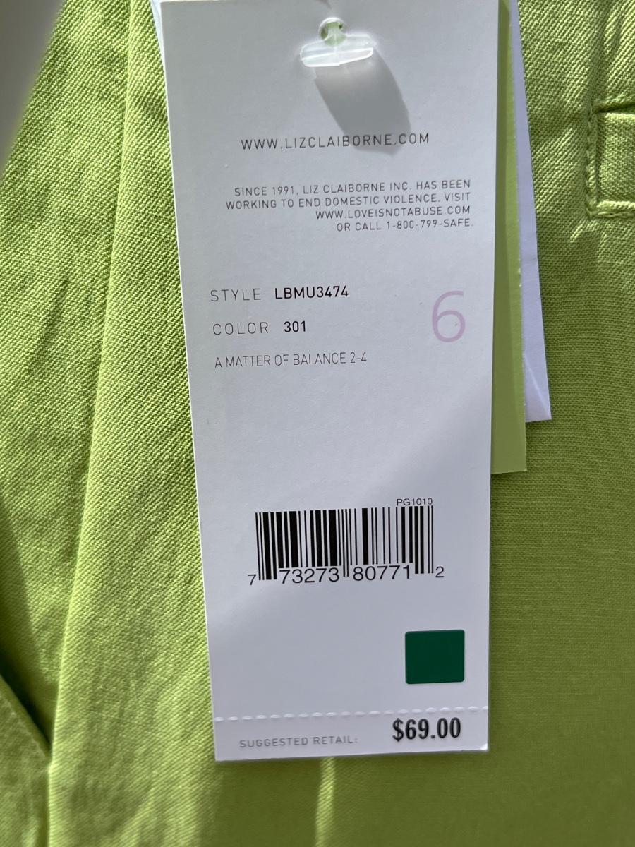 LIZ CLAIBORNE ~ Size 6 ~ Ladies Green Pants ~ NWT