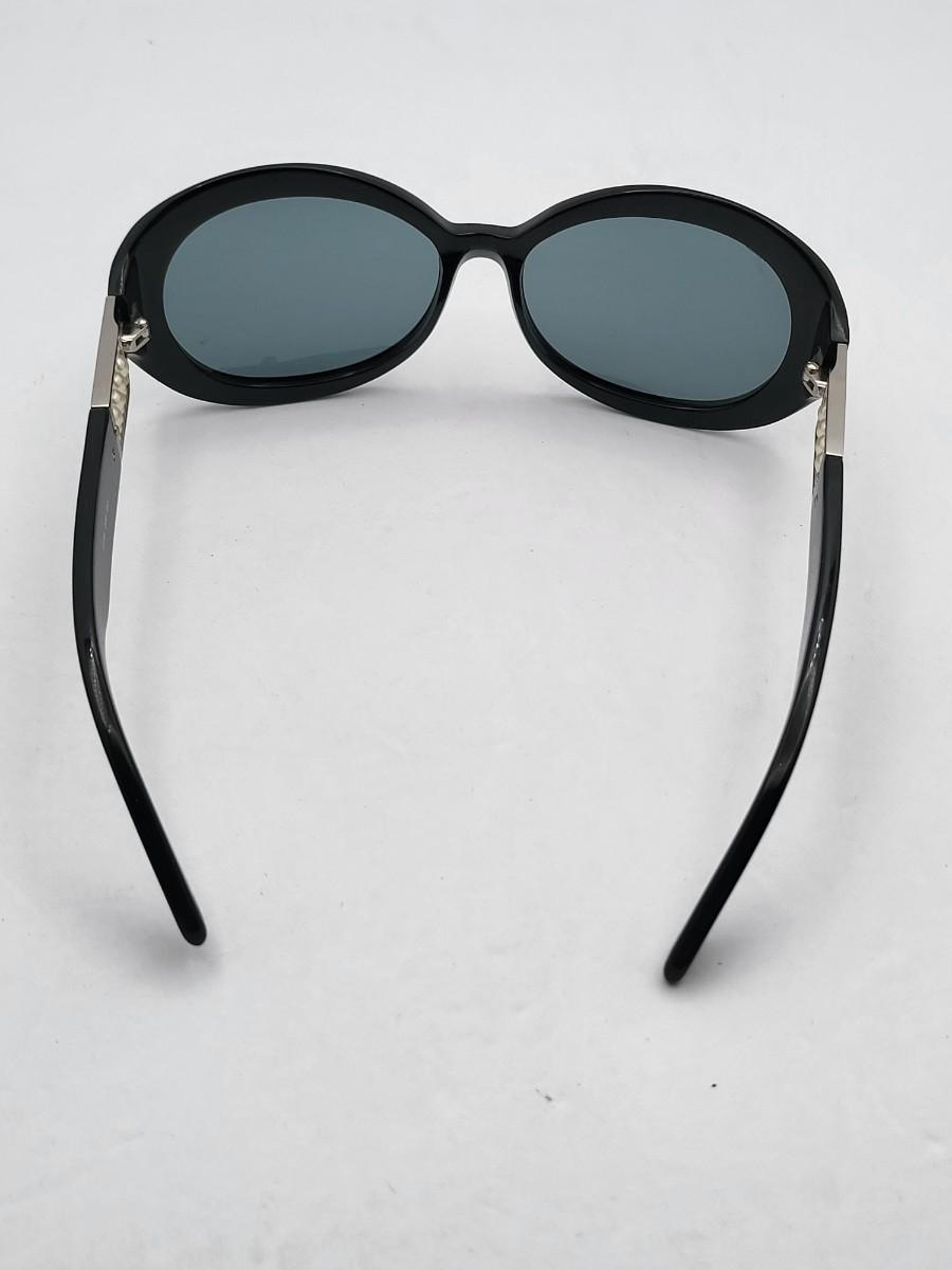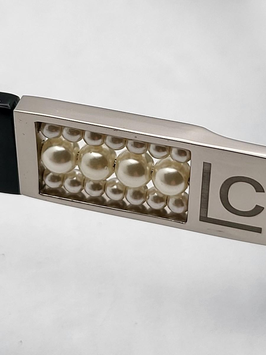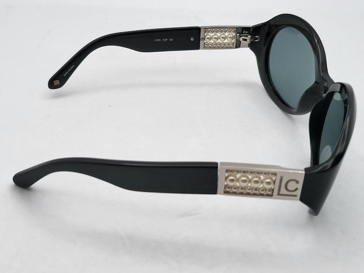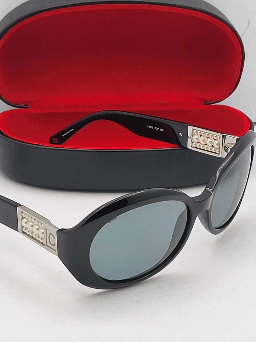 Liz Claiborne sunglasses with faux pearl & black frames with polarized lenses. Comes with clamshell case, black with red felt lining.