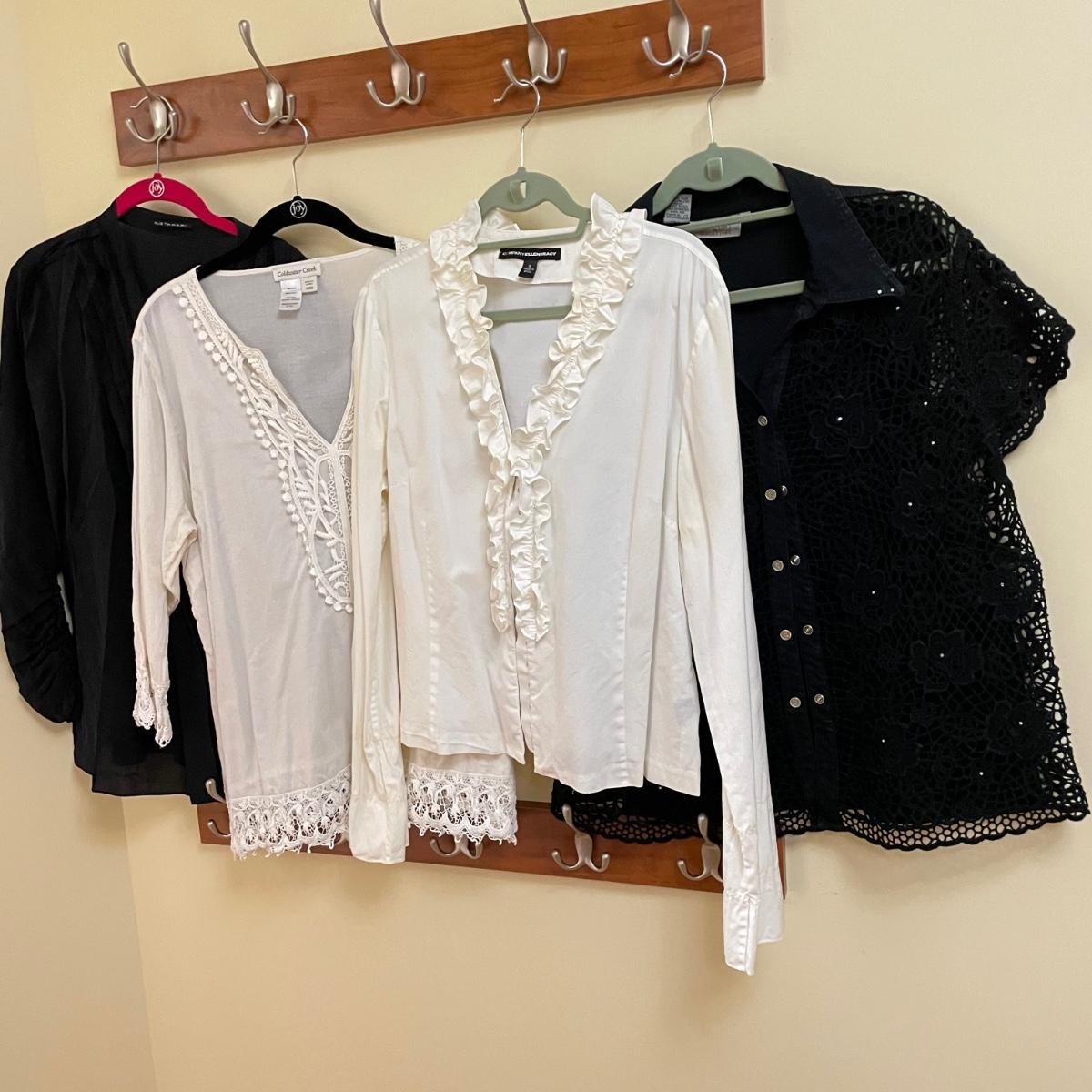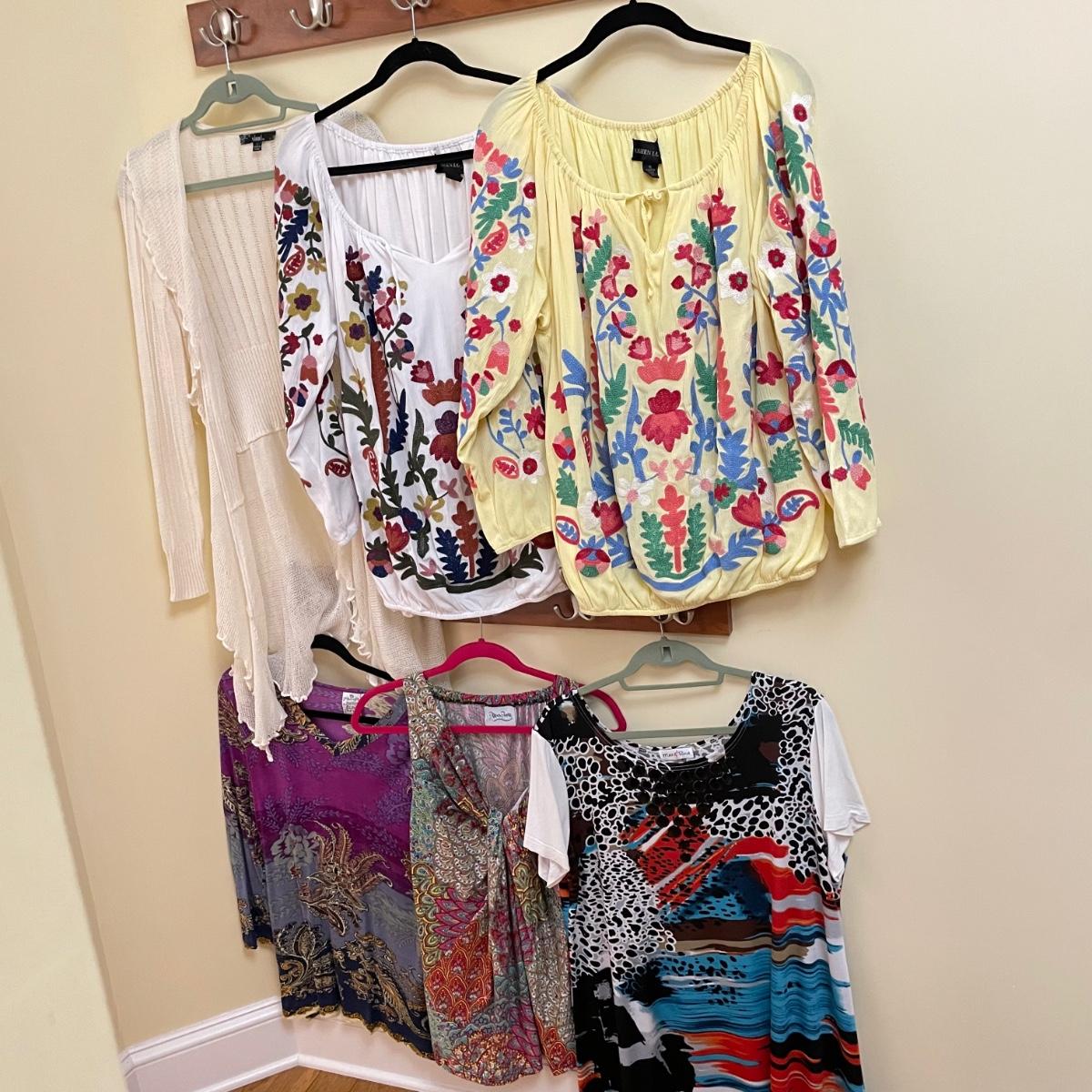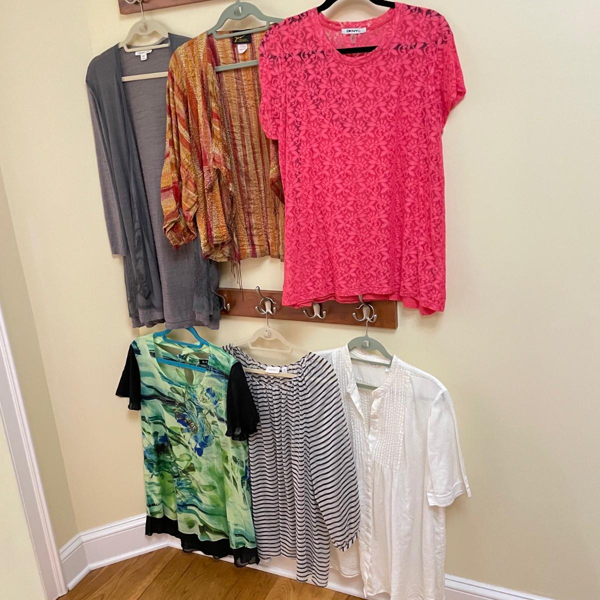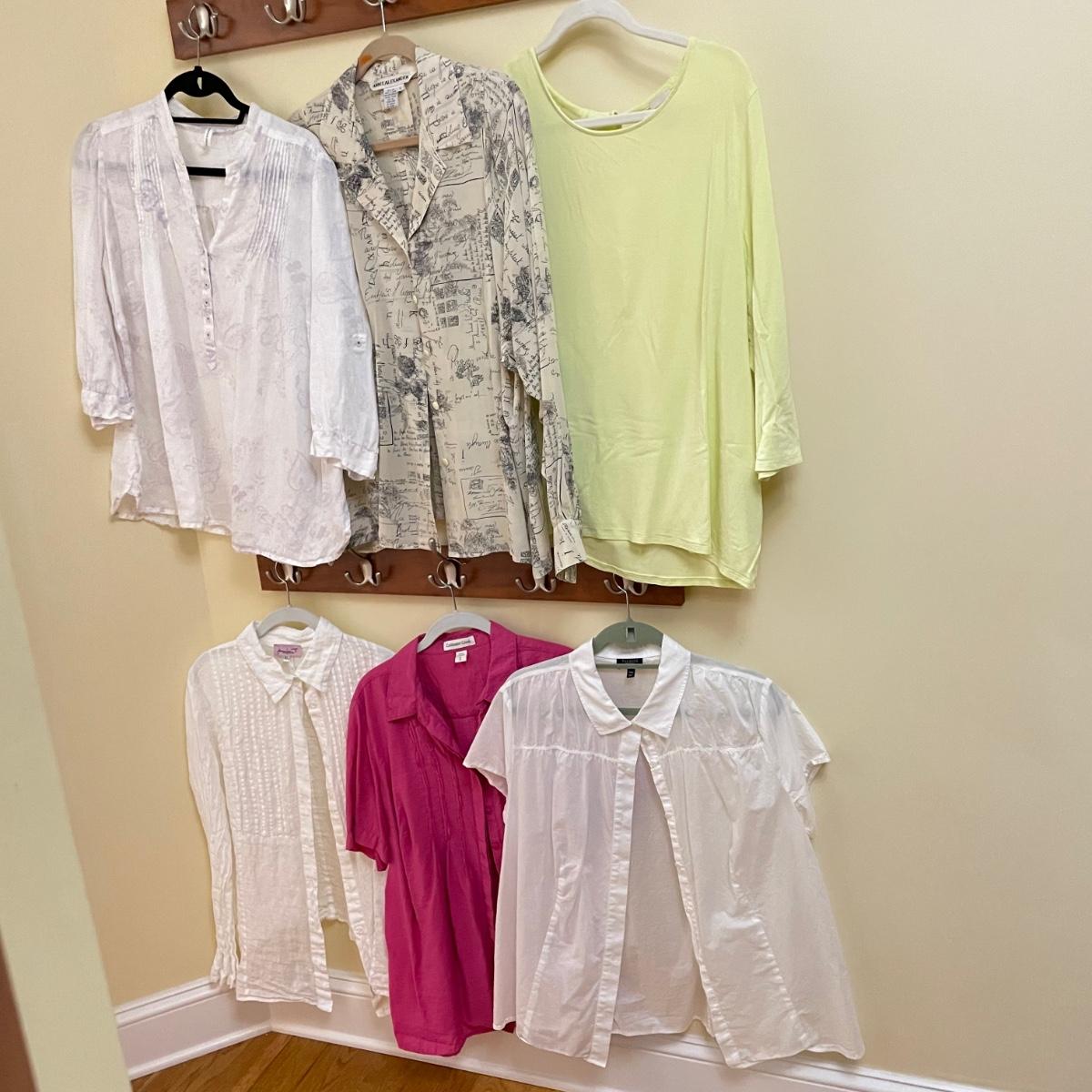 Large selection of mostly long sleeved tops with brands like Banana Republic, Chicos, Parsley & Sage, Boston Proper, Lillian Nicole, Colleen Lopez and more. The sizes range from large to XL and styles contain a flowing quality. See images. Local pick up only.