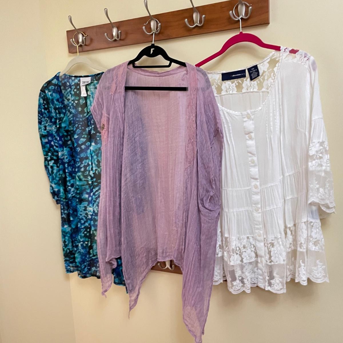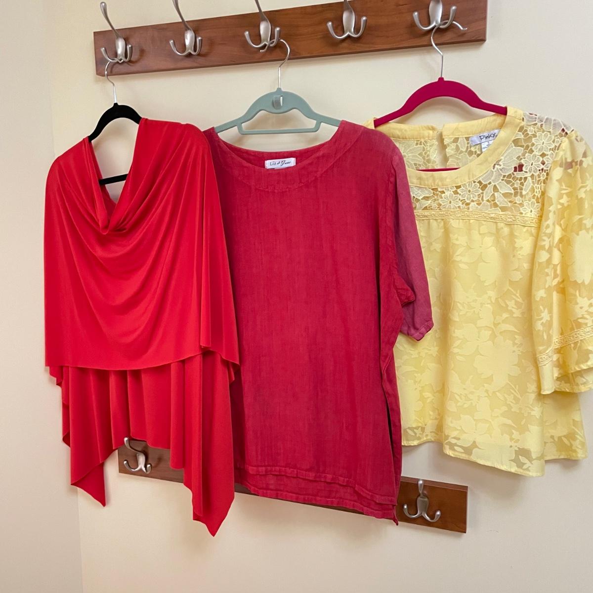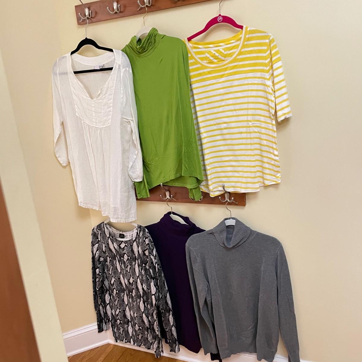 Large selection of mostly long sleeved tops with brands like Banana Republic, Chicos, Parsley & Sage, Boston Proper, Lillian Nicole, Colleen Lopez and more. The sizes range from large to XL and styles contain a flowing quality. See images. Local pick up only.