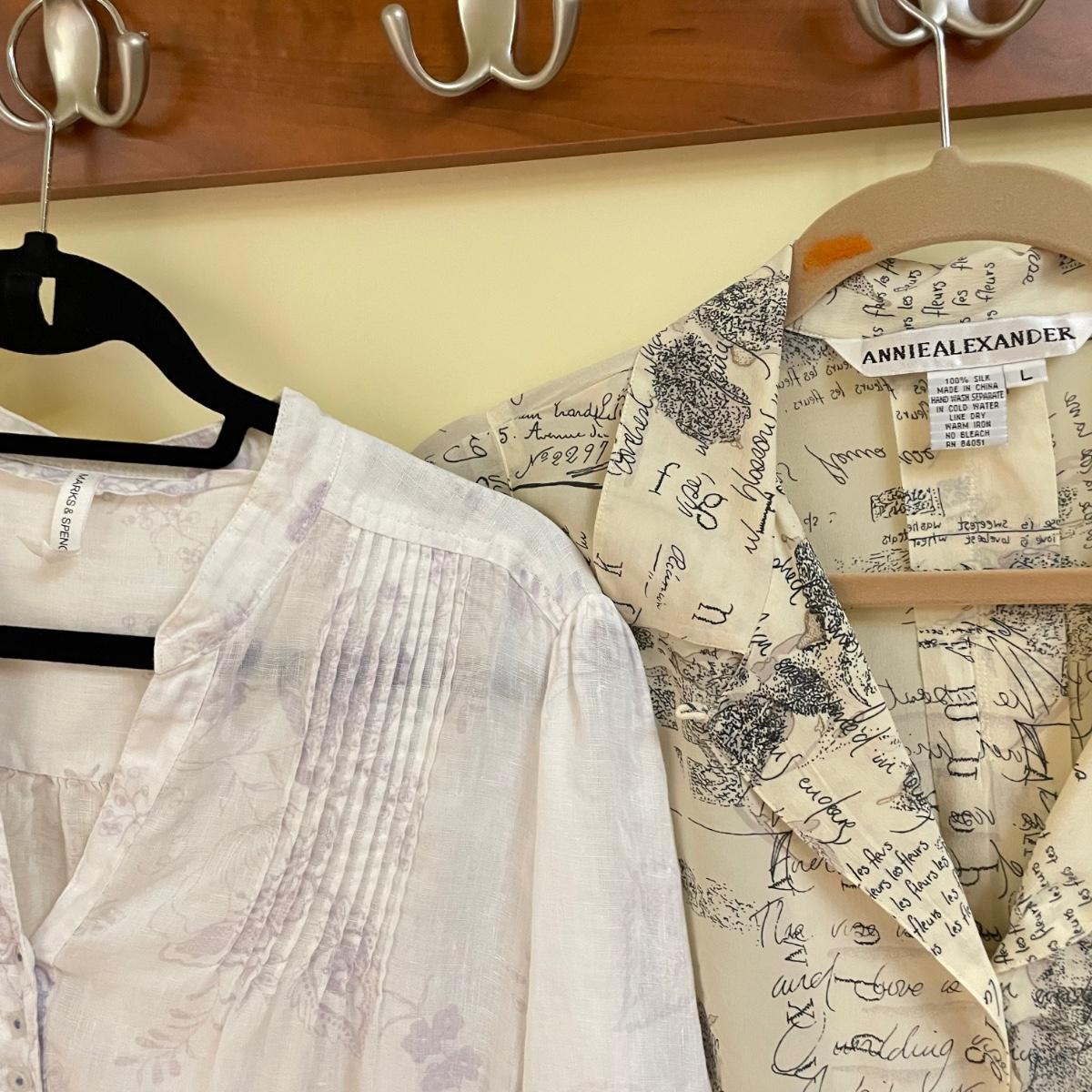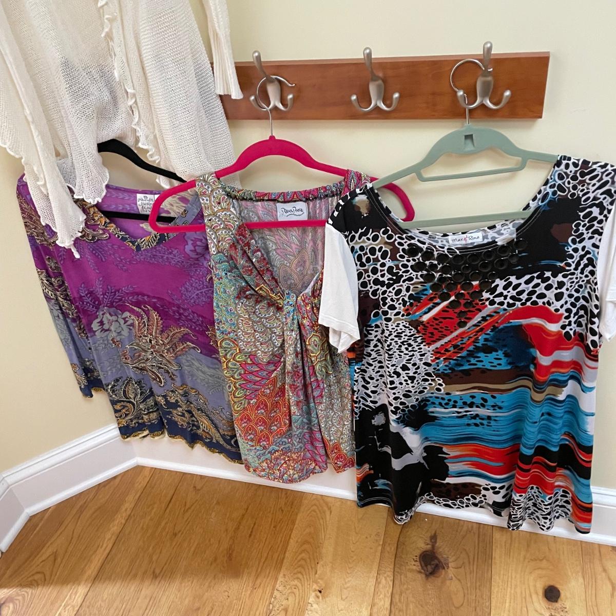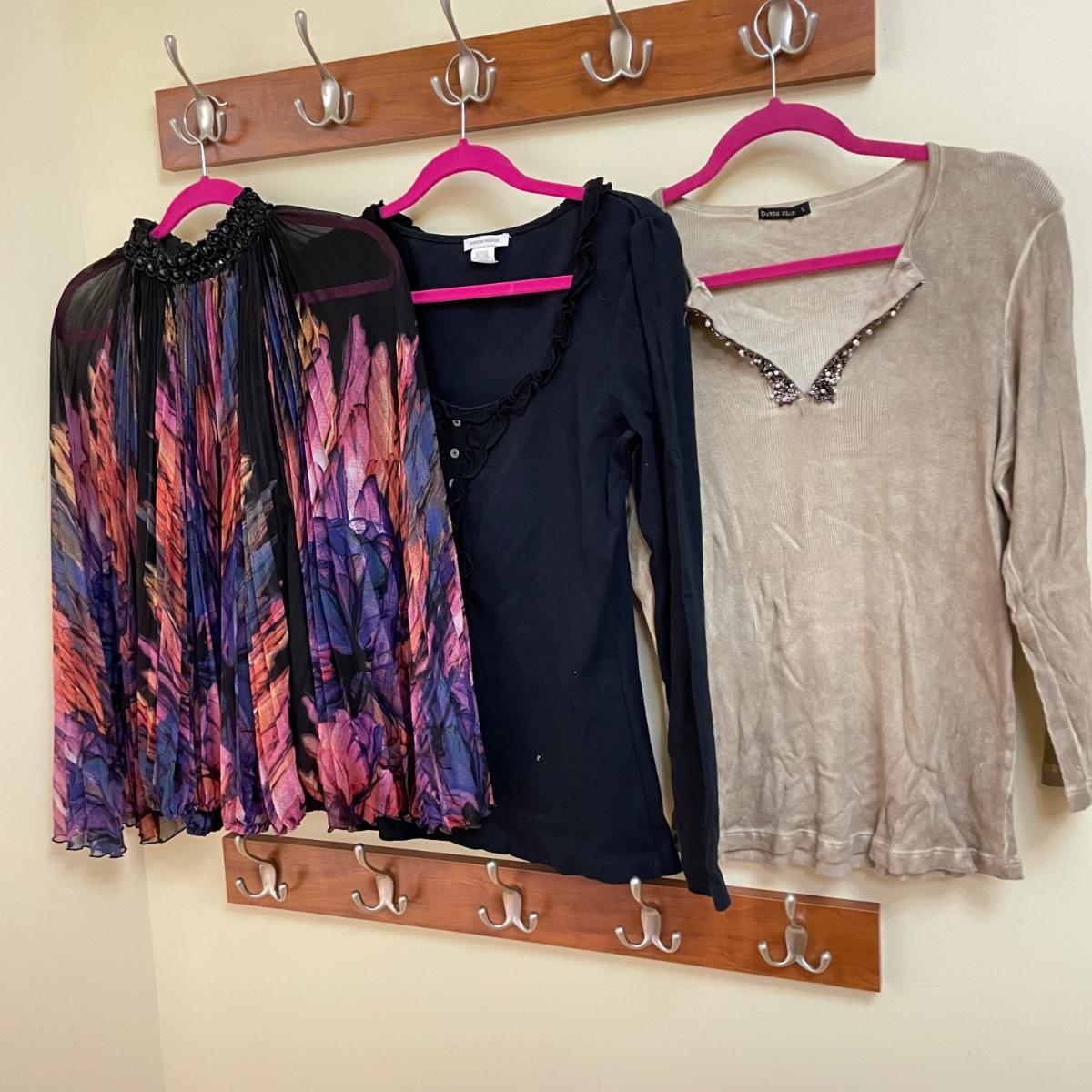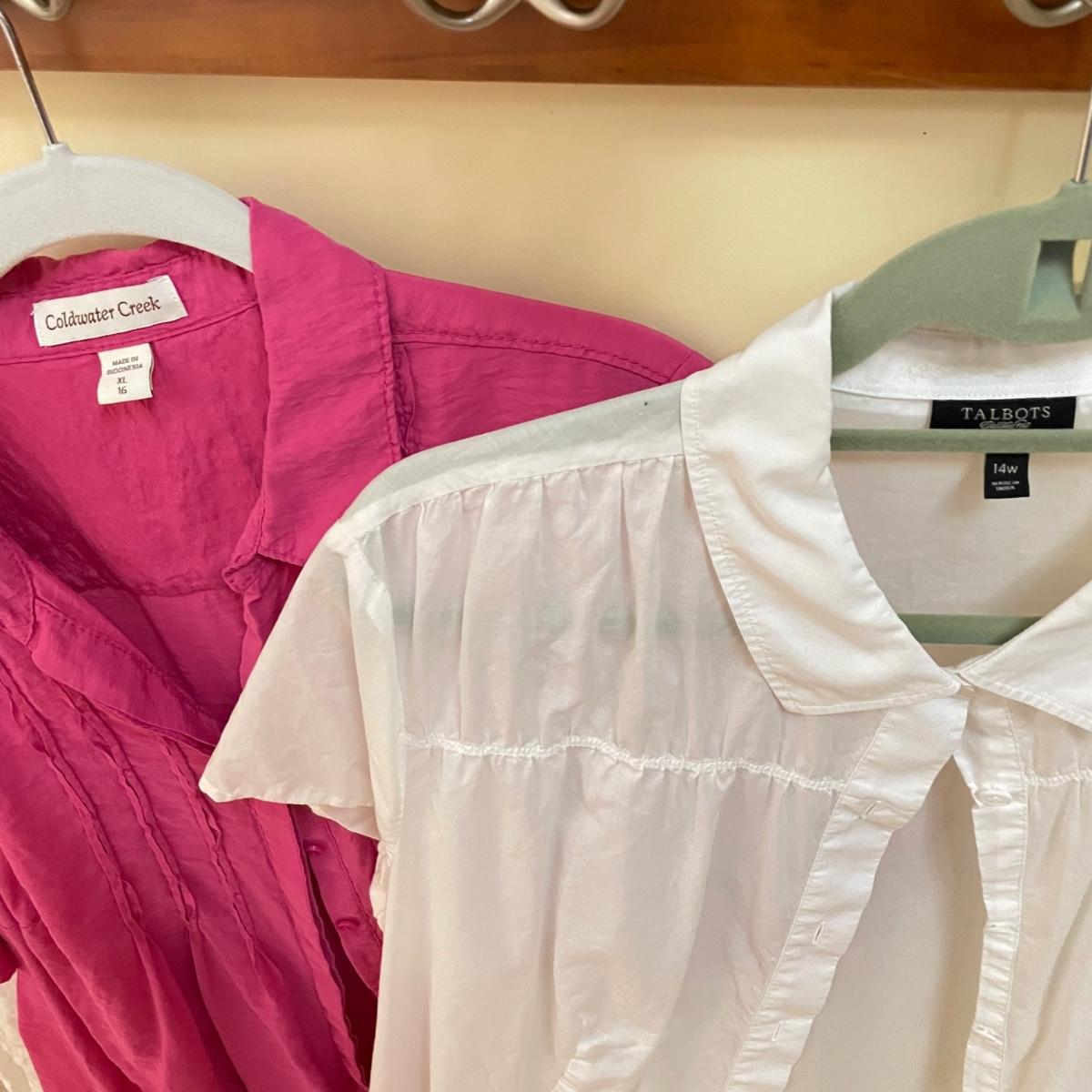 Large selection of mostly long sleeved tops with brands like Banana Republic, Chicos, Parsley & Sage, Boston Proper, Lillian Nicole, Colleen Lopez and more. The sizes range from large to XL and styles contain a flowing quality. See images. Local pick up only.