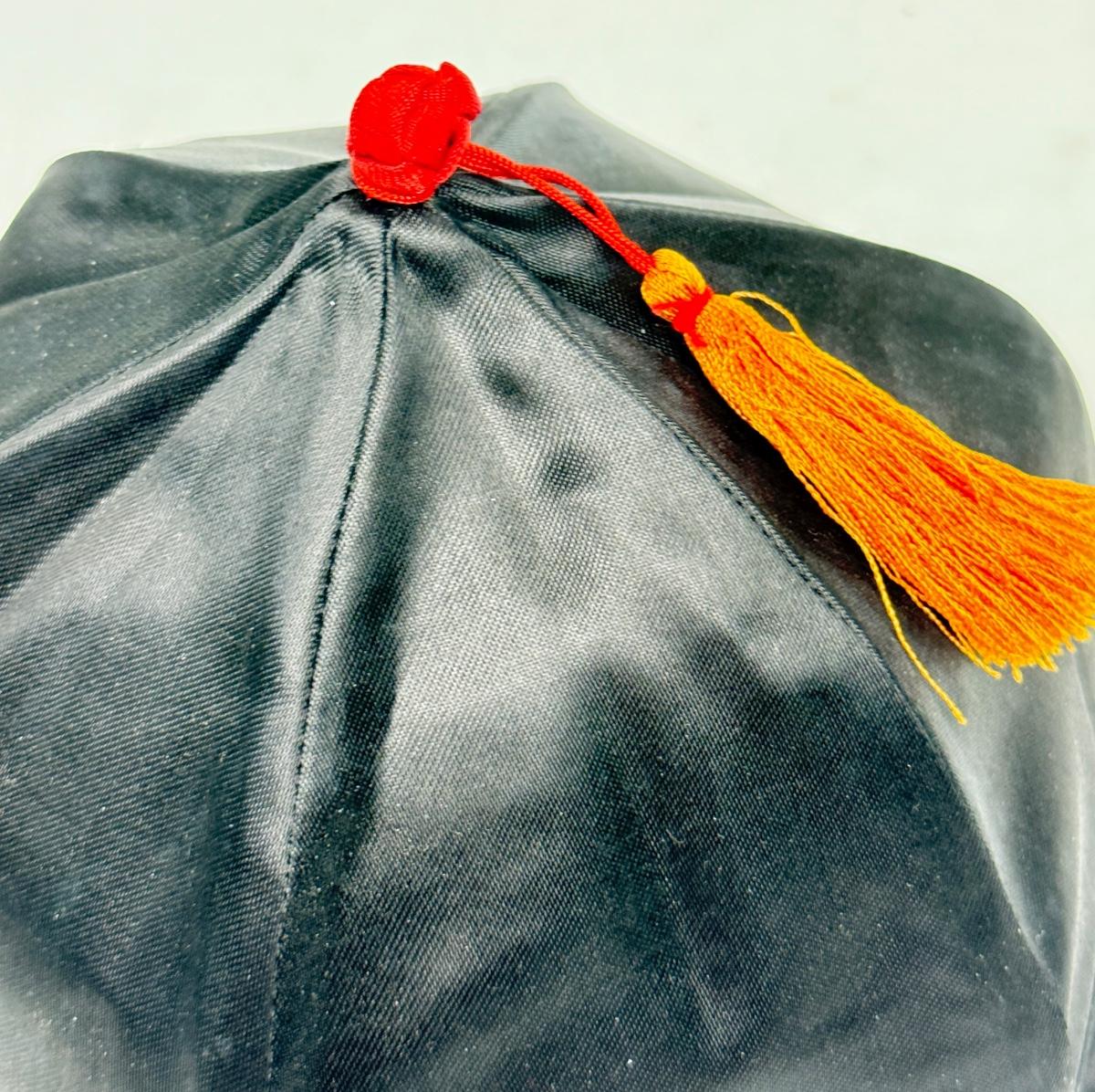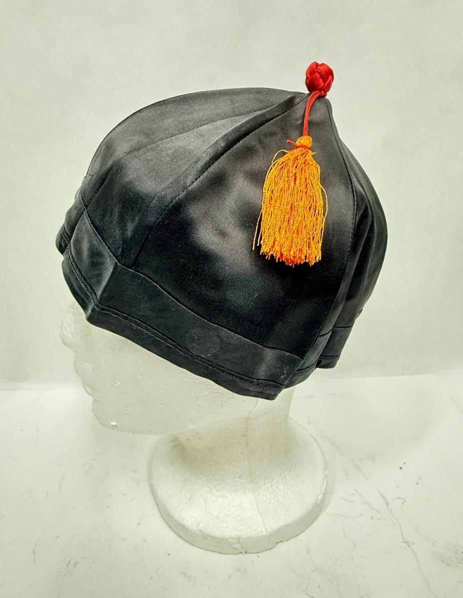 Vintage Traditional Japanese Black Hat with Gold Tassel 100% Rayon Made in Japan