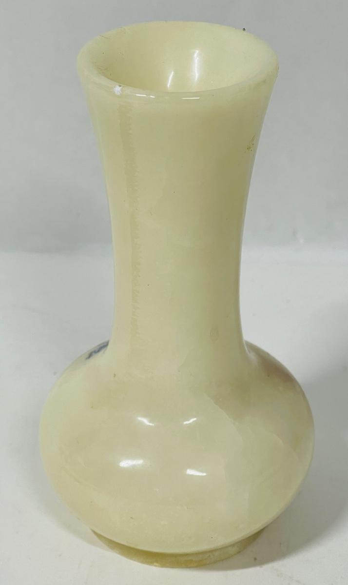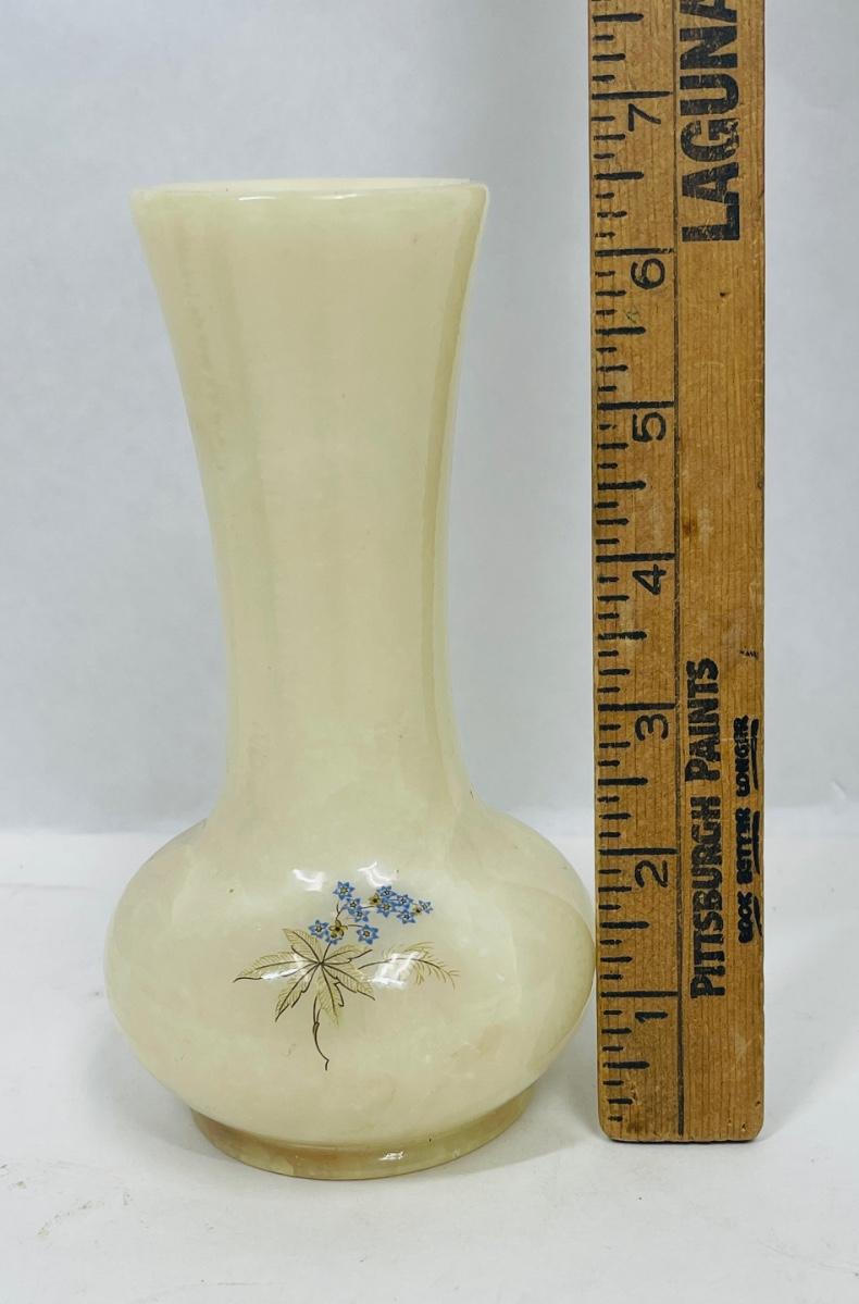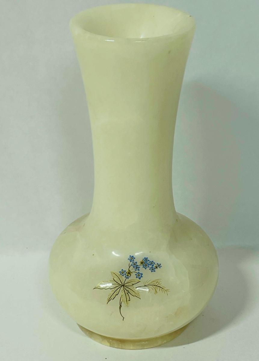 Vintage Onyx Marble Stone Bud Vase 6.5” Delicate Blue Flower Design