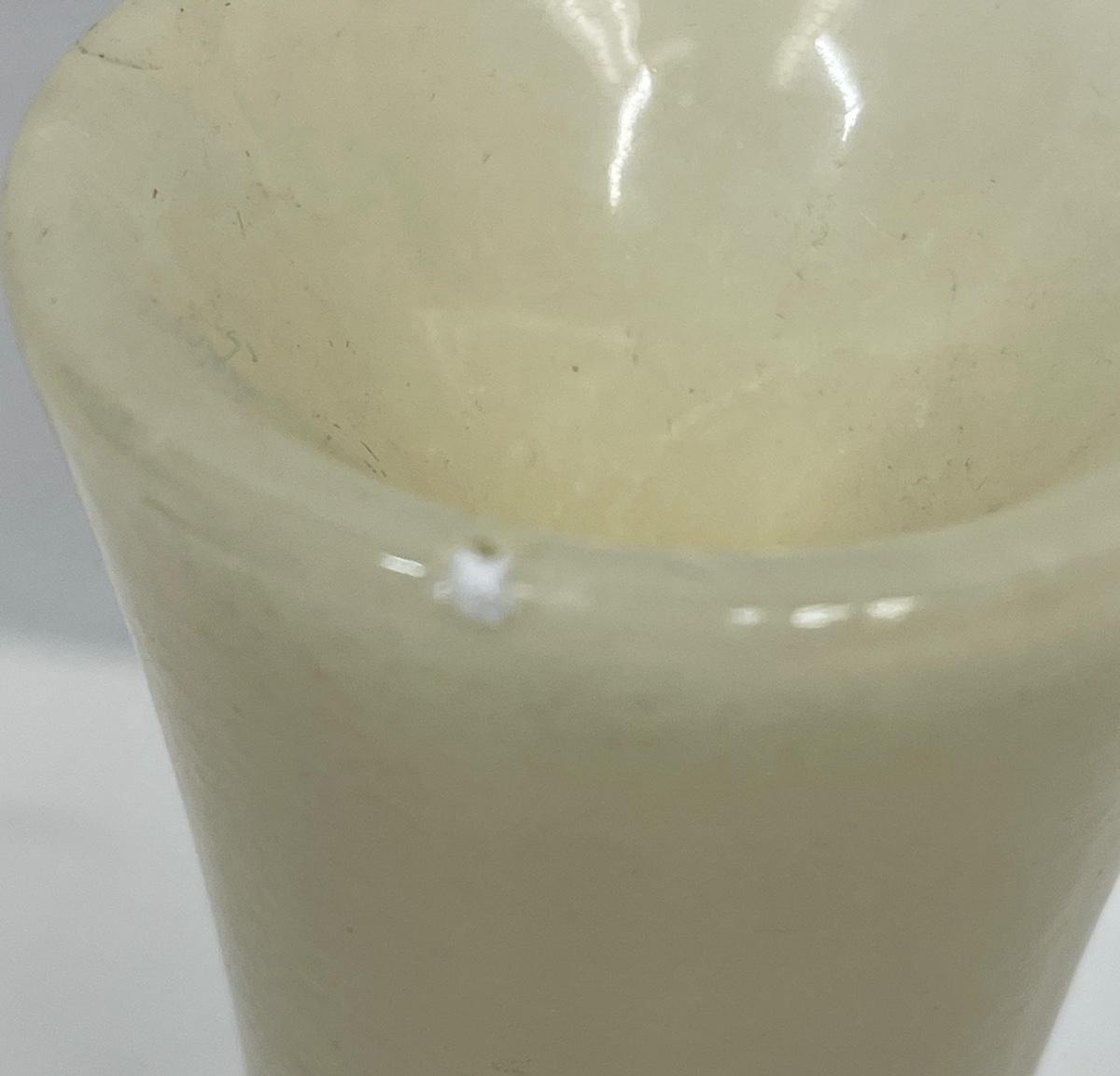 Solid, heavy vase. Small chip at the top on the lip, see photos.
