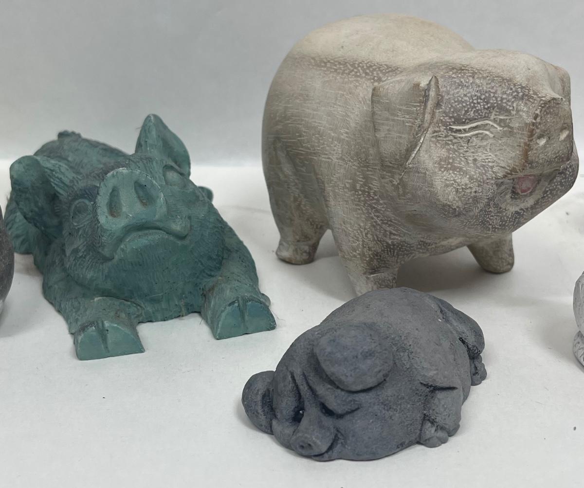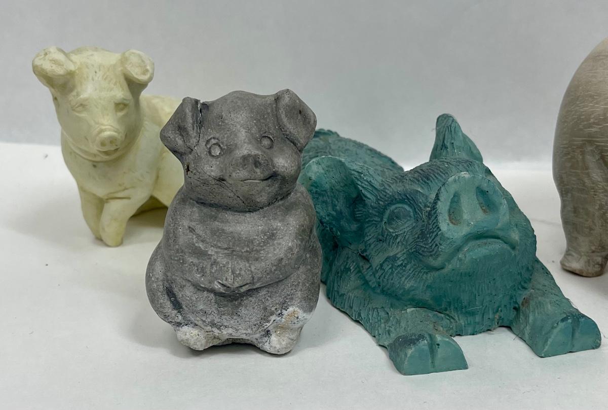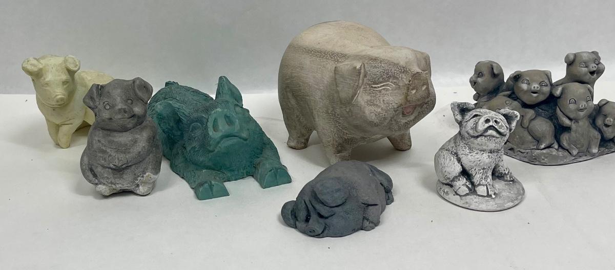 Pig Lot #1 - (7) Stone, Clay, Resin, Mt. Saint Helen's Ash, etc Figurine Small Statue - Pigs Piggies Piglet Hallmark Beck