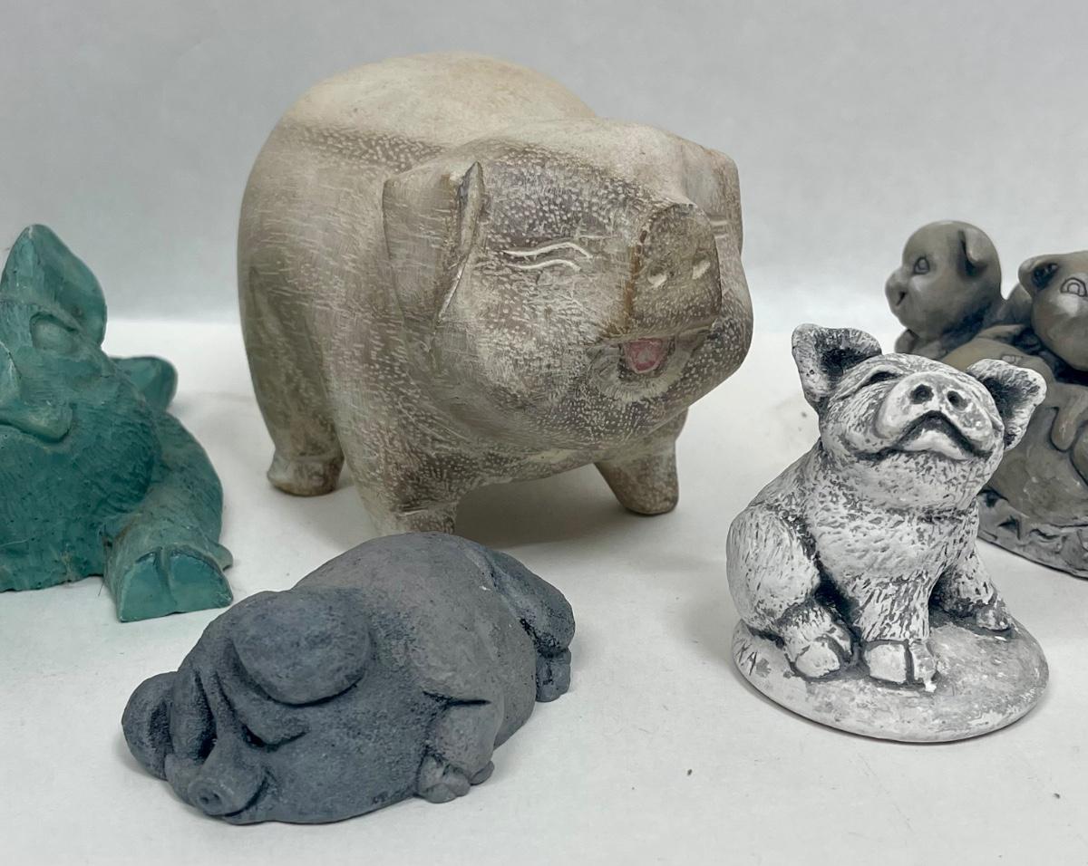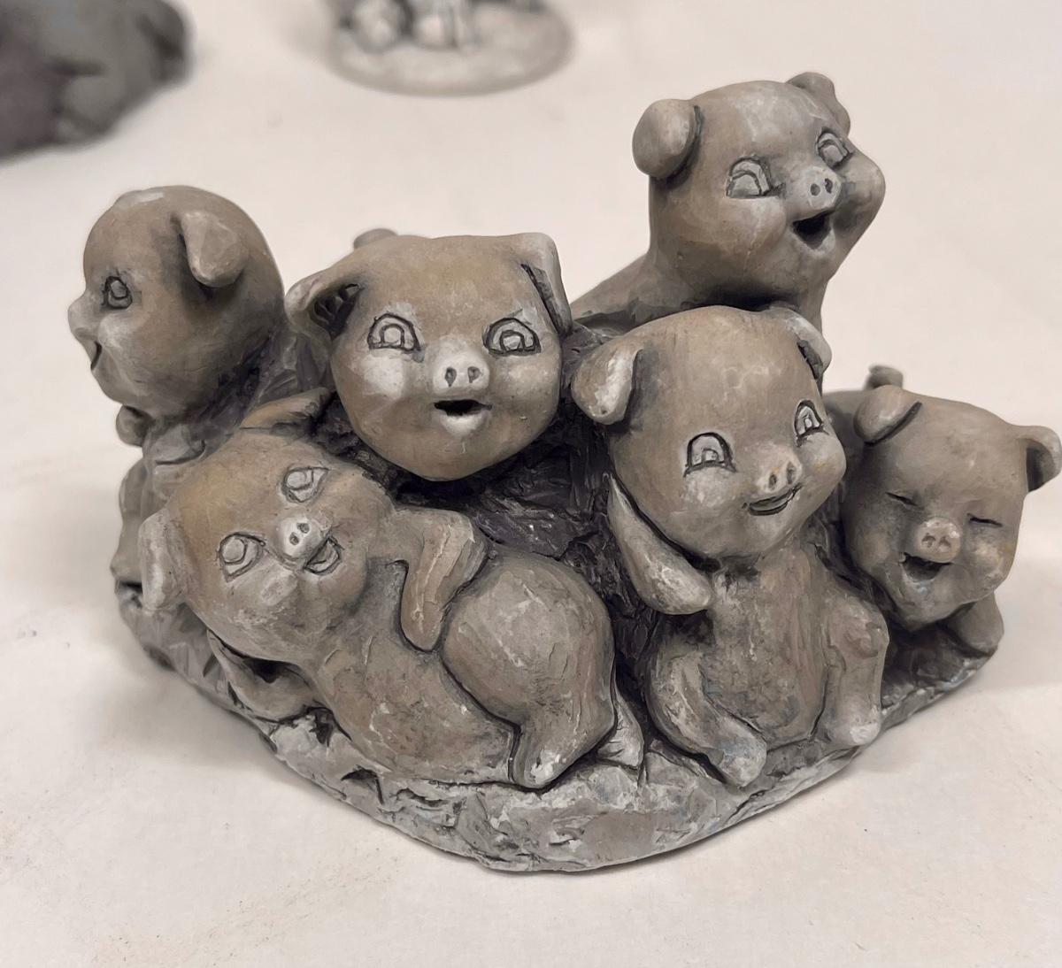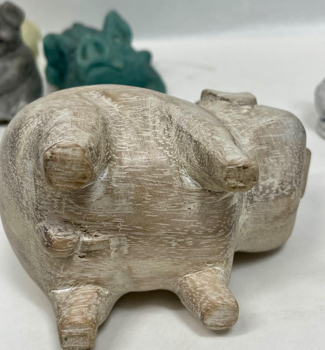 Pig Lot #1 - (7) Stone, Clay, Resin, Mt. Saint Helen's Ash, etc Figurine Small Statue - Pigs Piggies Piglet Hallmark Beck