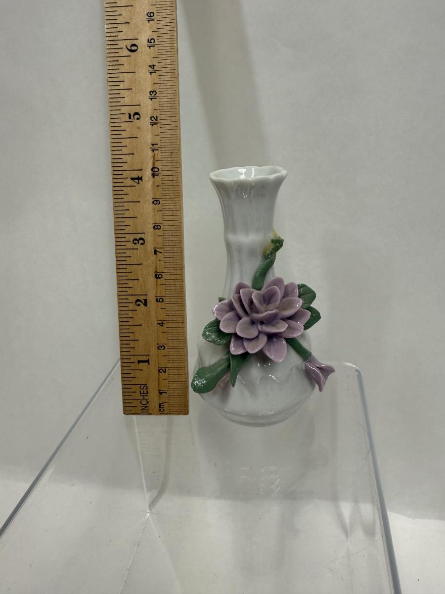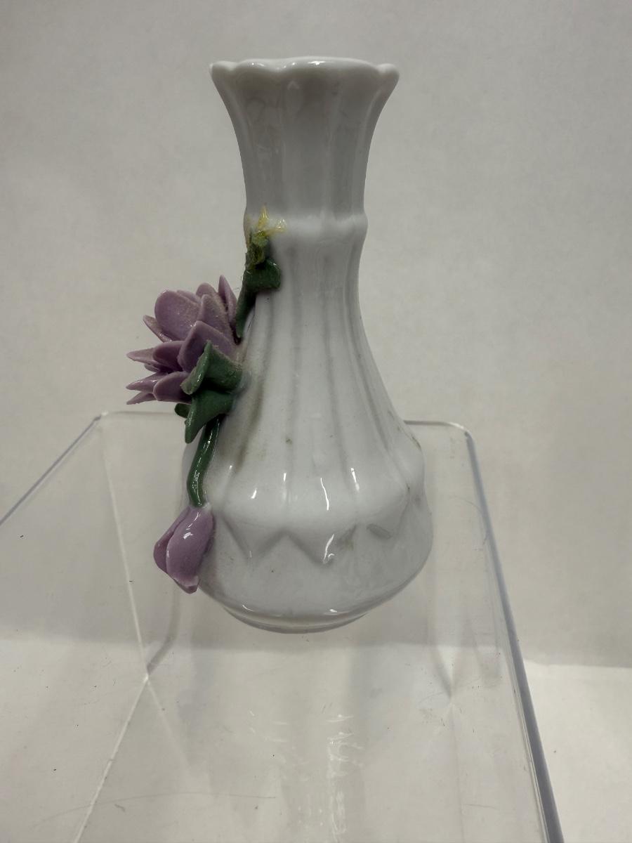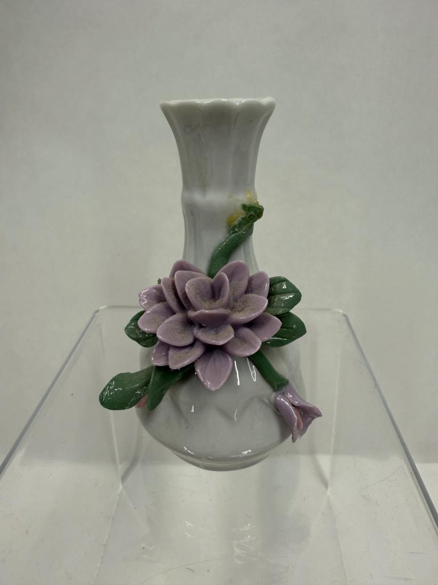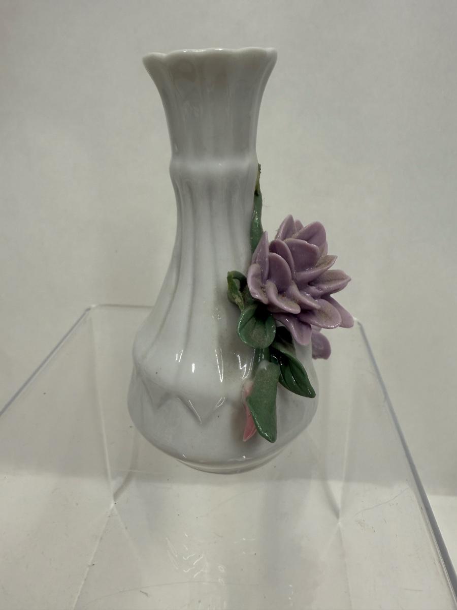 Vintage 4” Porcelain Bud Vase with Sculpted Flowers