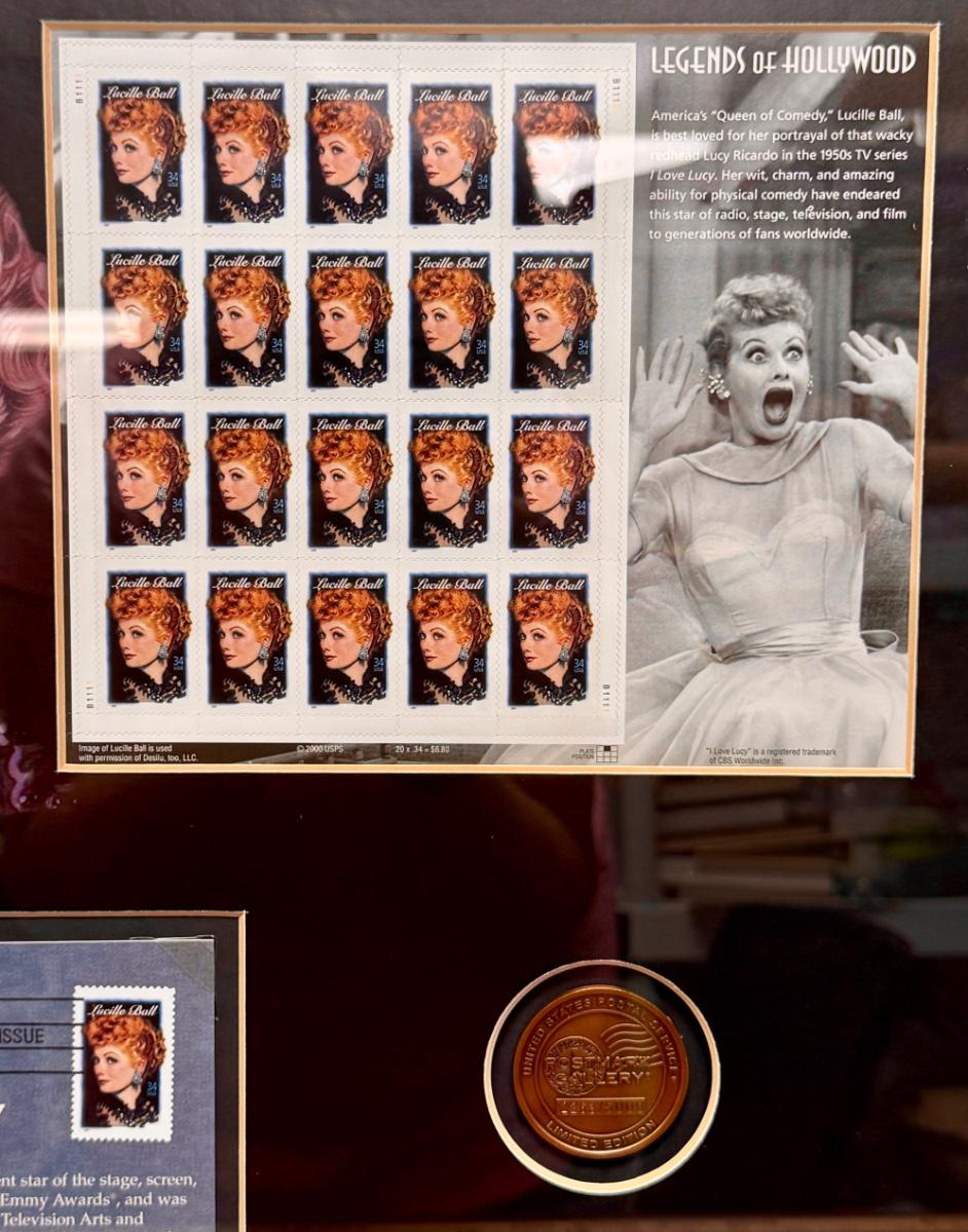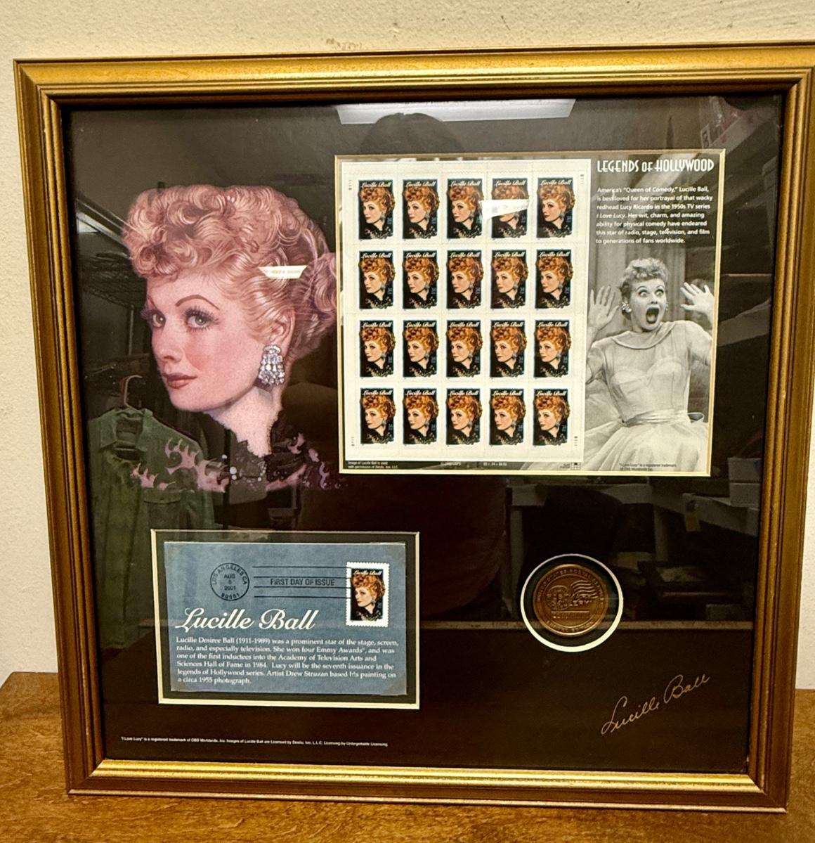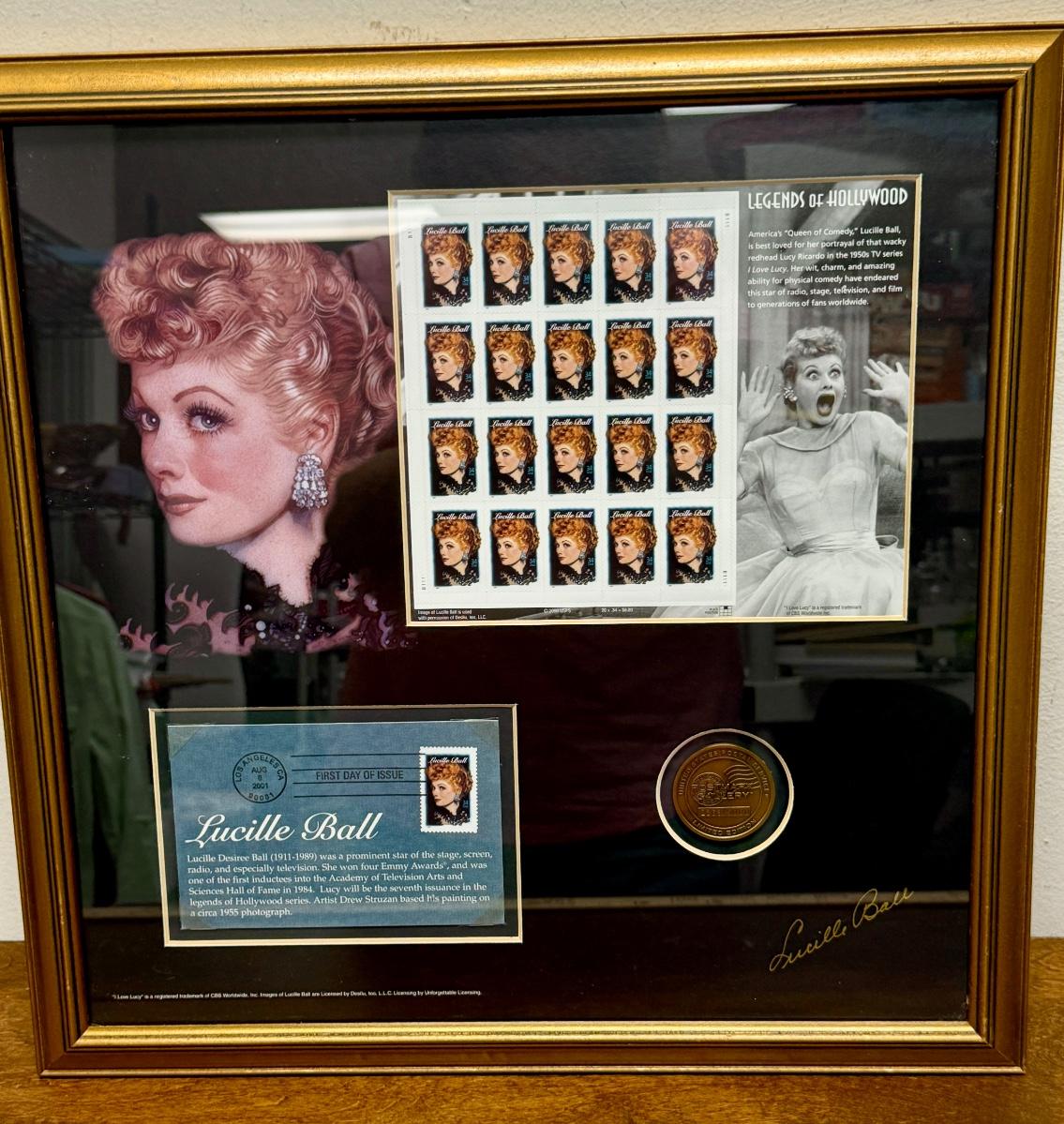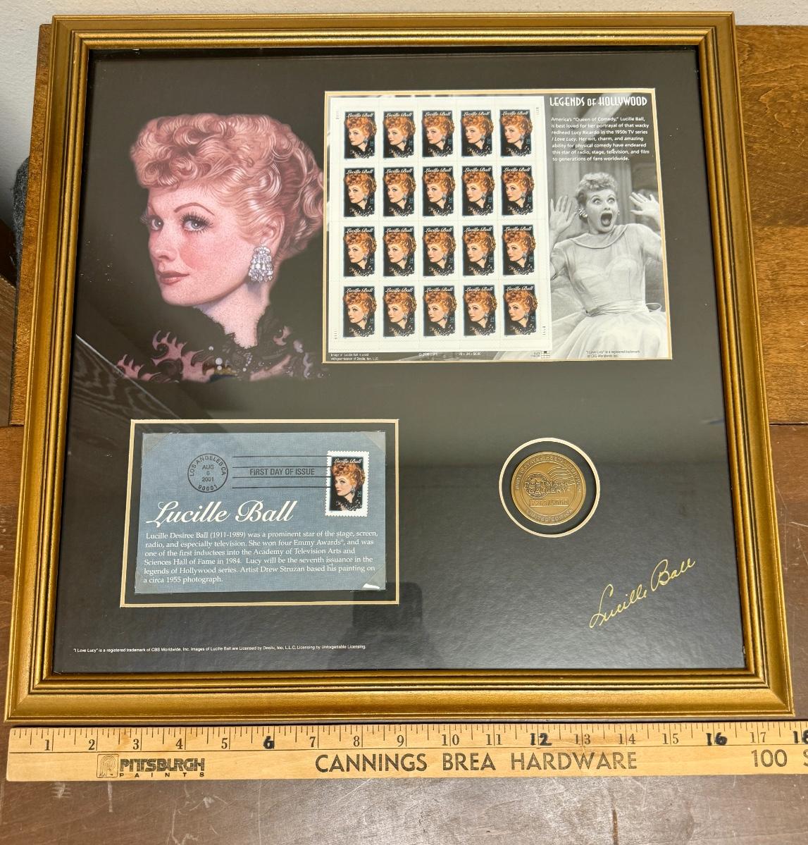 Lucille Ball Framed 18 x 18 USPS Postmark Gallery Collectors Stamps & Brass Medallion LE 22633/5000