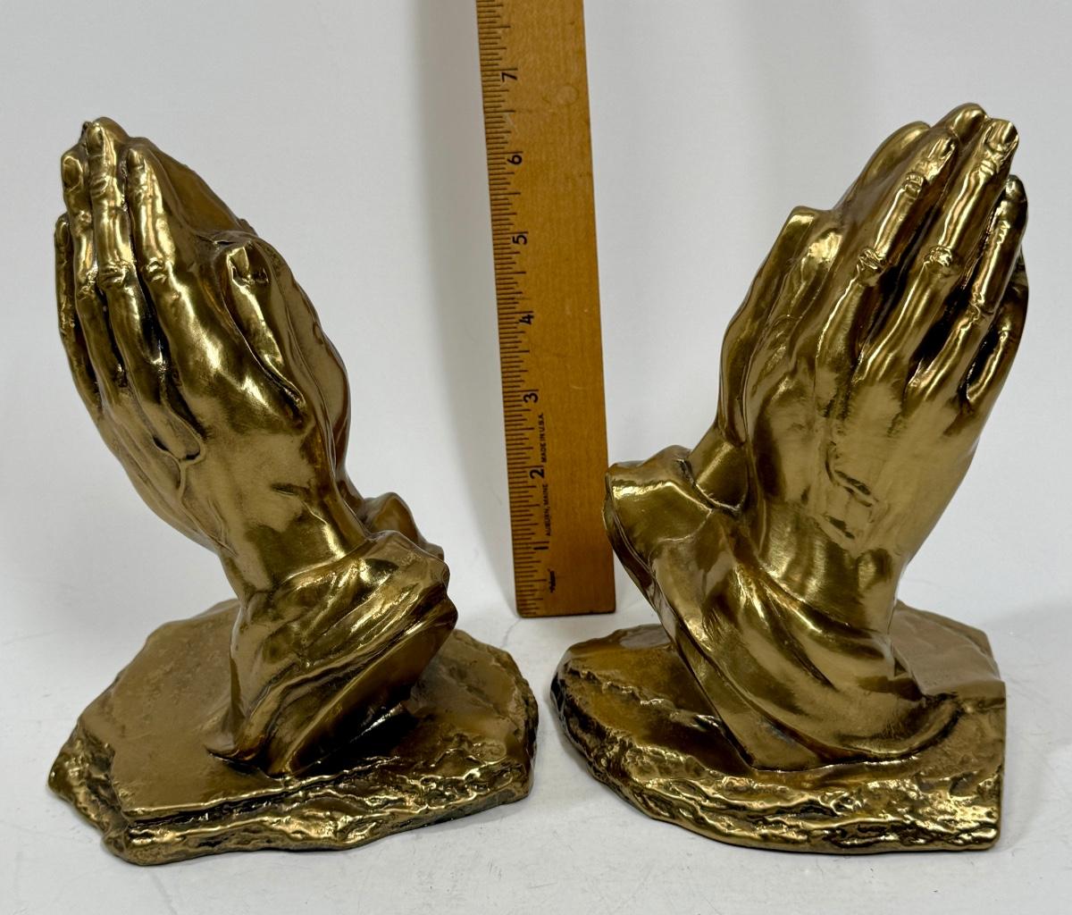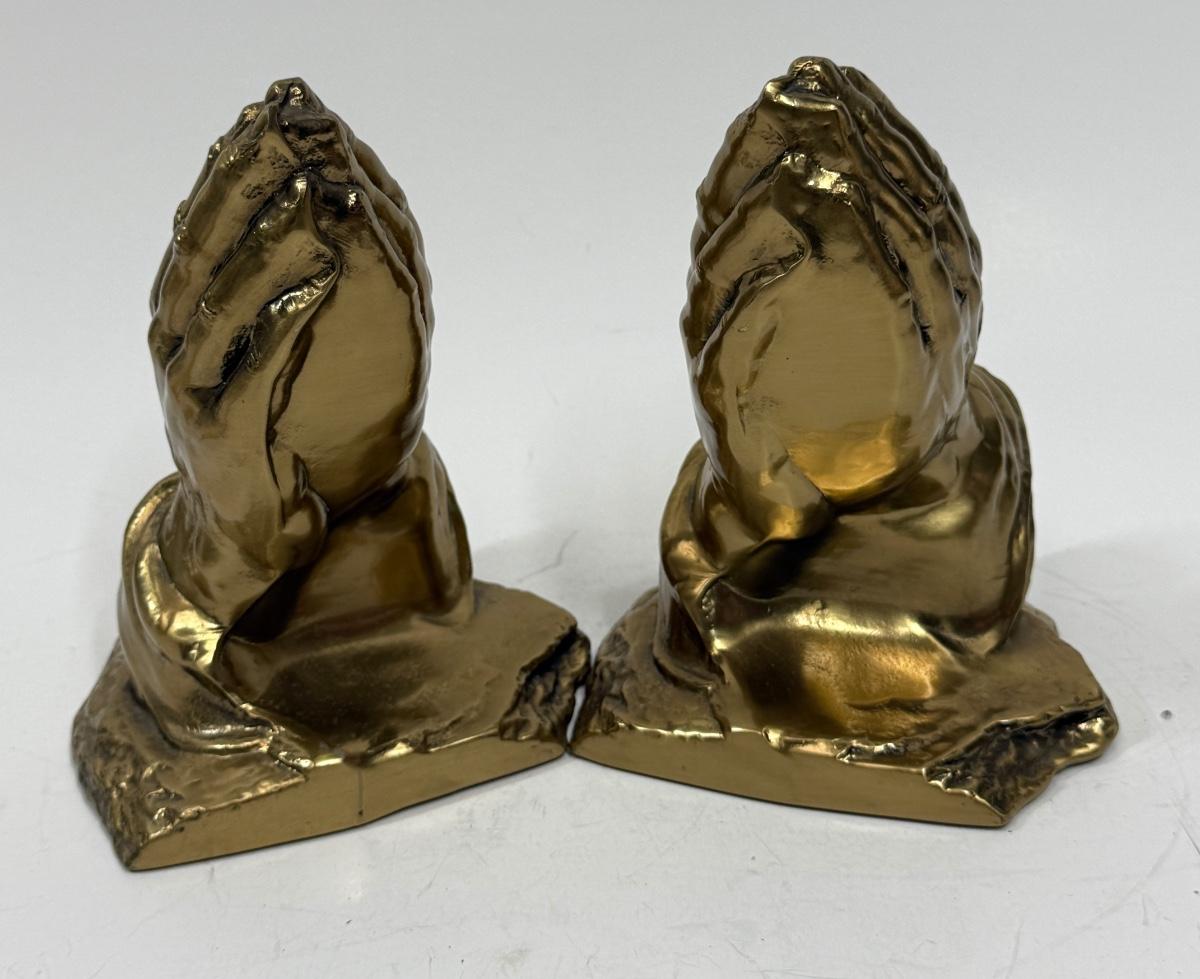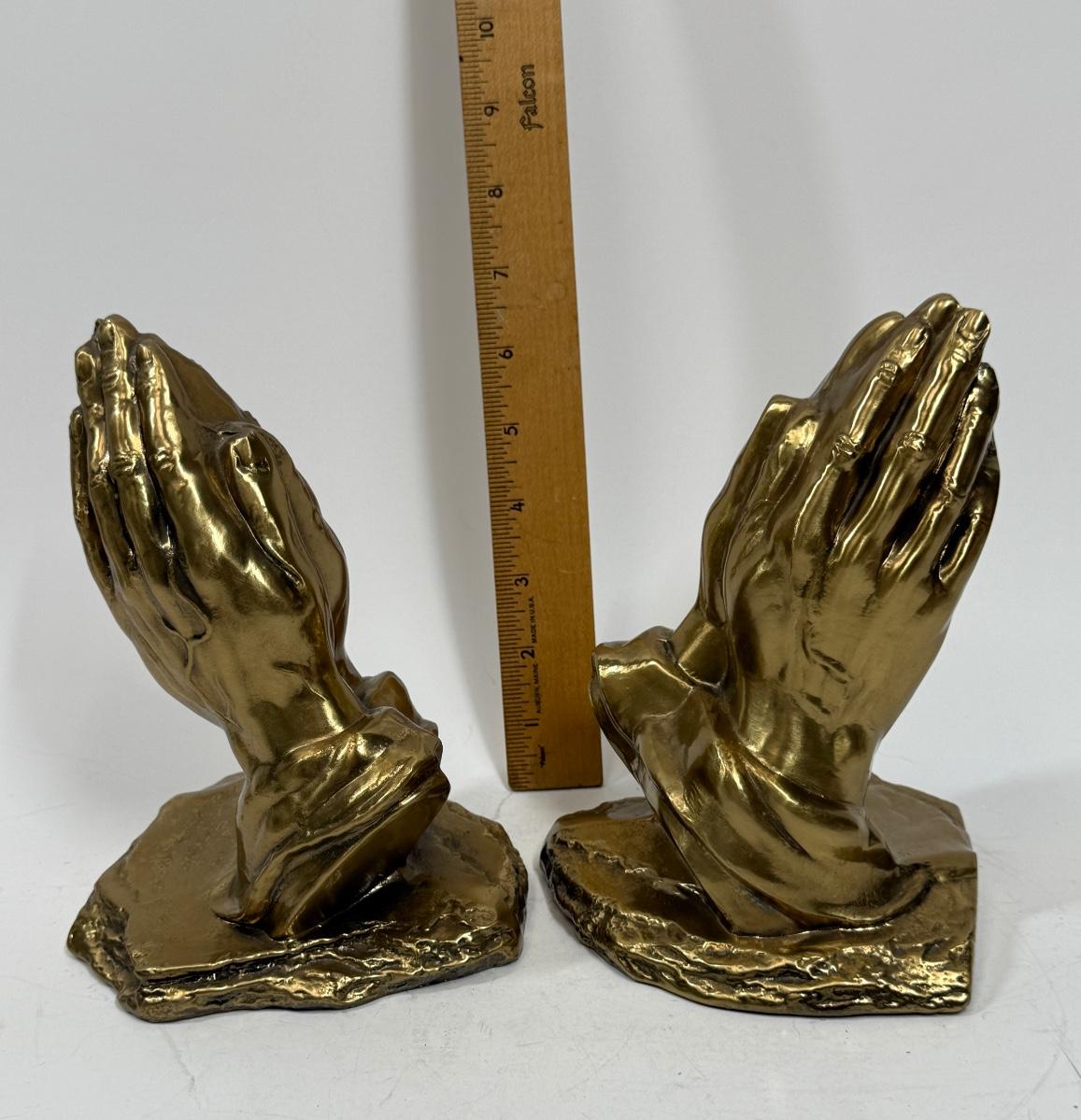 Vintage Craftsman Bronze Praying Hands Bookends - religious. decor