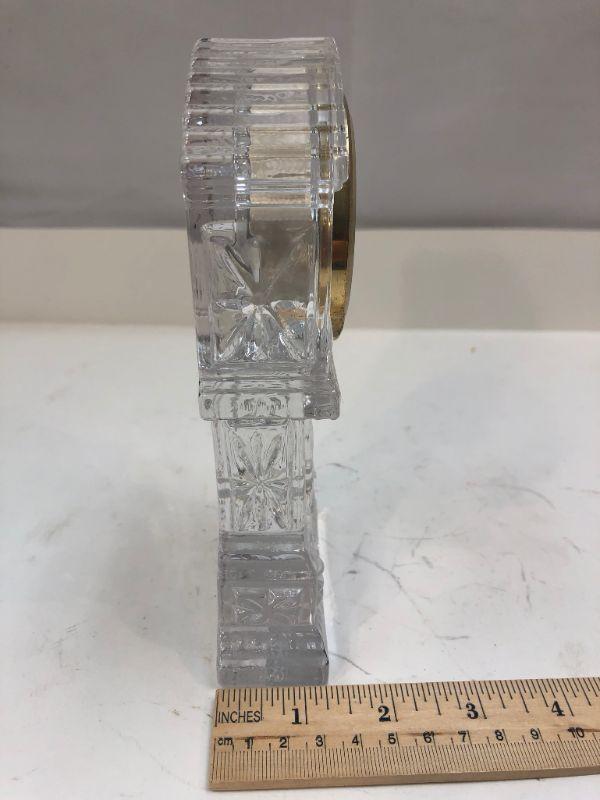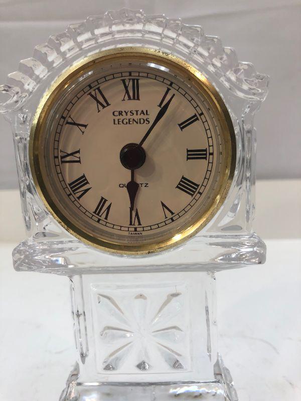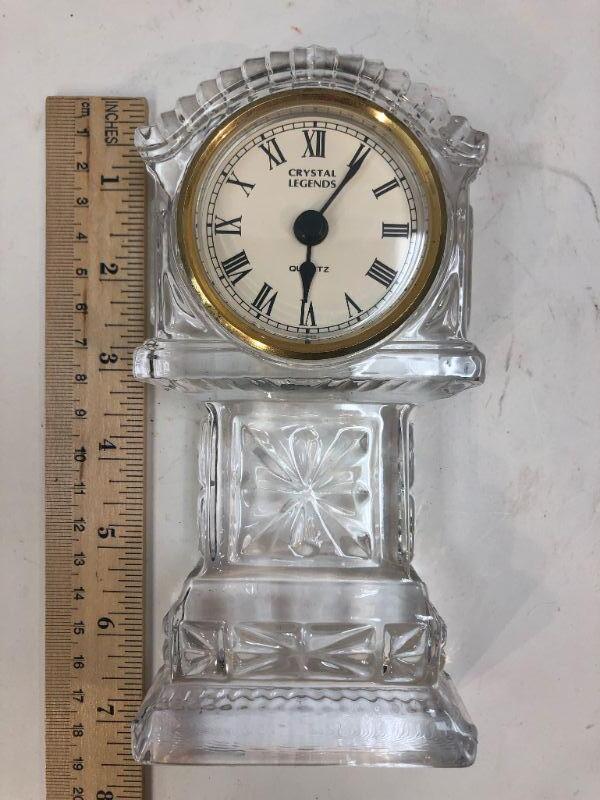 Crystal Legends table clock. Battery Operated. 8" size. Currently not running, needs batteries replaced.