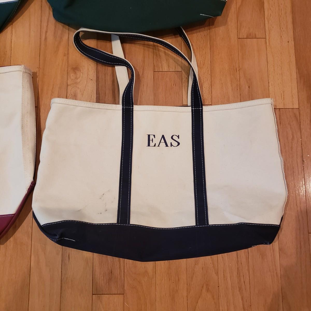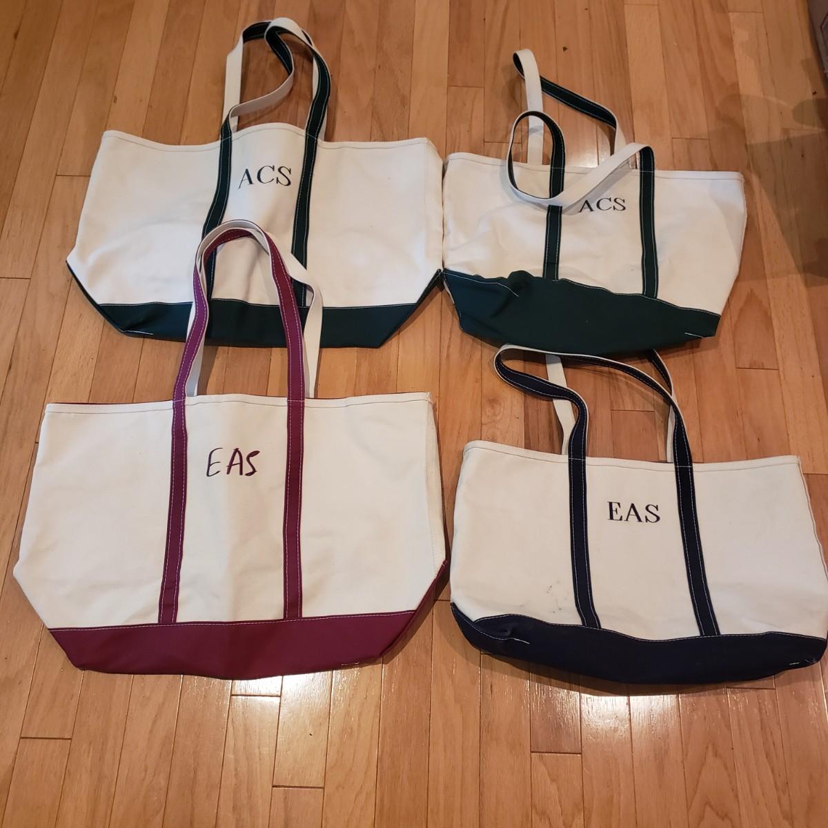 Four L.L. Bean Boat and Tote Monogrammed Canvas Bags (LLR-KD)