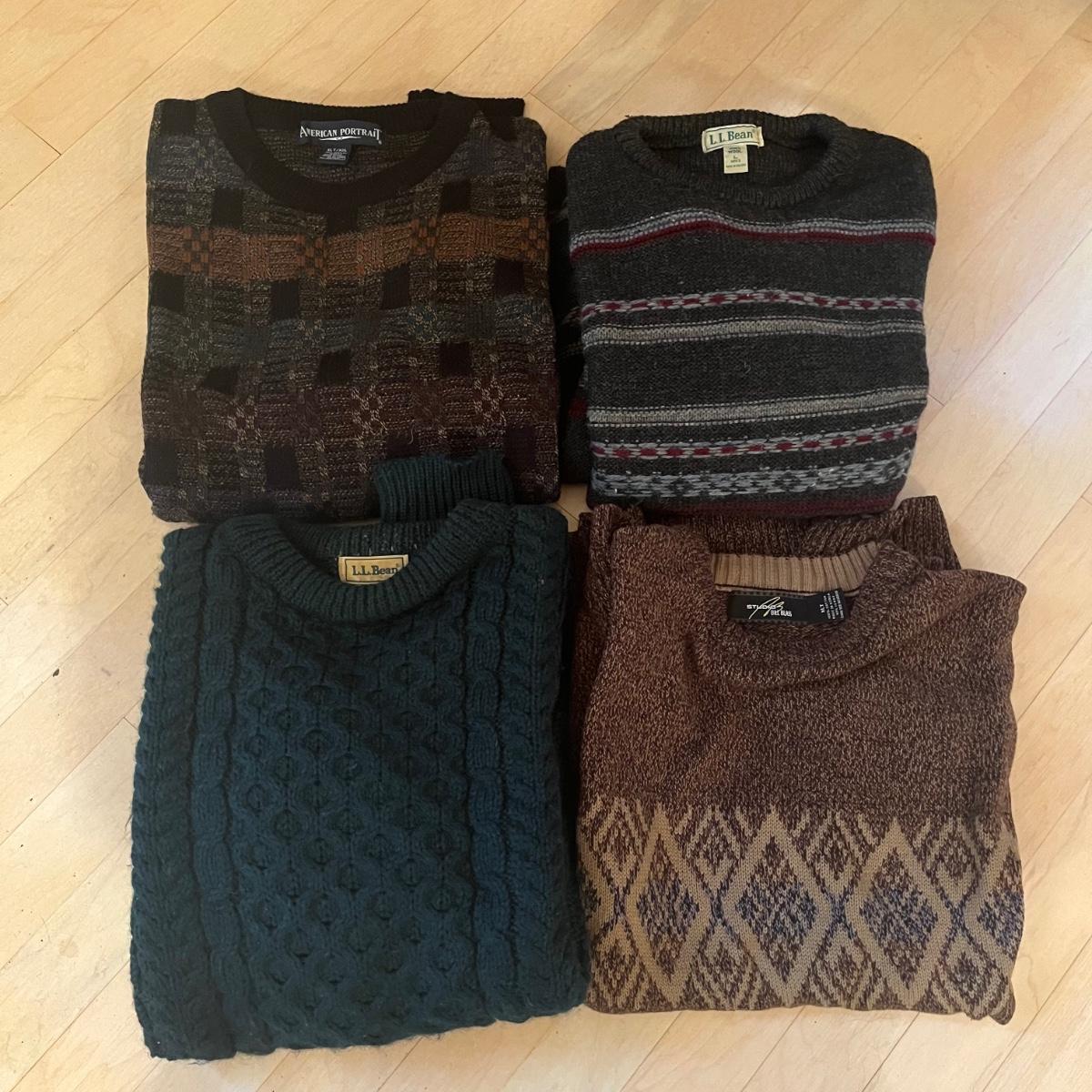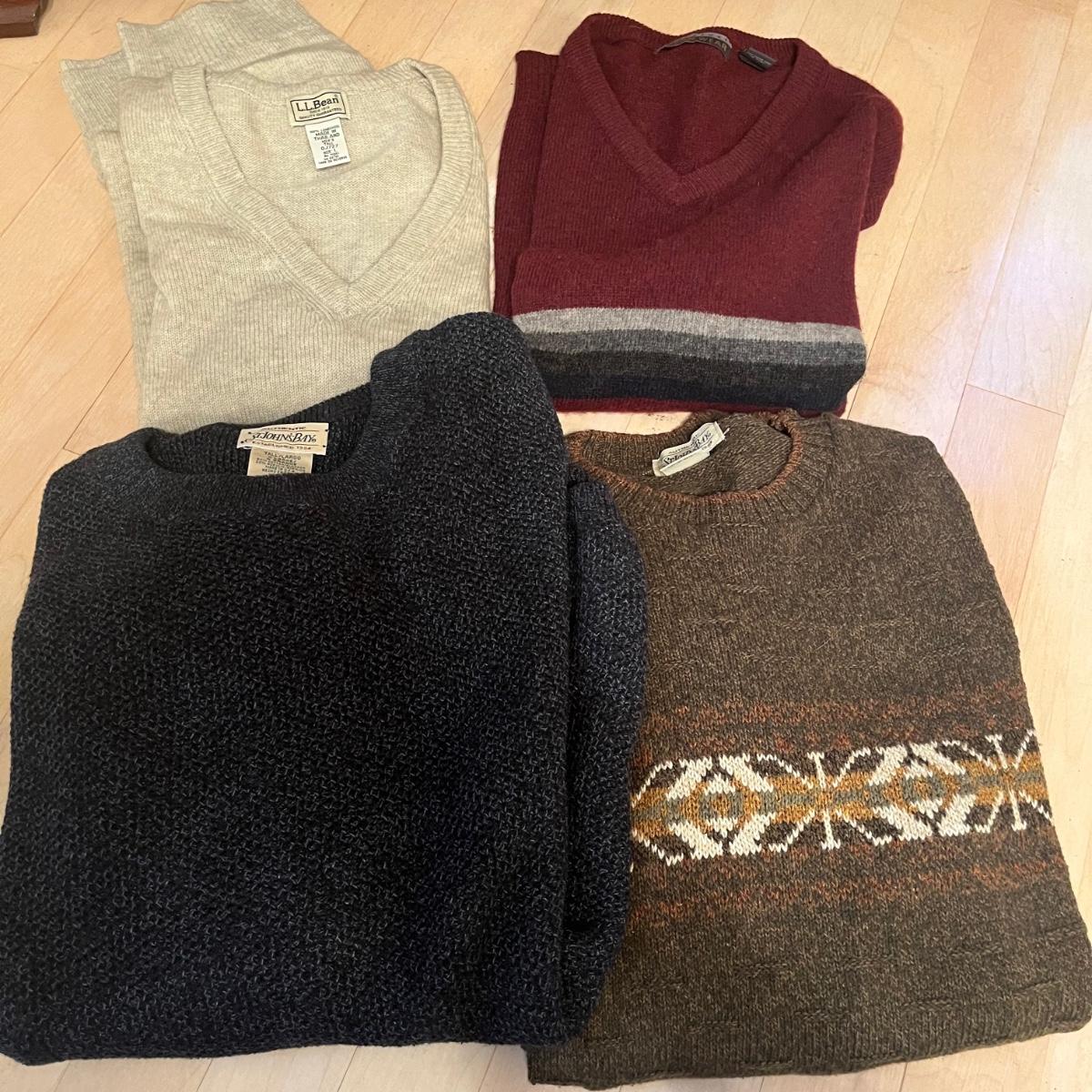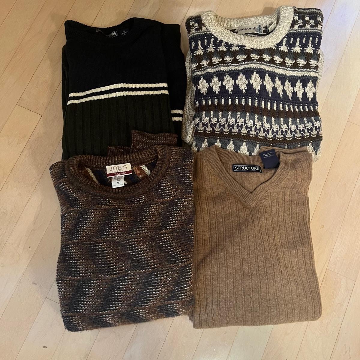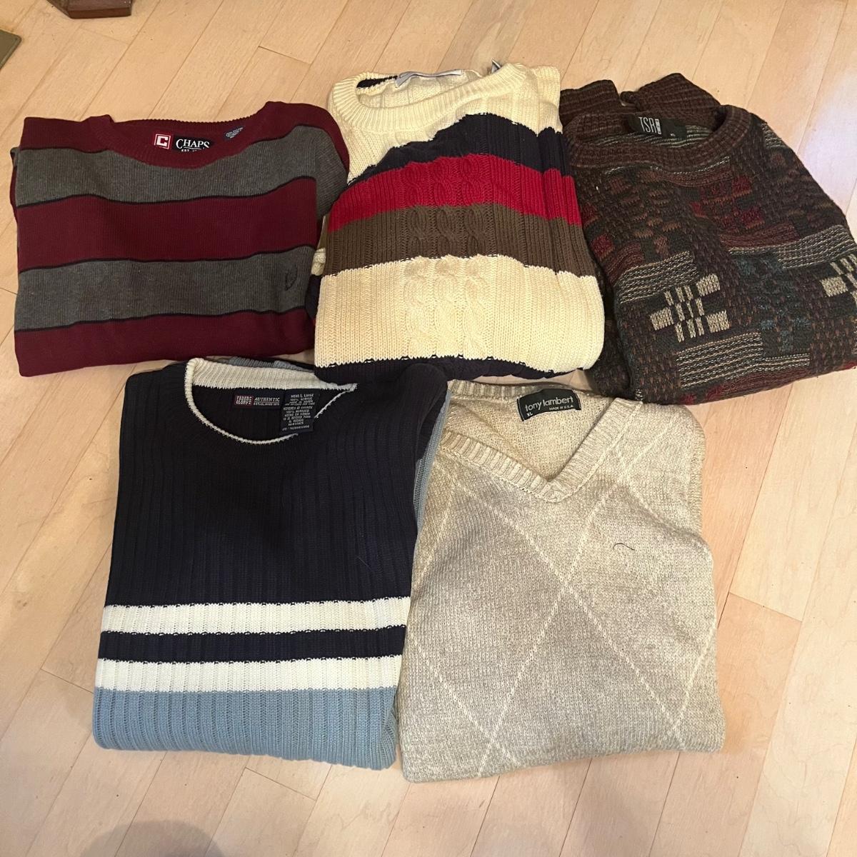 Lot includes a plethora of sweaters, turtlenecks and t shirts by makers LL Bean, Faded Glory, Chaps, Carhartt, Joes Casual and more. Most are sized XL with some L and 2XL also. Clothes have the smell of smoke on them.