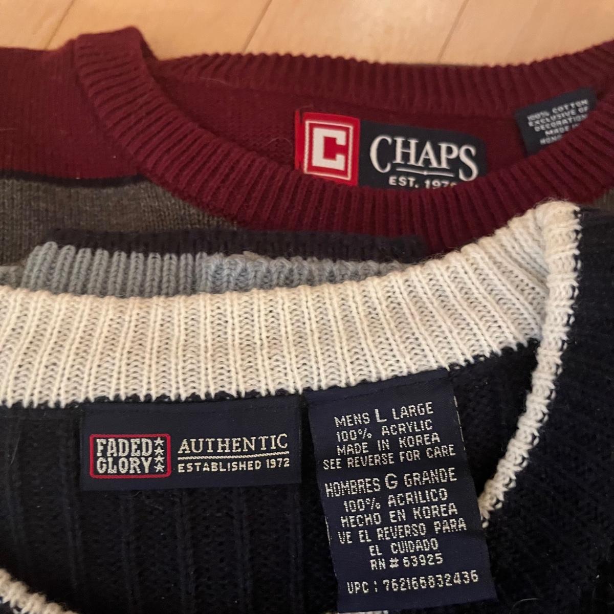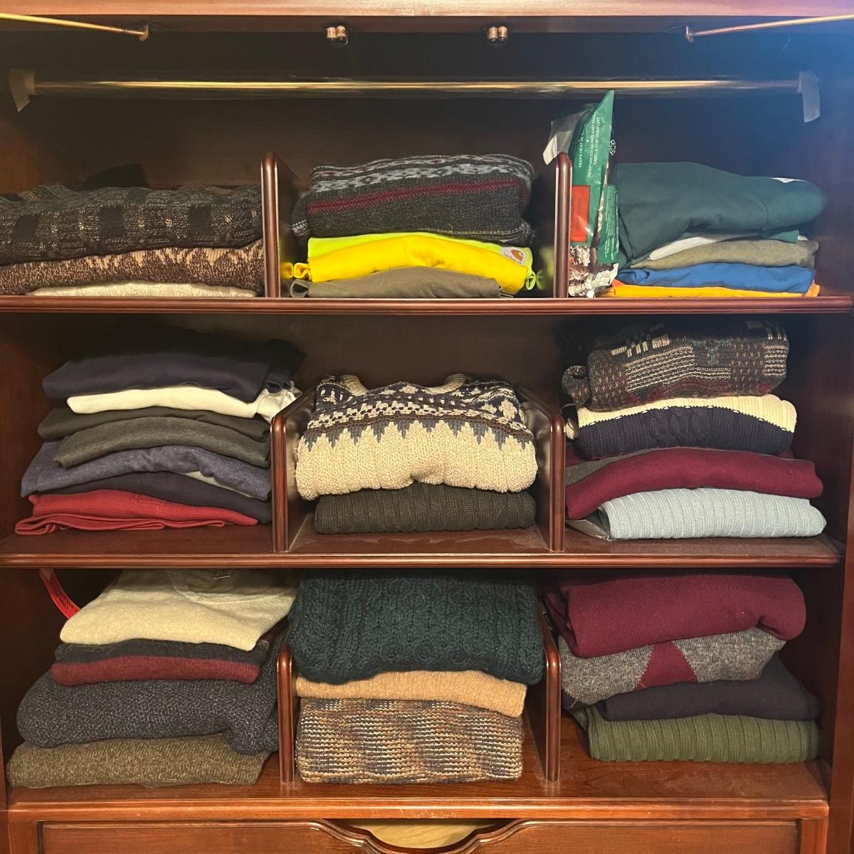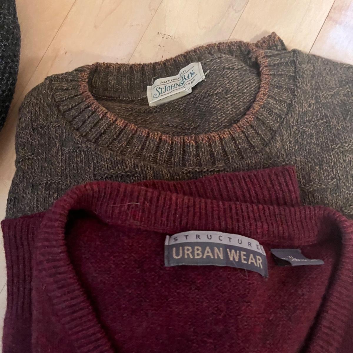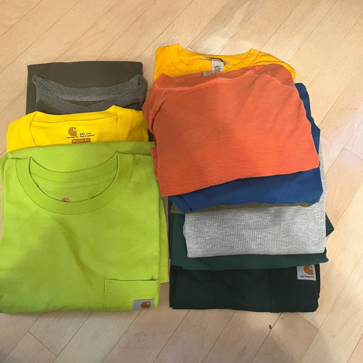 Lot includes a plethora of sweaters, turtlenecks and t shirts by makers LL Bean, Faded Glory, Chaps, Carhartt, Joes Casual and more. Most are sized XL with some L and 2XL also. Clothes have the smell of smoke on them.
