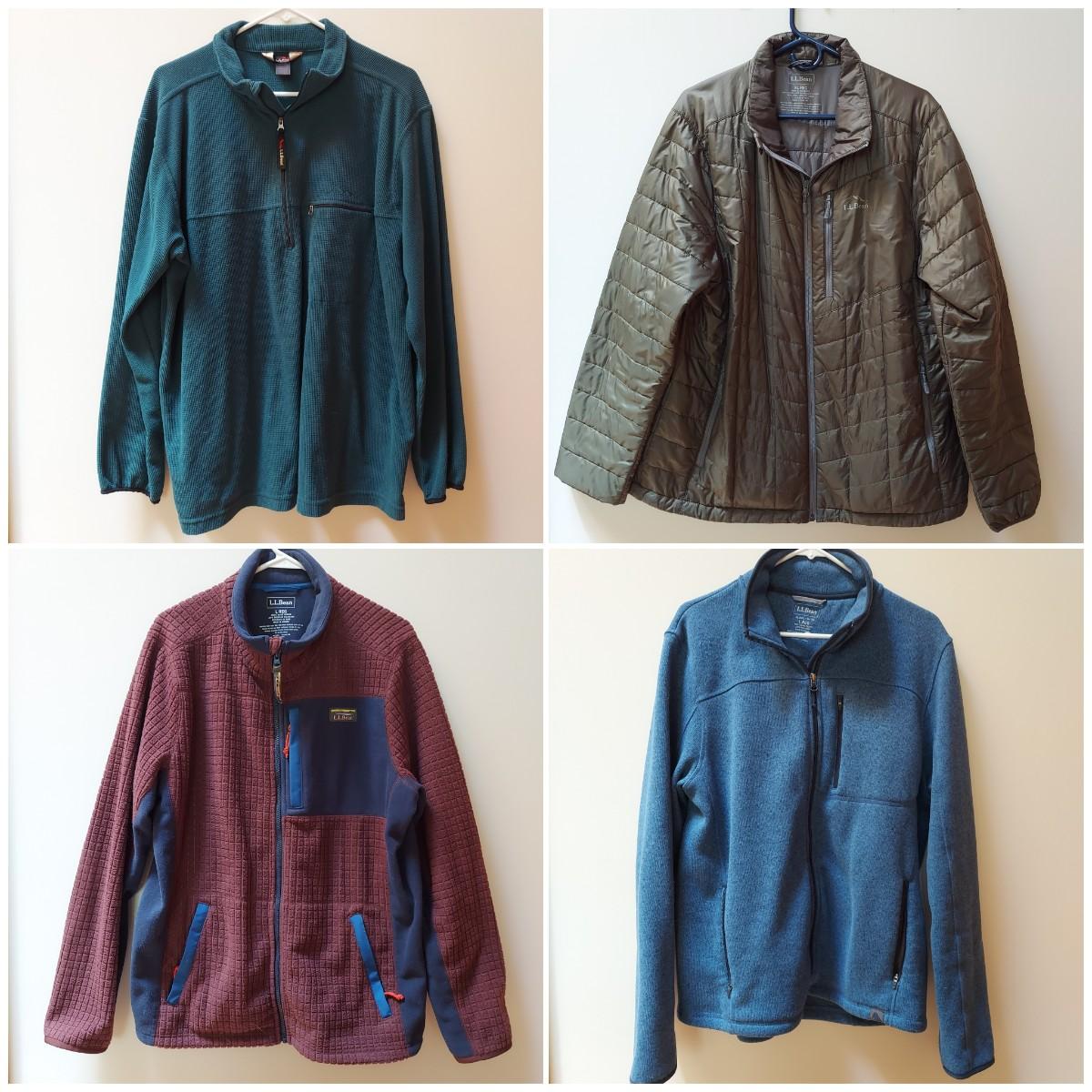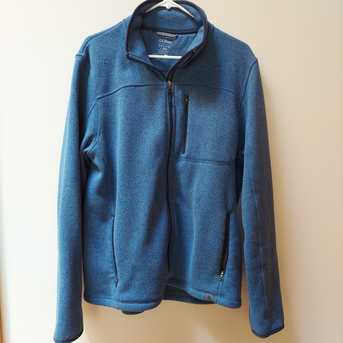 Lot includes 10+ pieces of L.L. Bean clothing including zip front jackets and pullovers. Most items are size large. Some have surface debris like cat hair. Please see photos for details. Shipping available