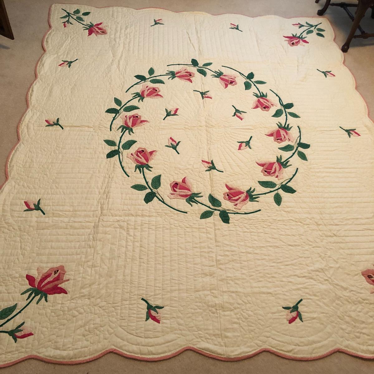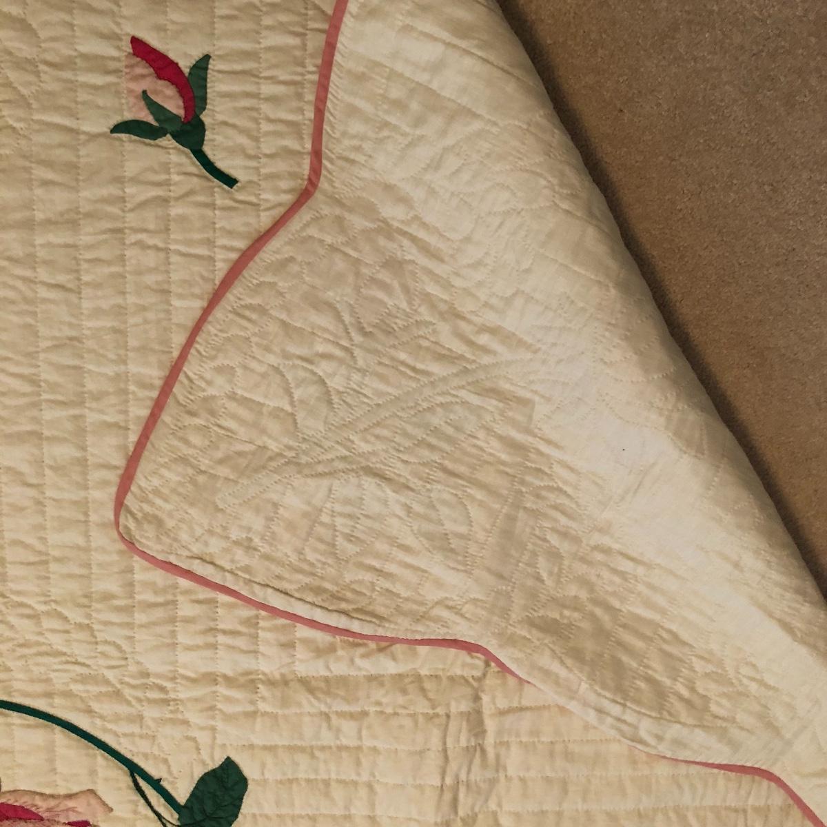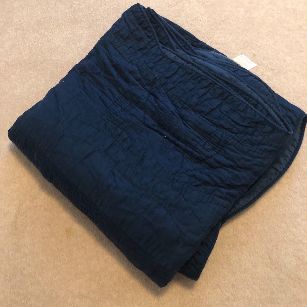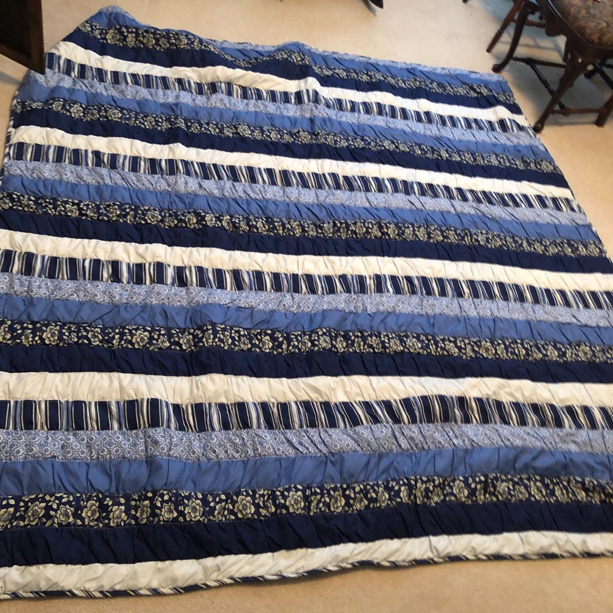 We have three quilted bedspreads in this lot that will easily fit an XL twin or full, maybe even a queen without much of a mattress drop; rose bedspread measures 76” x 90”, blue patterned 80” x 90” and solid blue 82” x 84”. Also included are numerous pillow cases plus a pillow protector and LL Bean queen sheets that are brand new and an ivory queen fitted sheet.