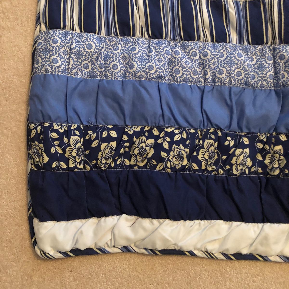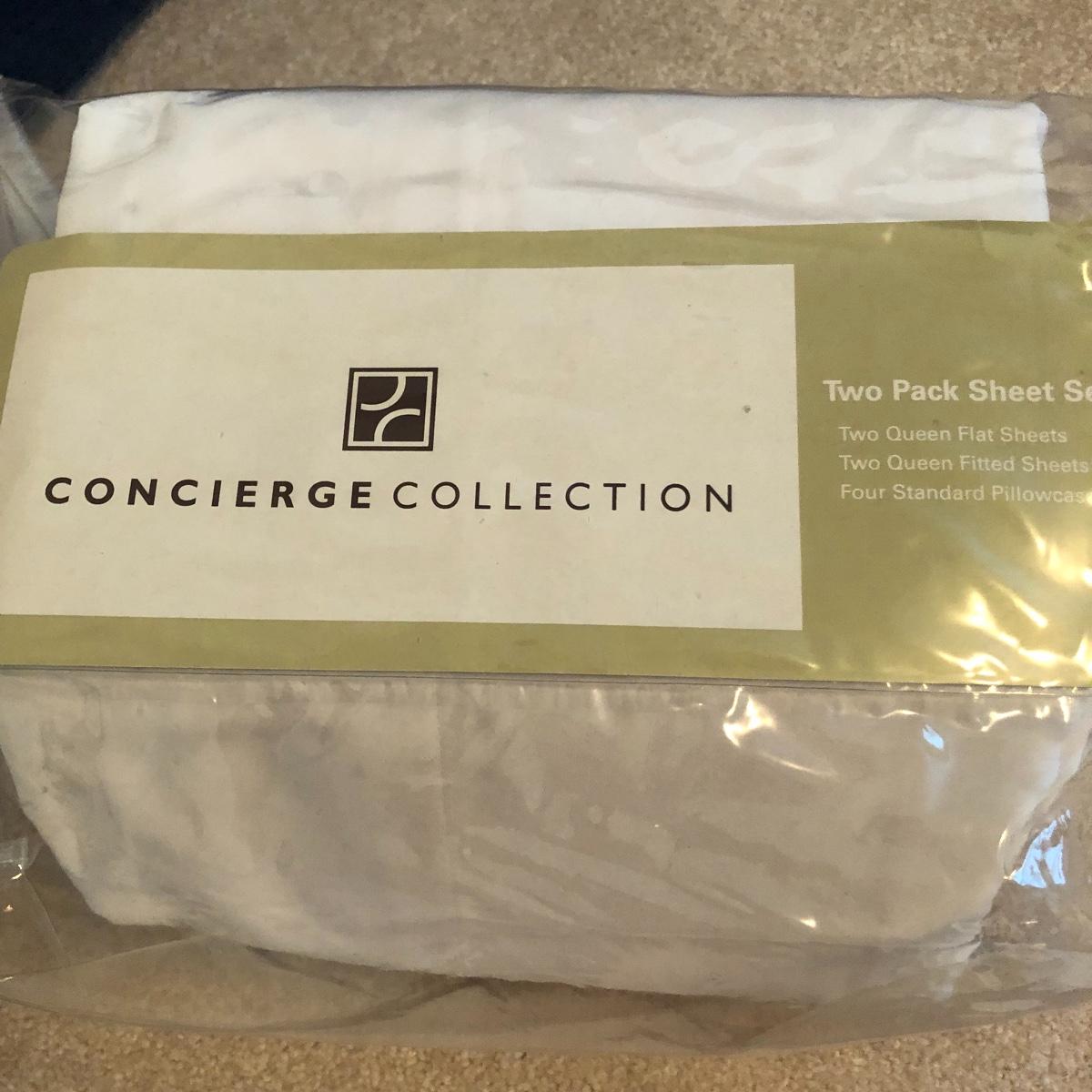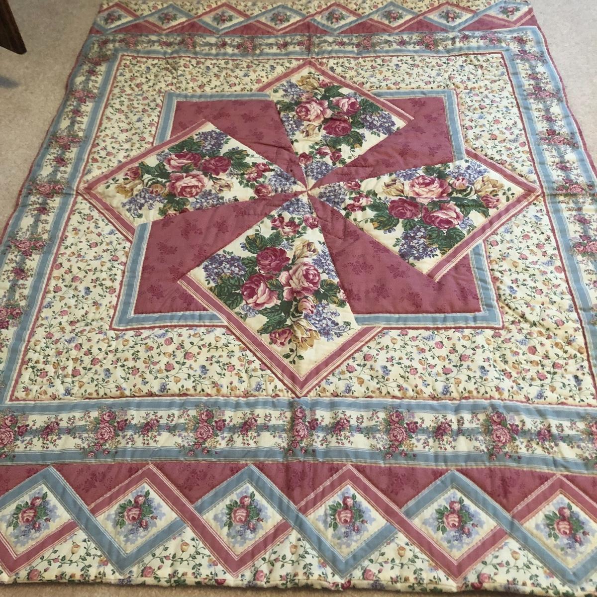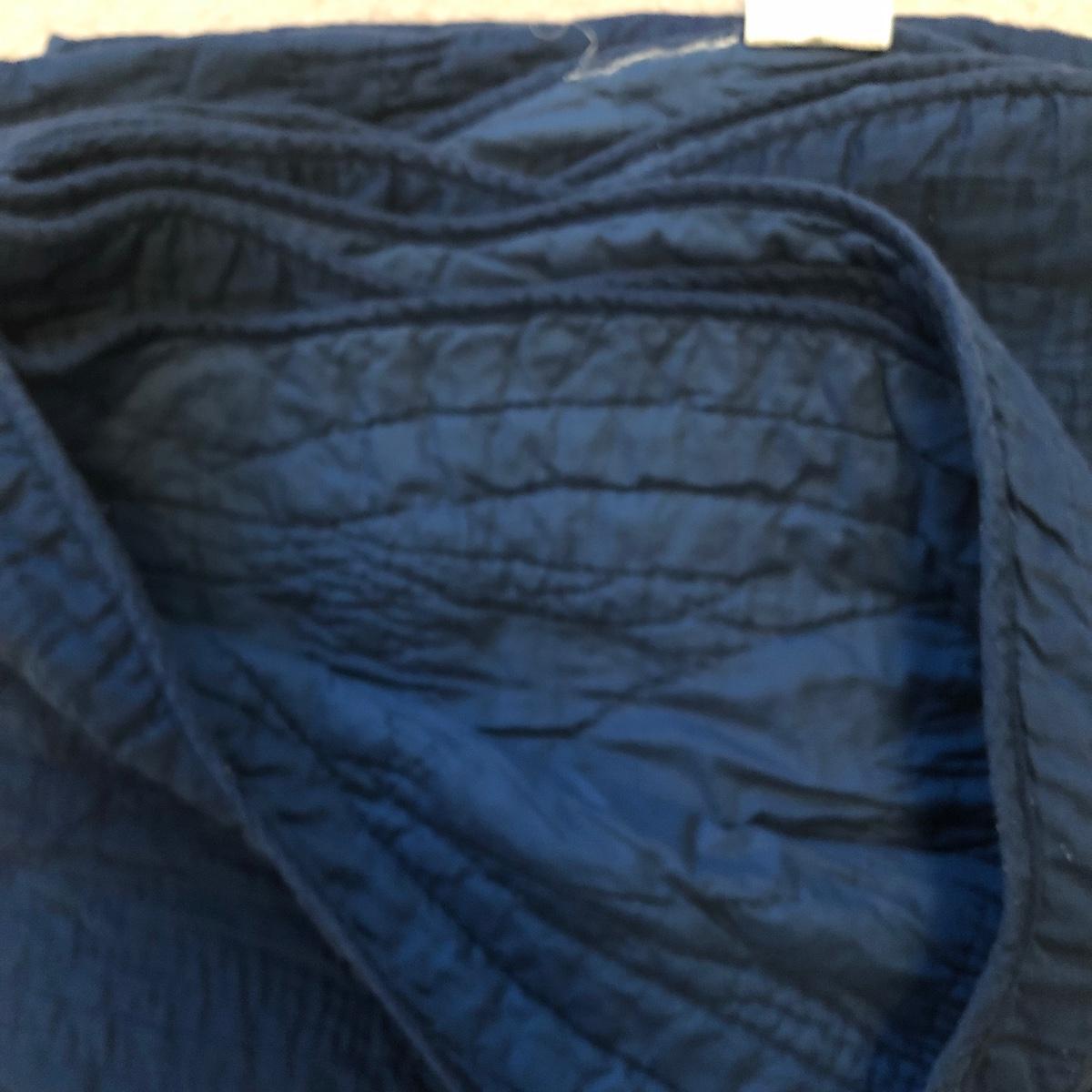 We have three quilted bedspreads in this lot that will easily fit an XL twin or full, maybe even a queen without much of a mattress drop; rose bedspread measures 76” x 90”, blue patterned 80” x 90” and solid blue 82” x 84”. Also included are numerous pillow cases plus a pillow protector and LL Bean queen sheets that are brand new and an ivory queen fitted sheet.