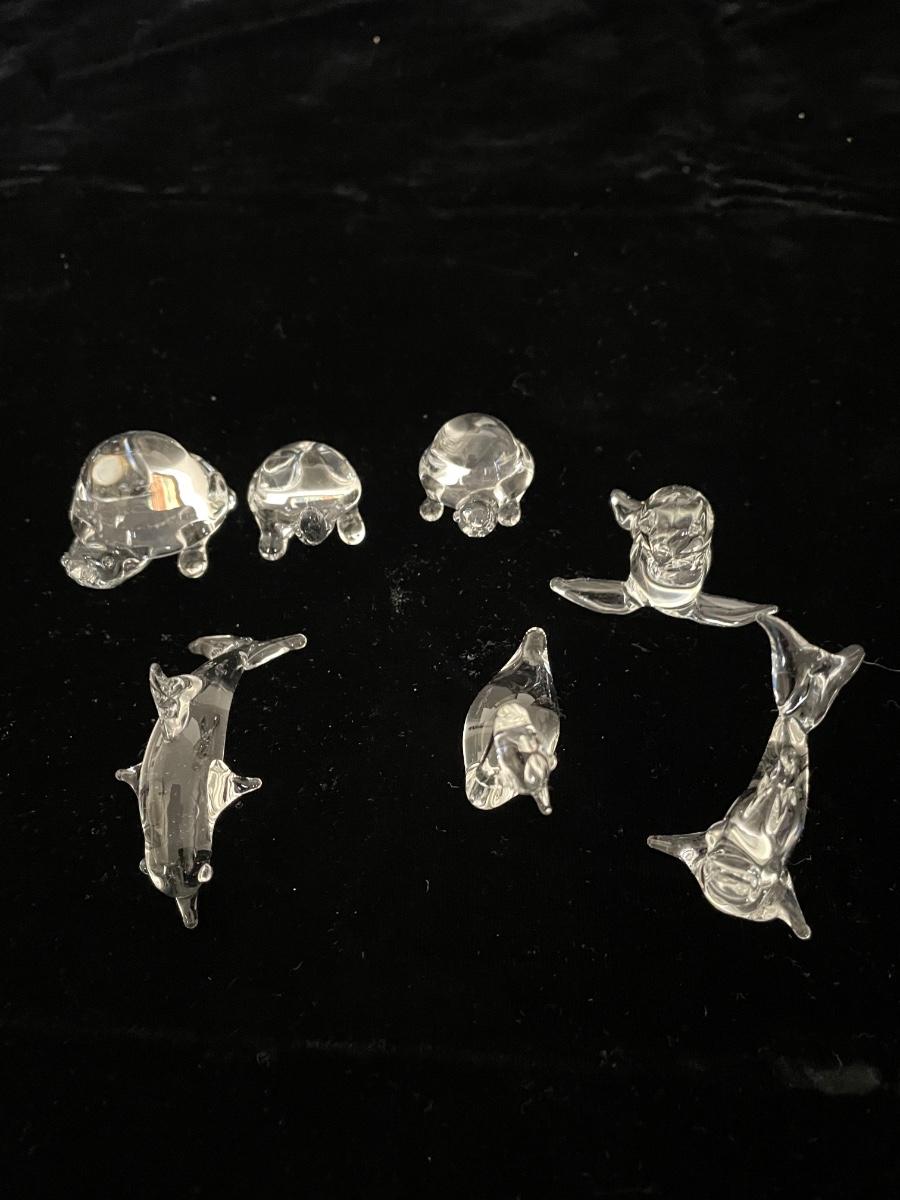 GLASS FIGURINES. TURTLES, DOLPHIN, FISH AND MORE