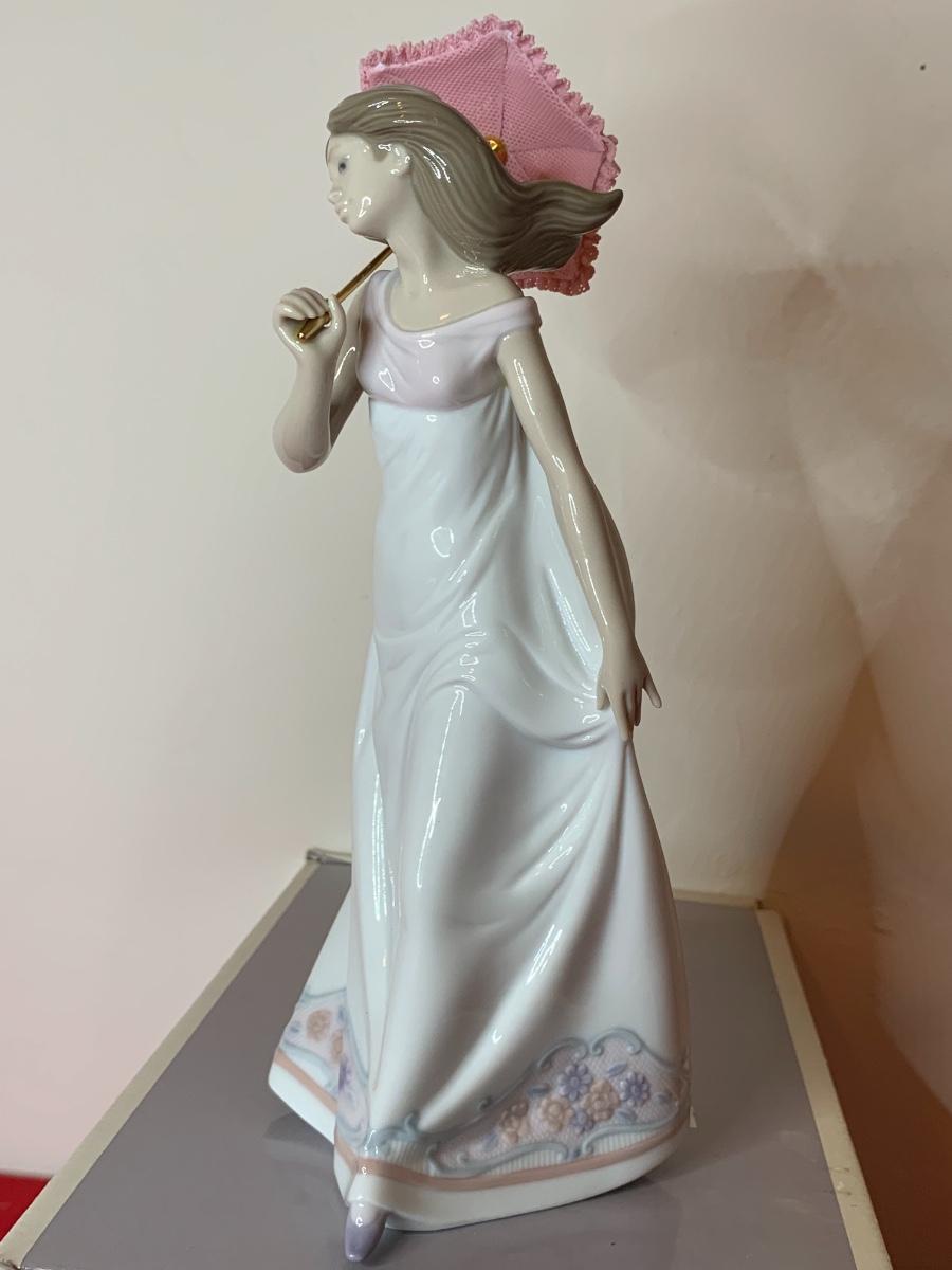 Lot includes a beautiful Lladro woman figurine with pink parasol. Excellent condition, in original box.