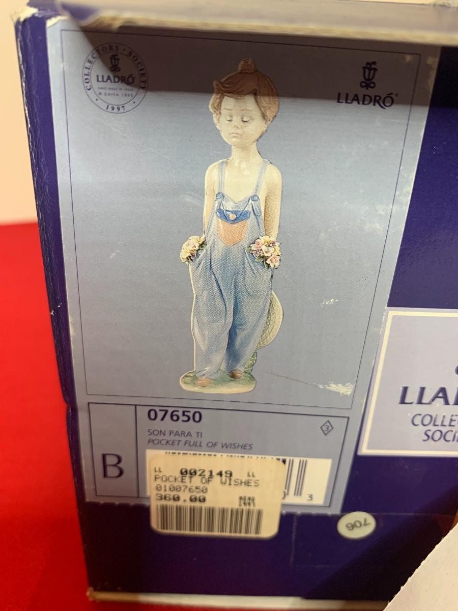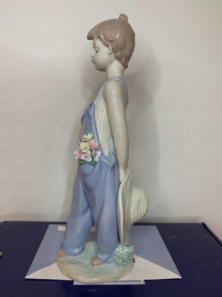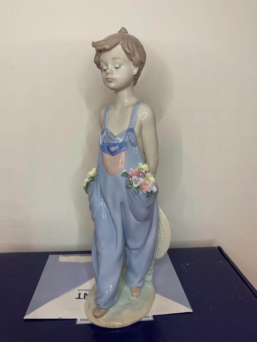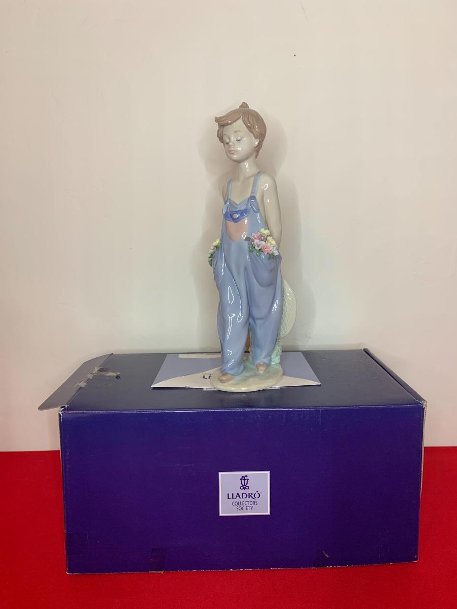 Lot includes Lladro figurine in overalls with flowers in pockets. Excellent condition, in original box.