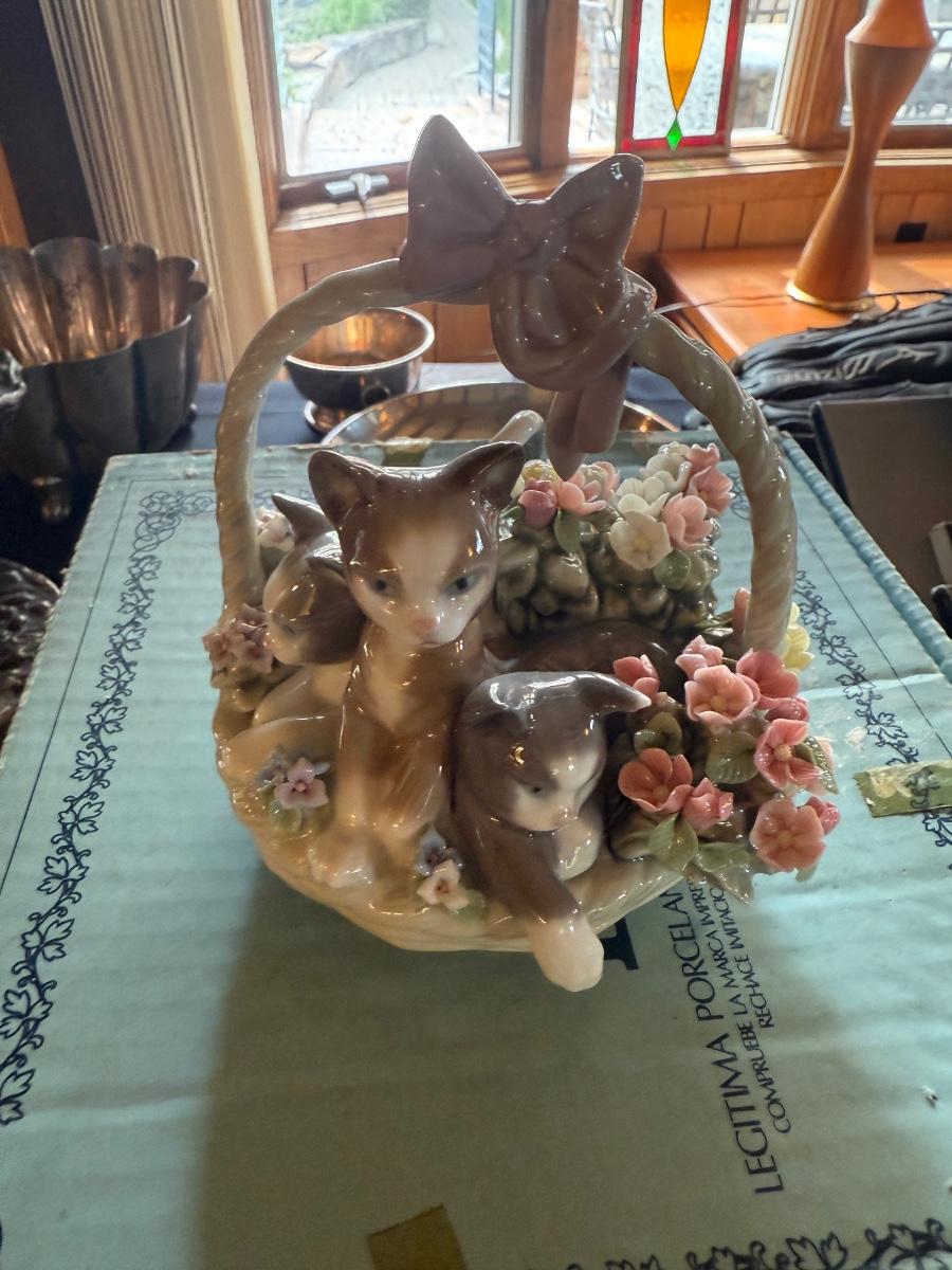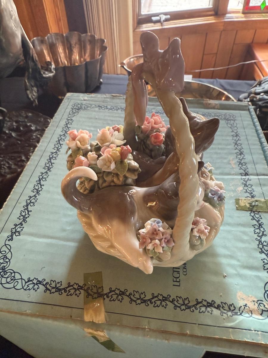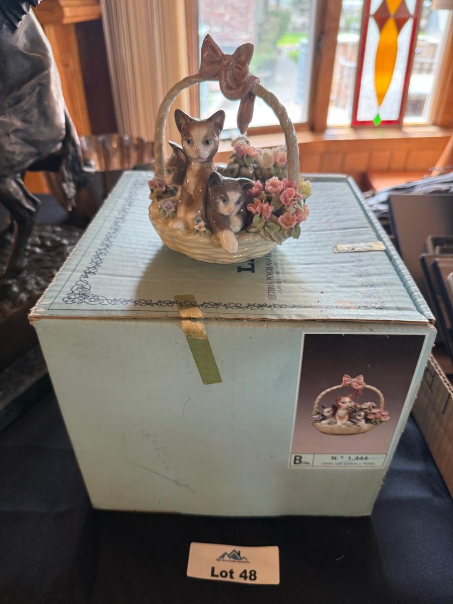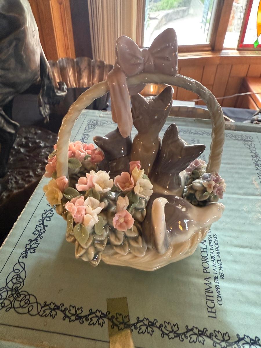 Lladro #1444 “Cesta con Gatitos y flores” with box