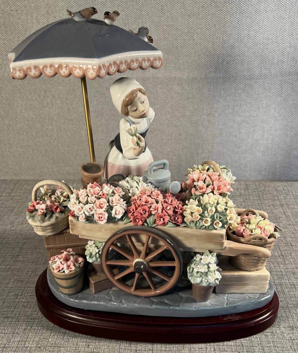 Good overall condition on this rare retired Lladro some light damage on petals in the basket next to the girl.