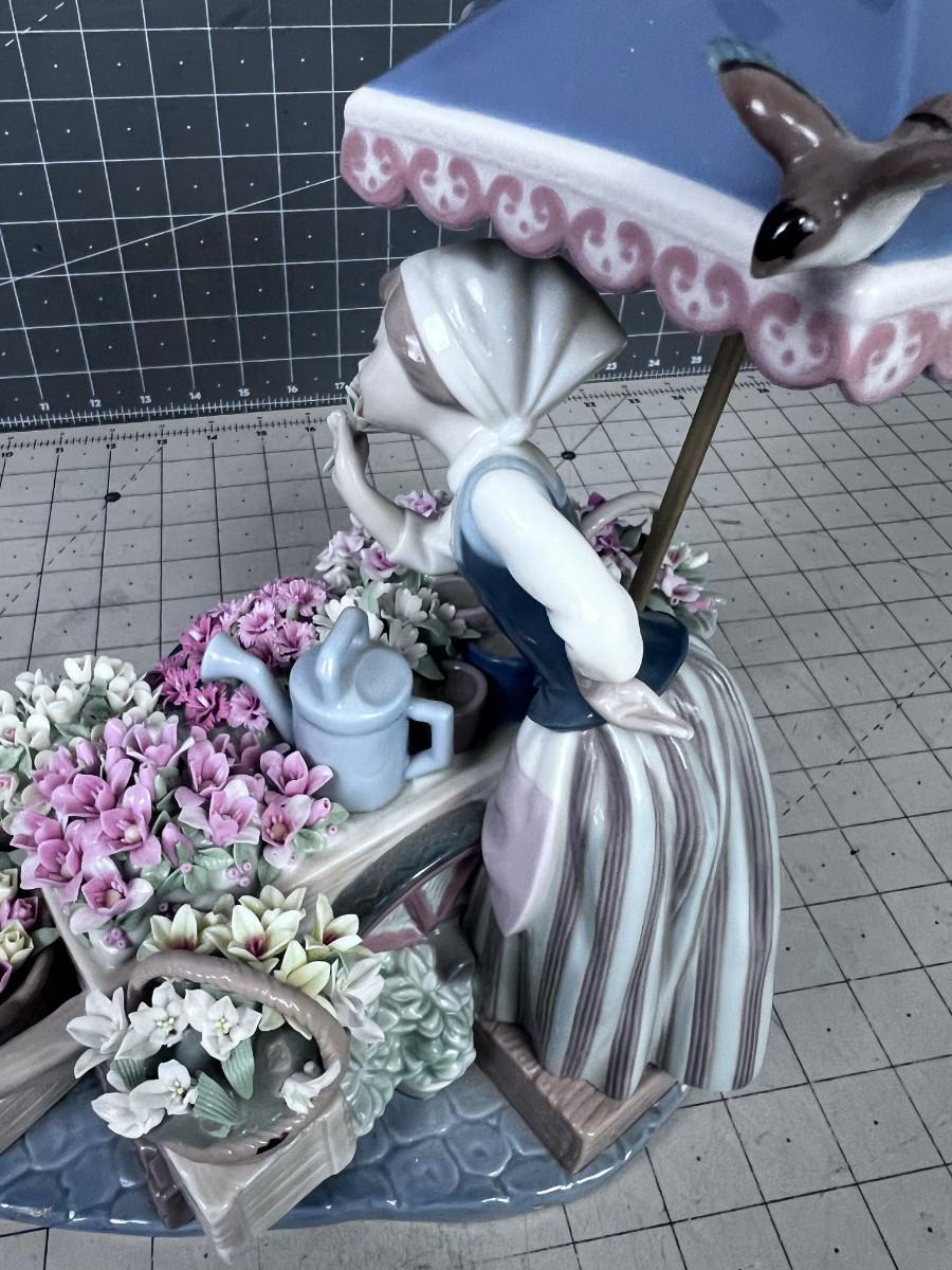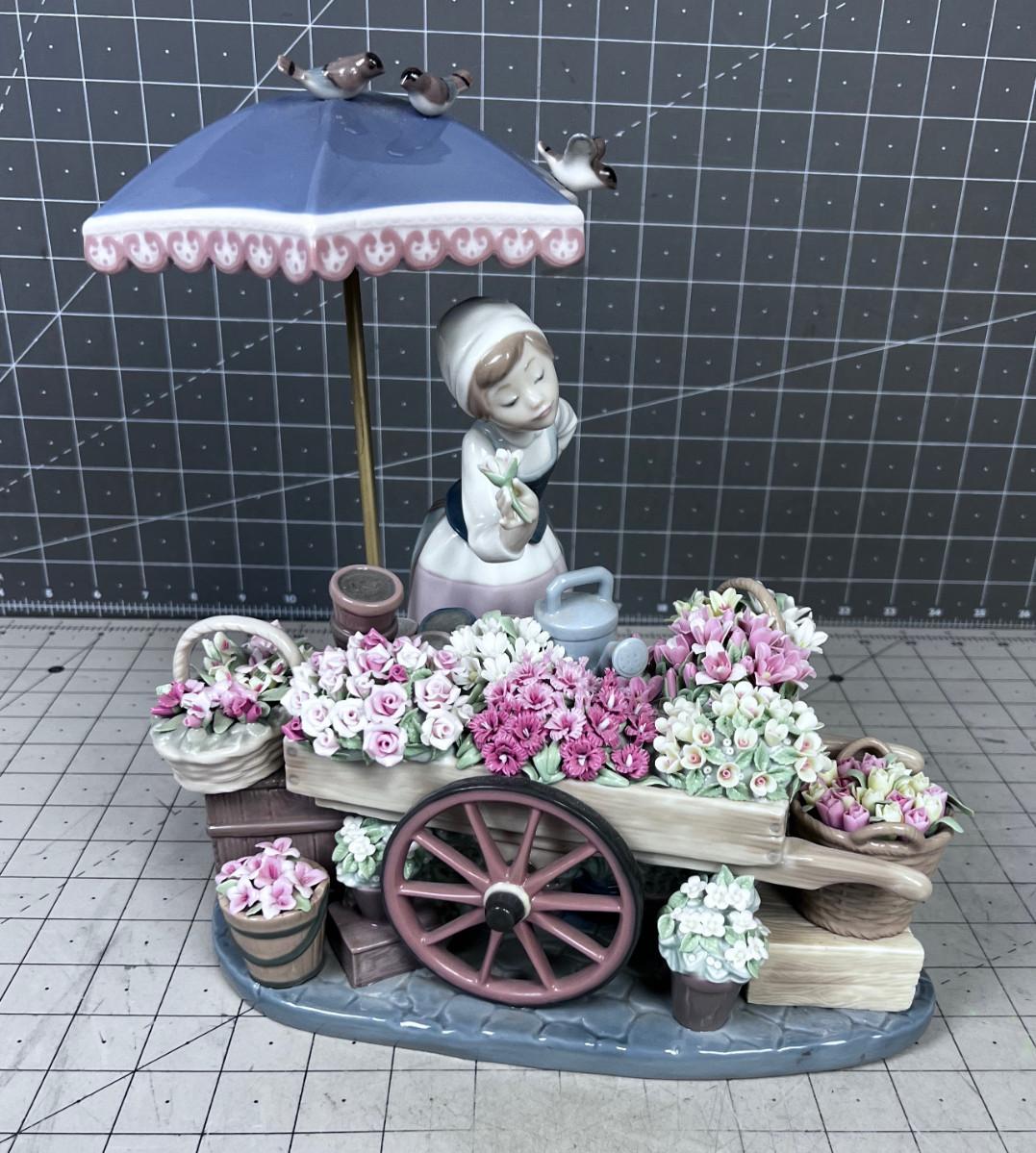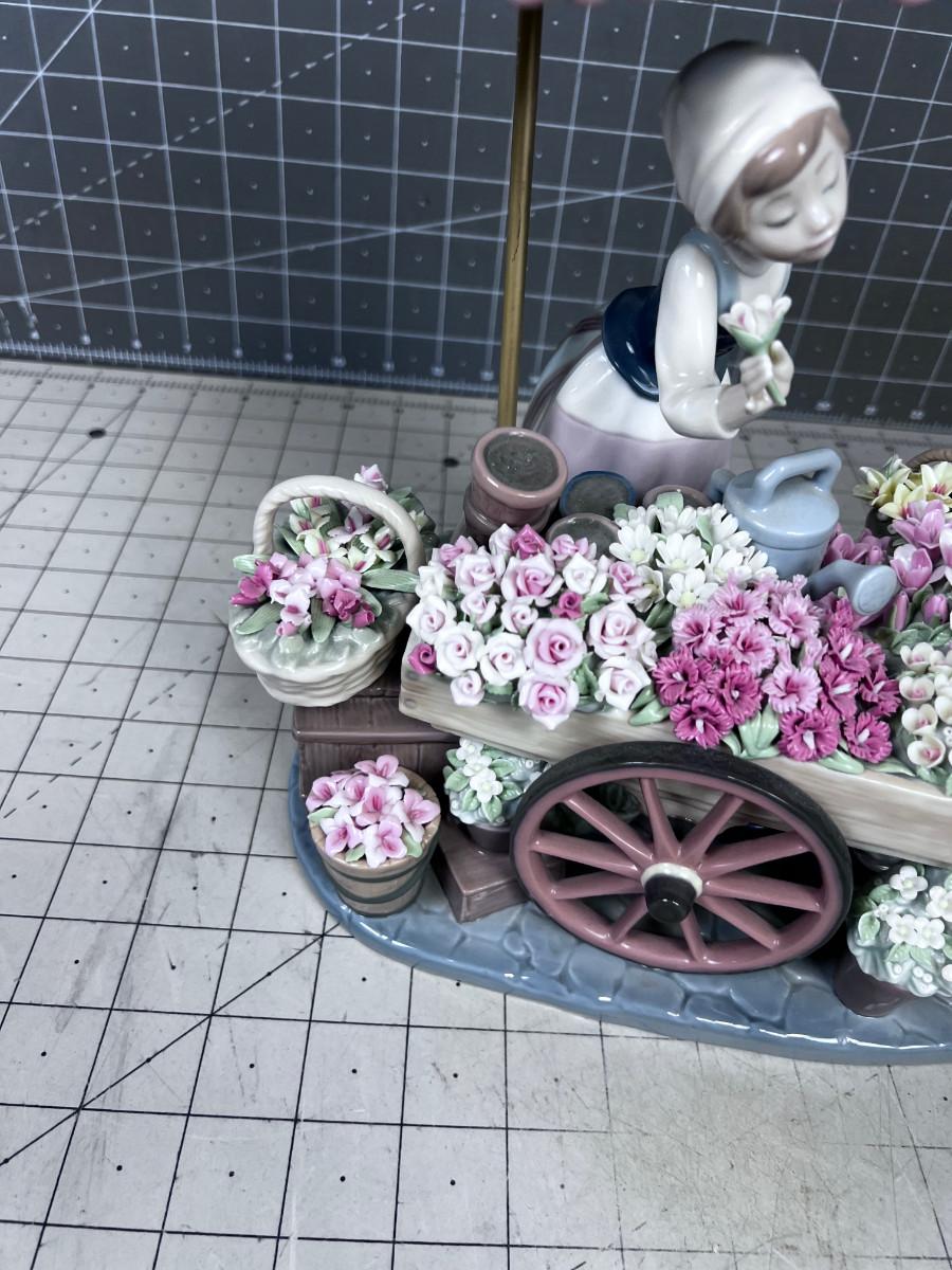 LLADRO 1454 Girl With Flower Cart and Umbrella