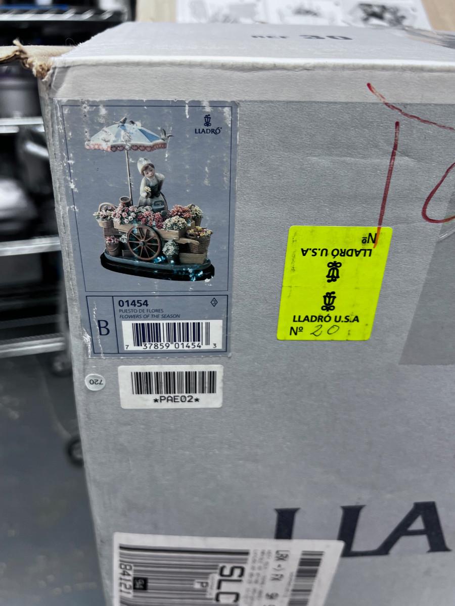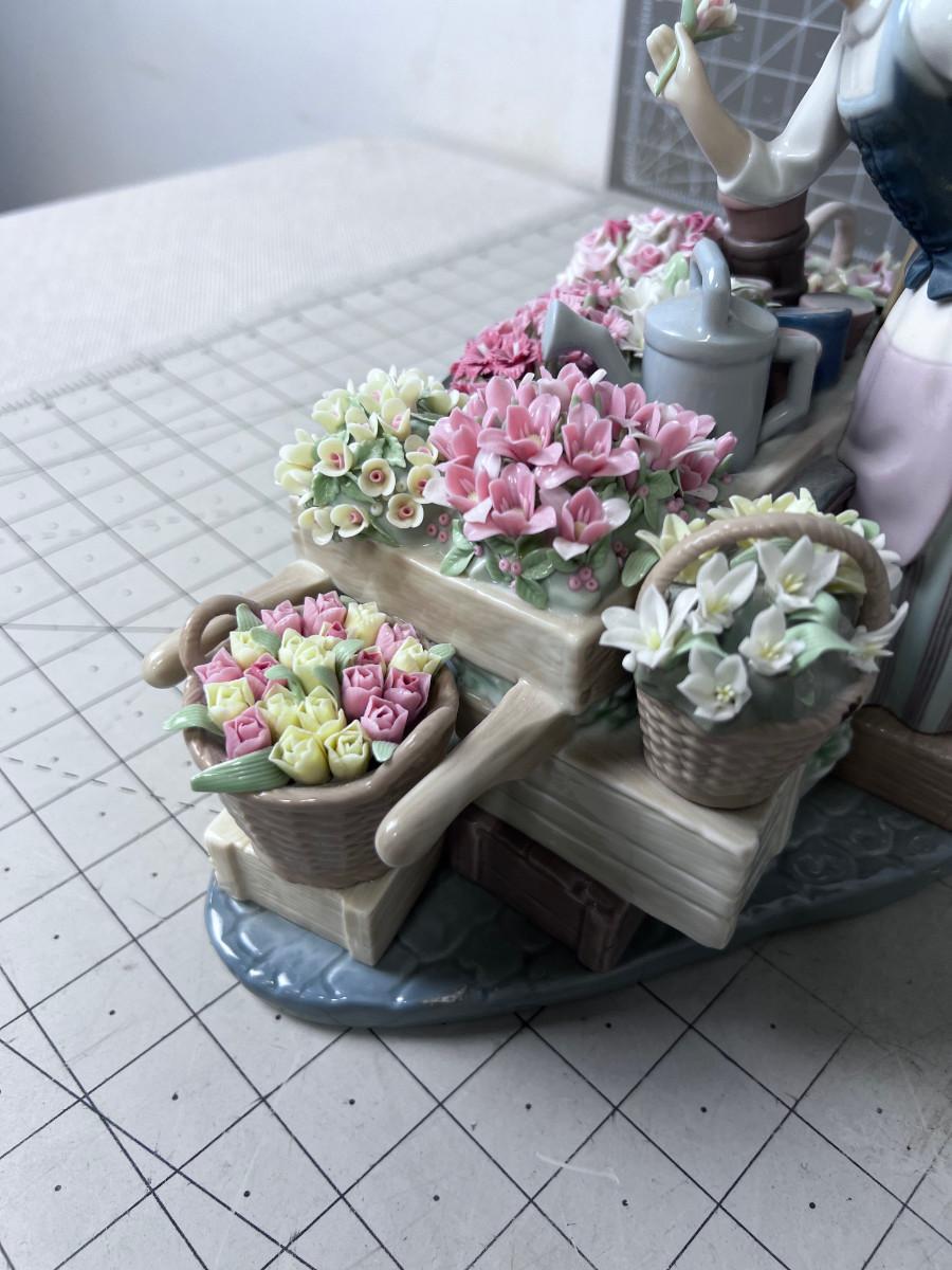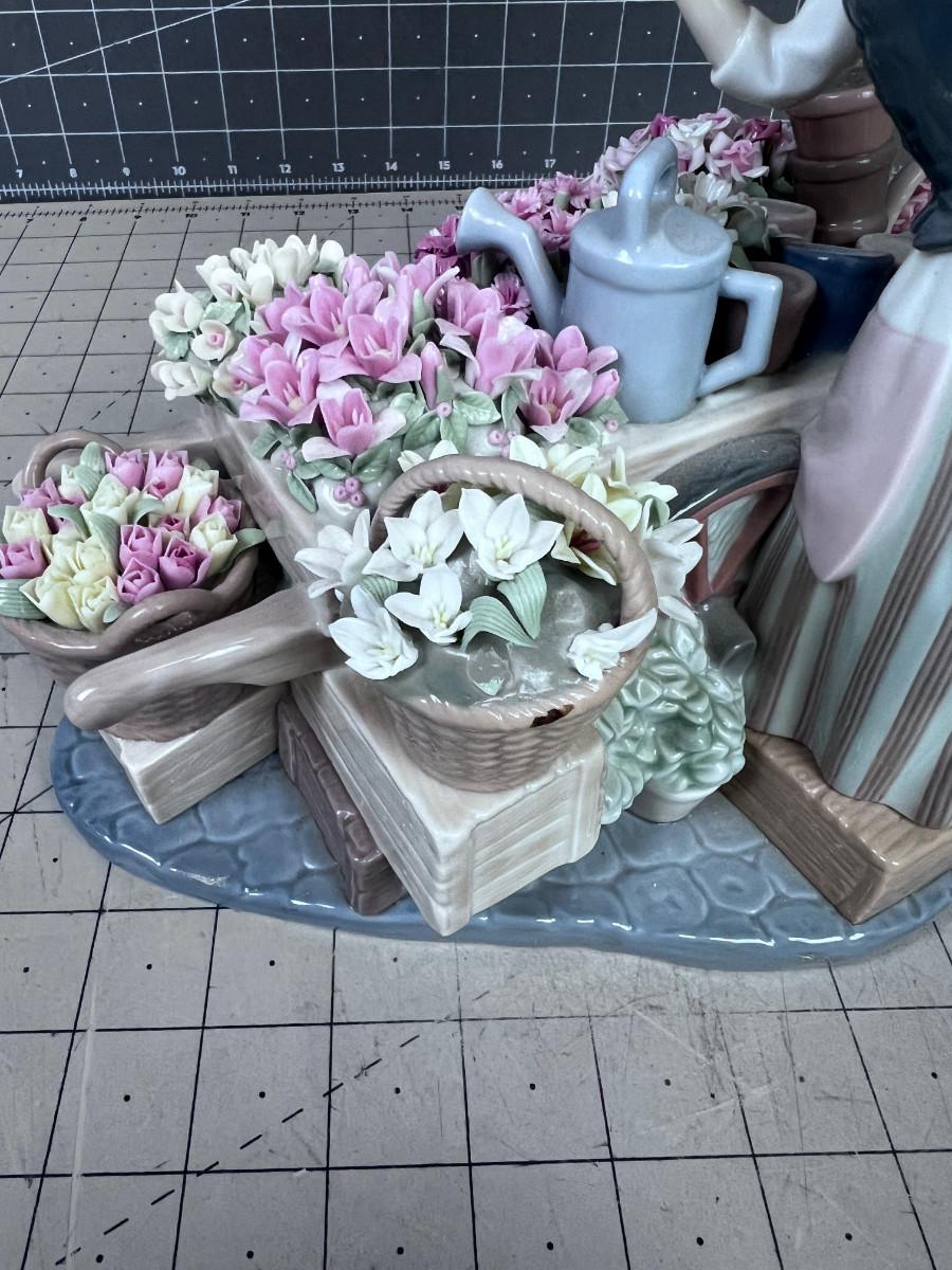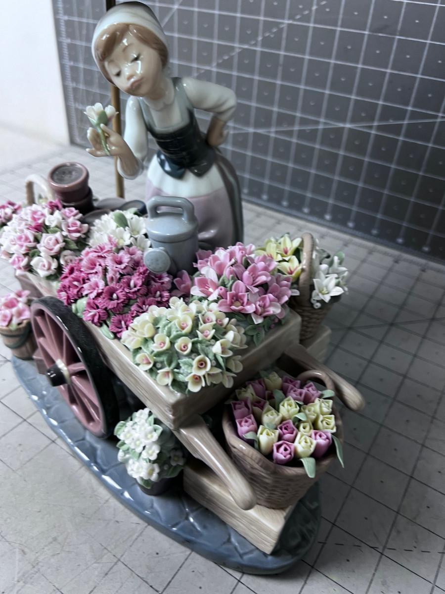 LLADRO 1454 Girl With Flower Cart and Umbrella