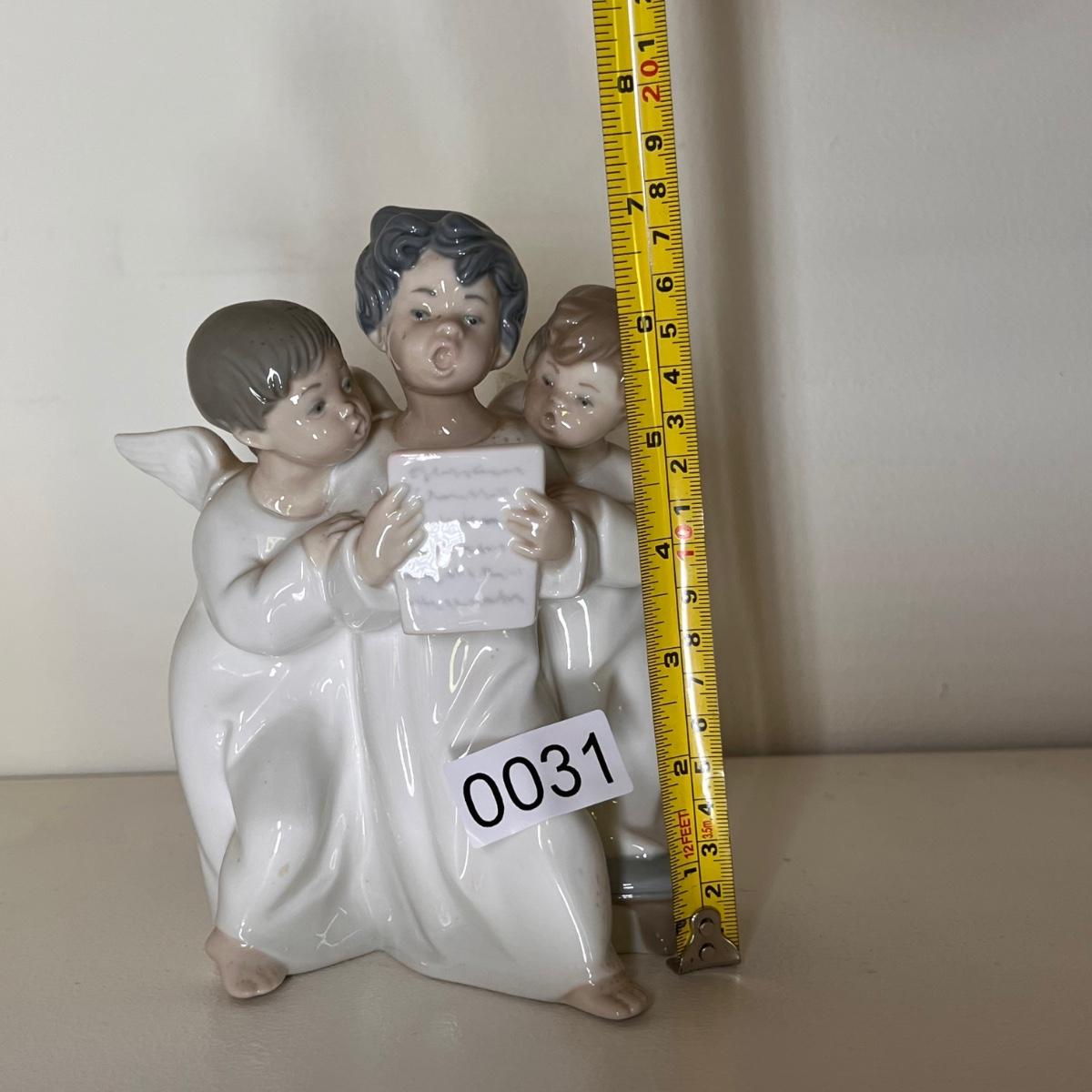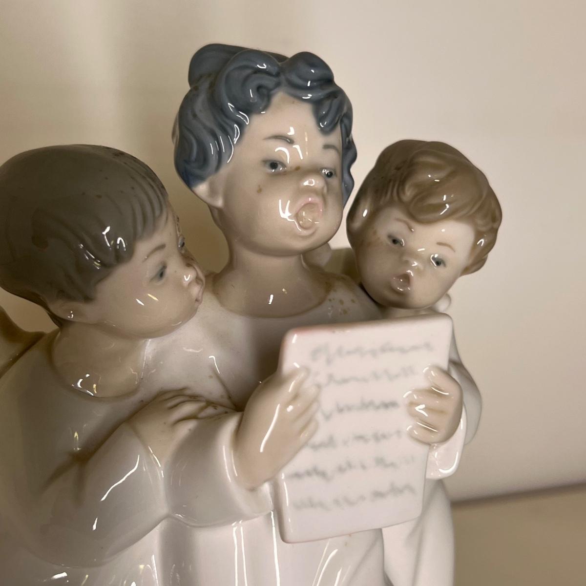 Glossy porcelain angels' figurine of three children singing with a score. Issue Year: 1970, Sculptor: Fulgencio Garcia