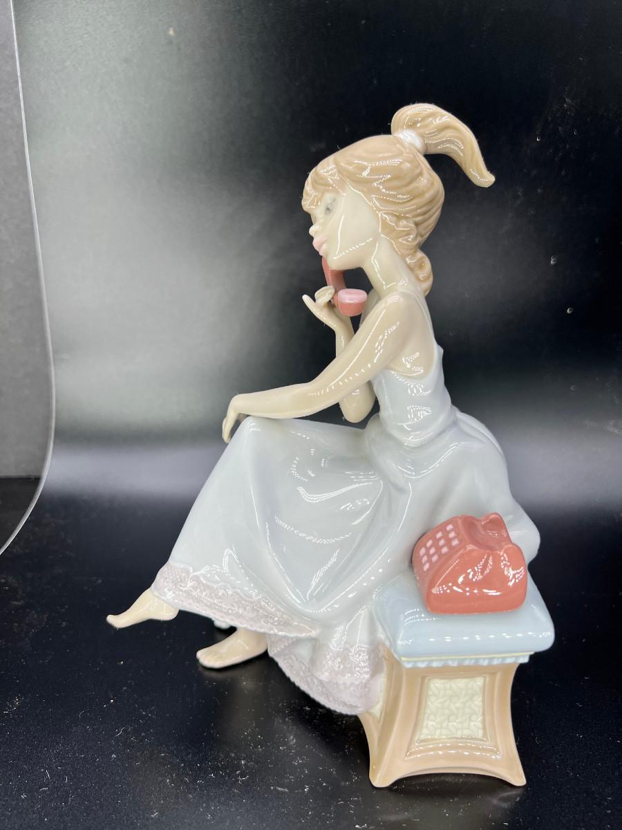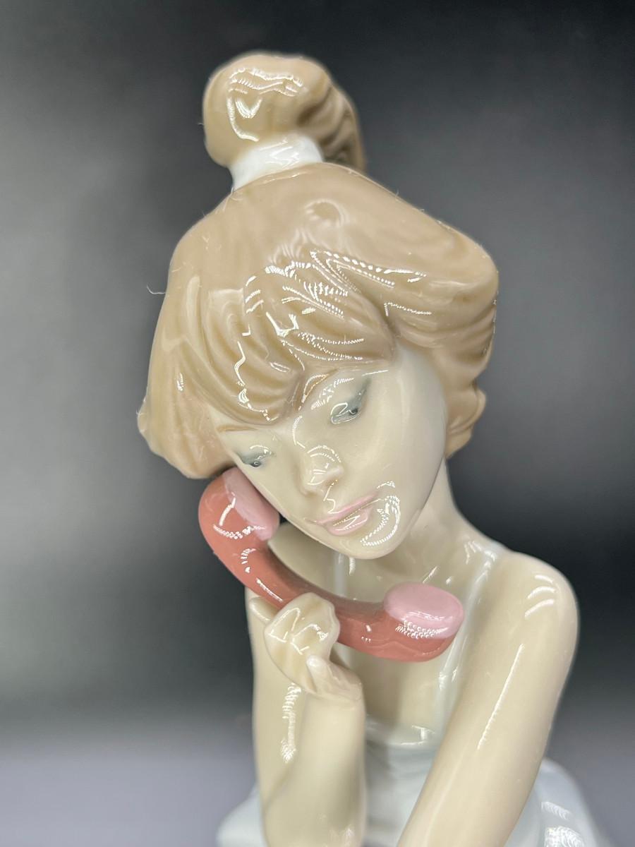 LLADRO 5466 "CHIT CHAT" GIRL ON PHONE With DOG RETIRED FIGURINE NO BOX mint Glossy glaze.