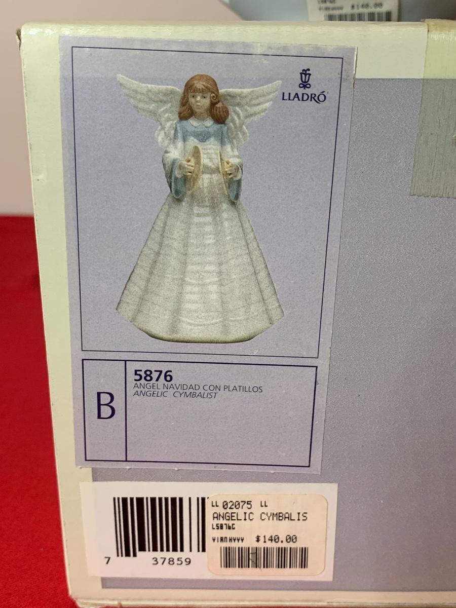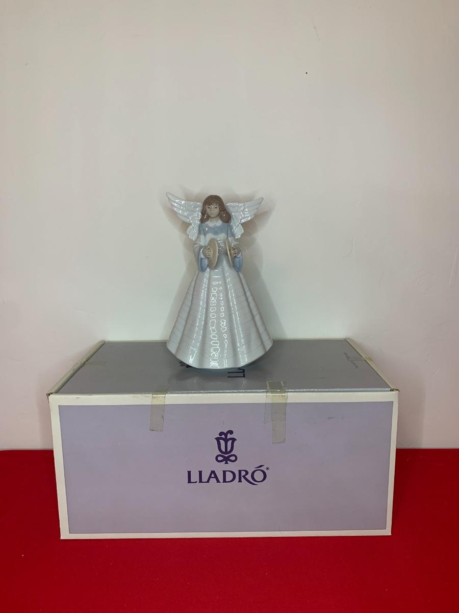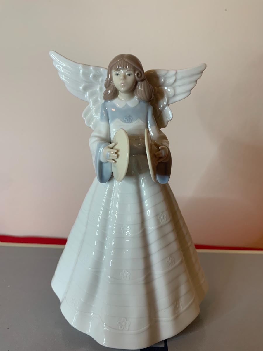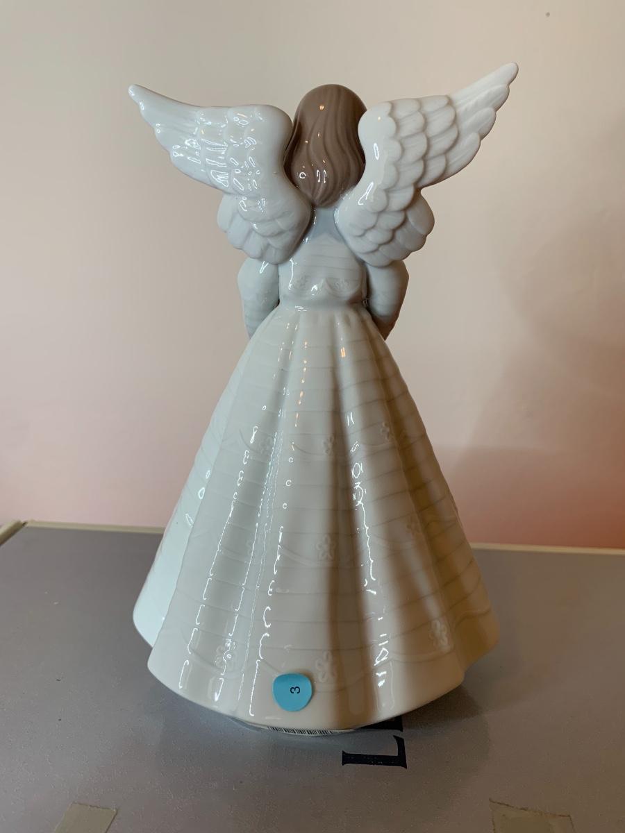 Lot includes an angelic tree topper with cymbals. Excellent condition. In original box.