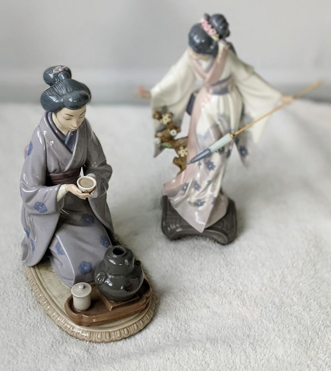 lladro Geisha Girl and Japanese Girl Serving Tea