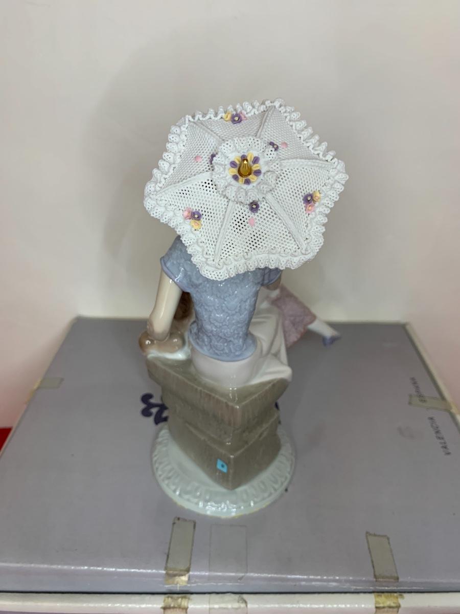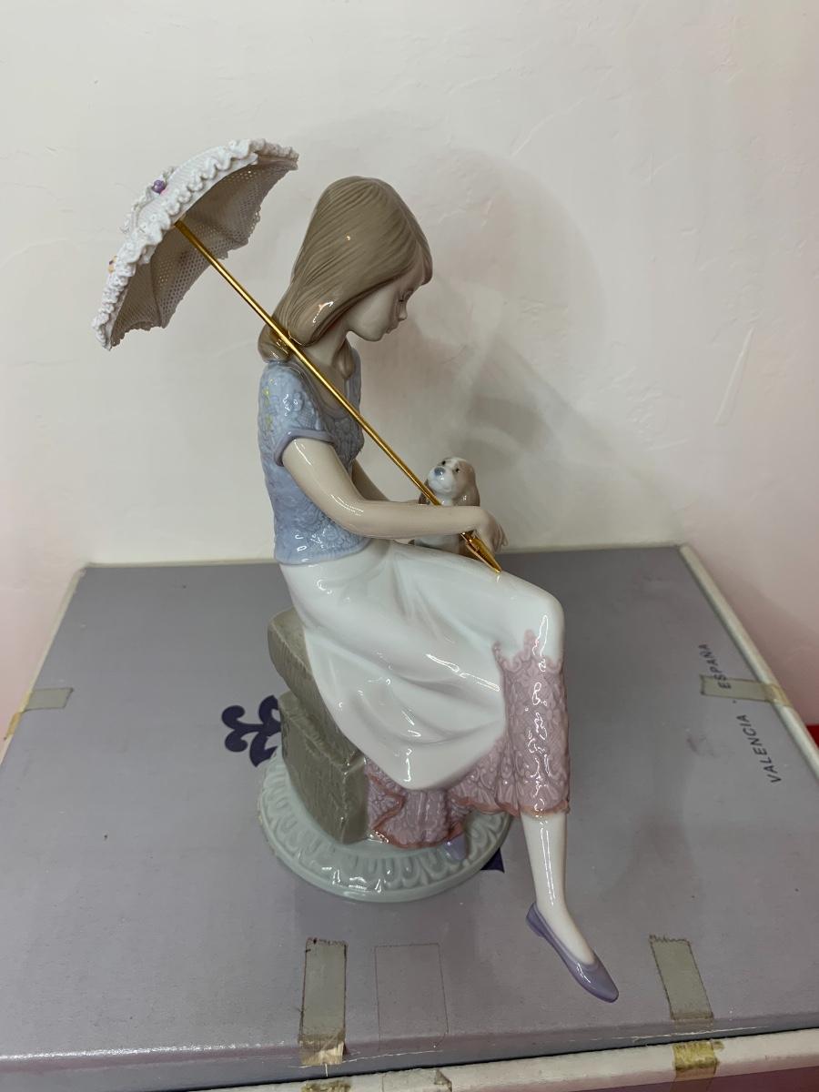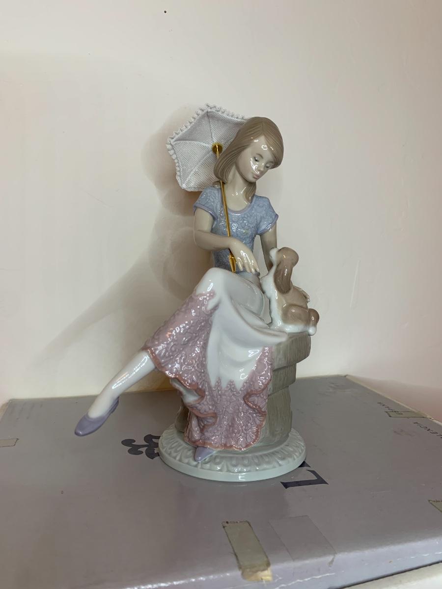 Lot includes a figurine with puppy dog and parasol. Very good condition. In original box.