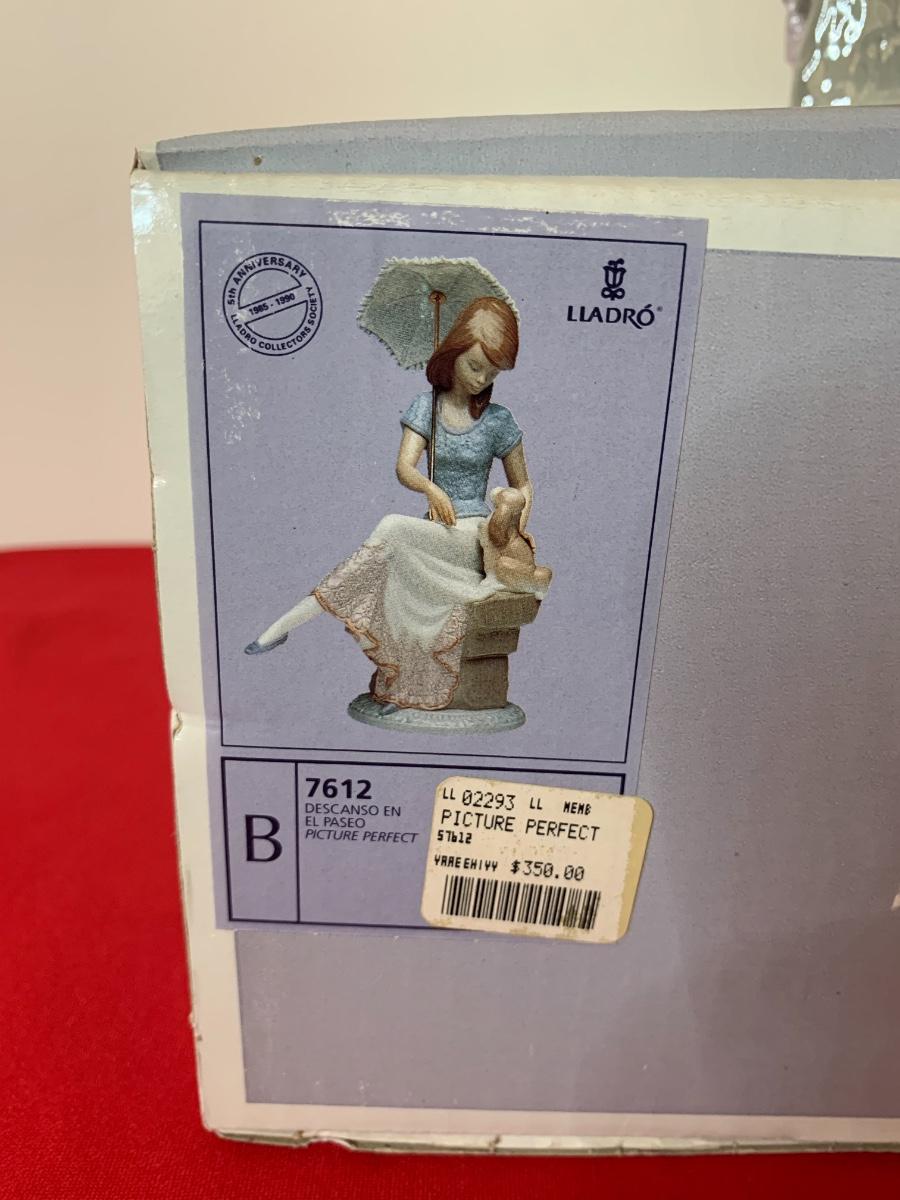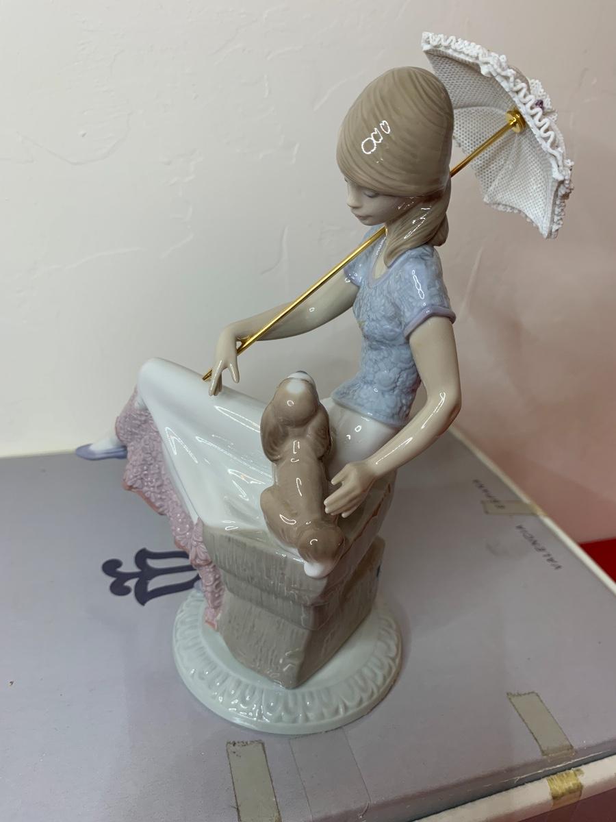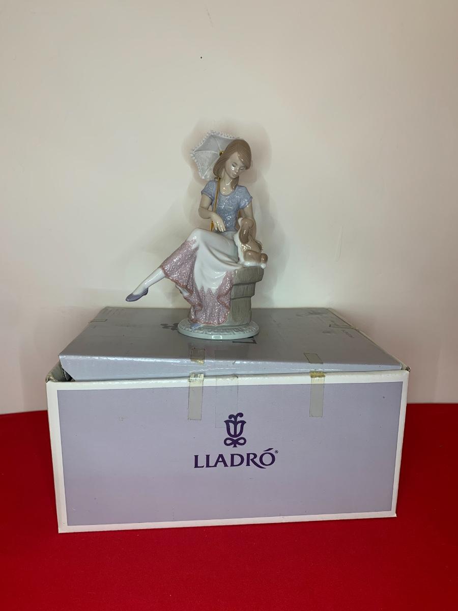 Lot includes a figurine with puppy dog and parasol. Very good condition. In original box.