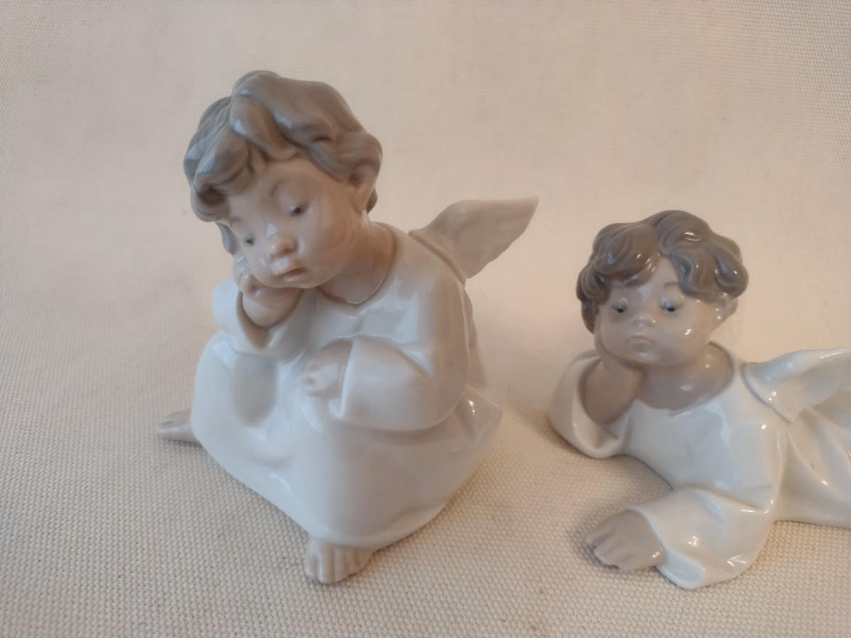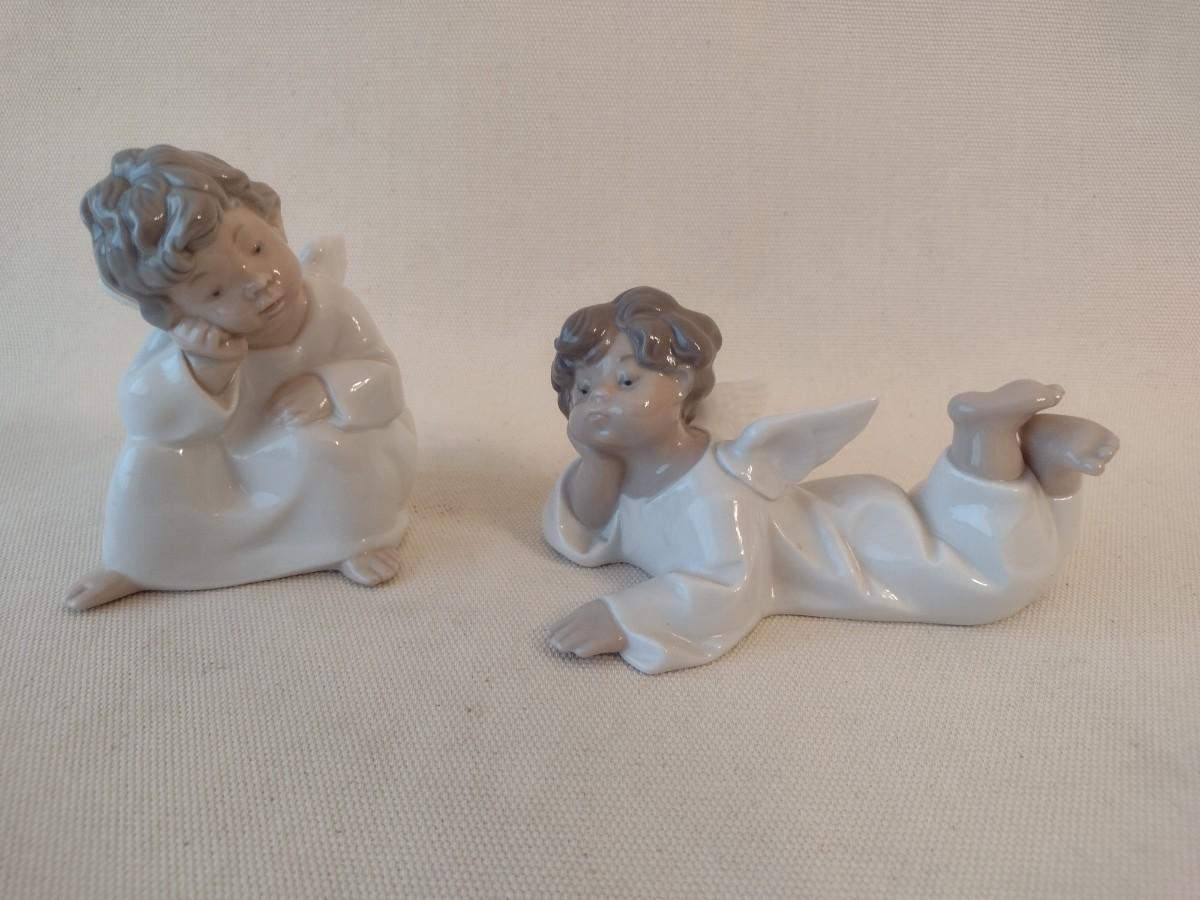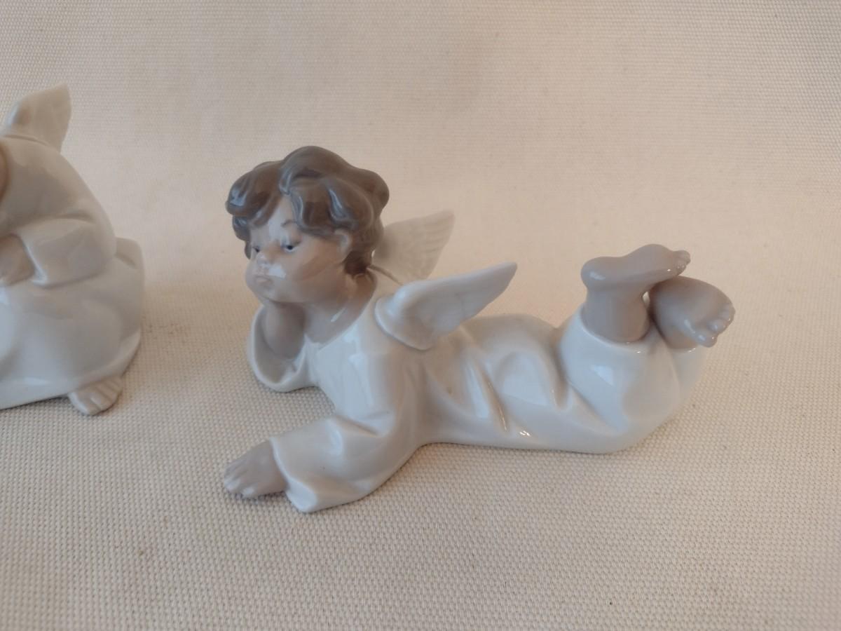 Lladro Angel #4541 Laying Down and #4539 Thinking Angel Signed by Artist