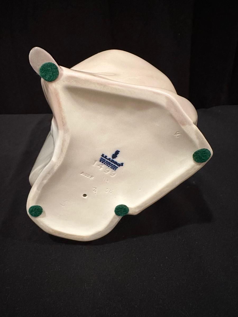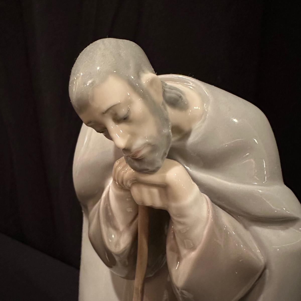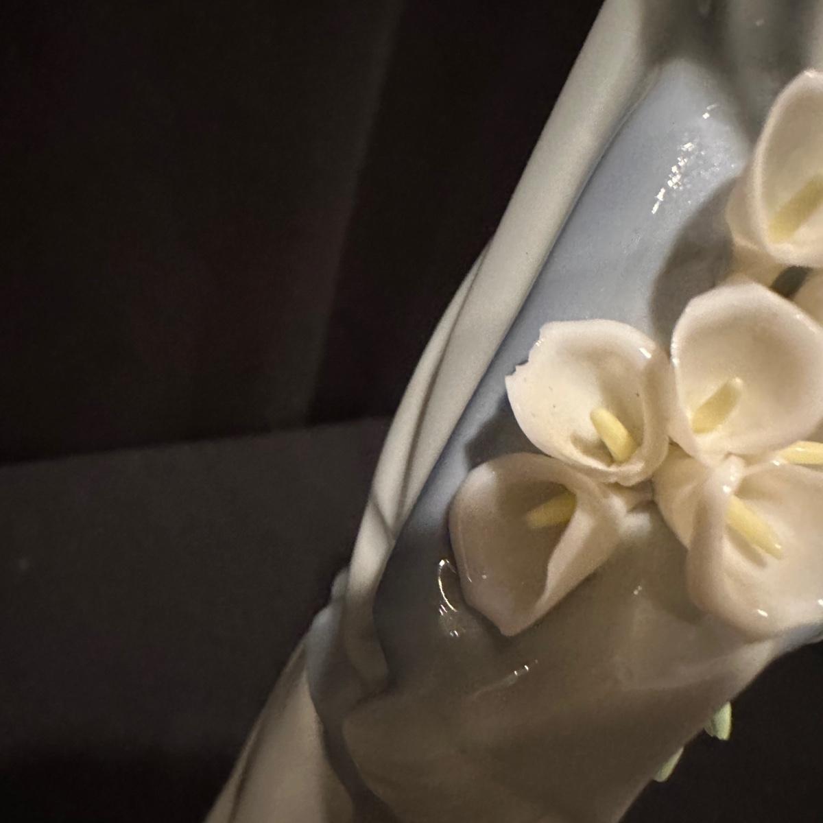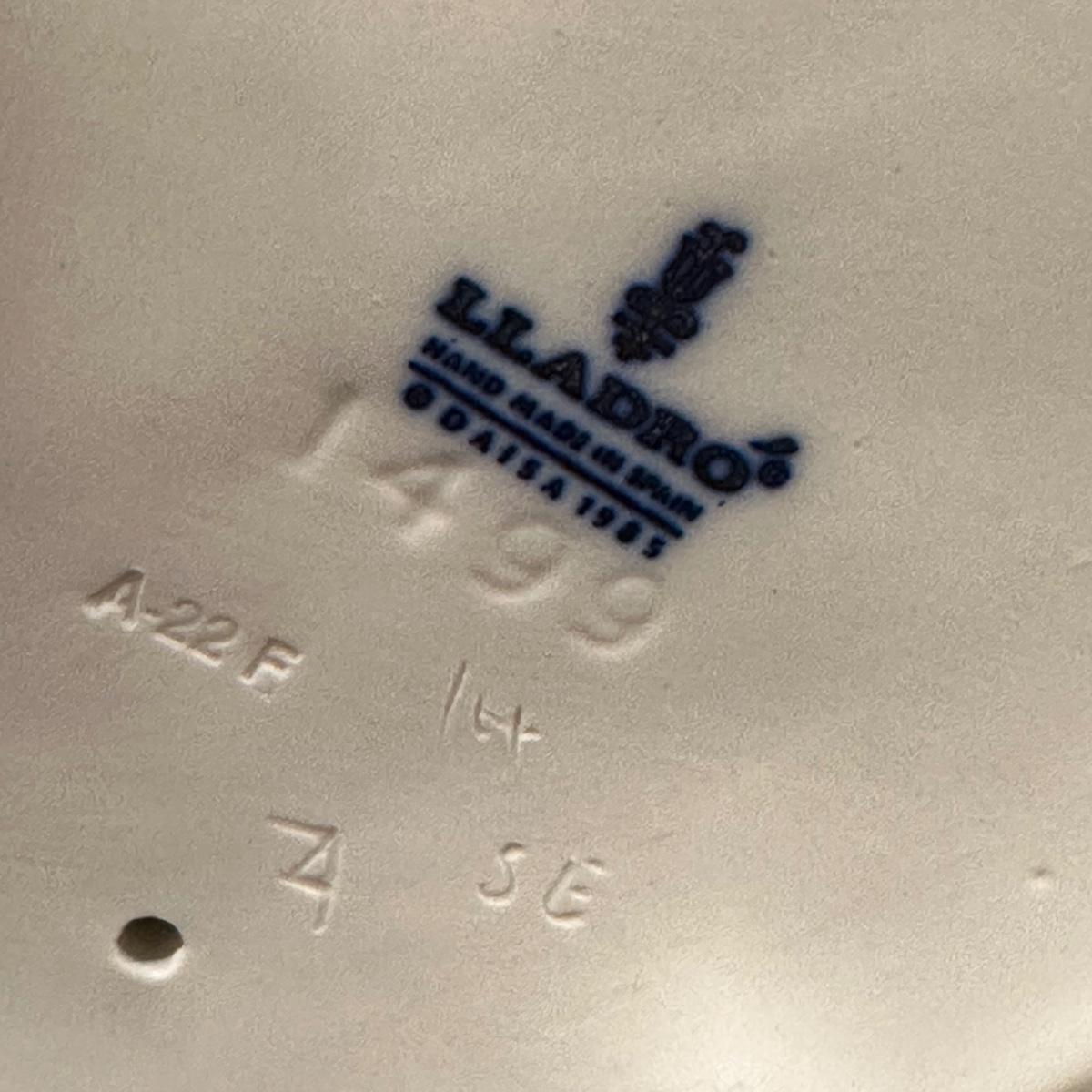 Two Lladro figurines, one of which appears to be the Blessed Family. Both figurines are marked Lladro. Another figurine of a lady with a bouquet is included; flower is chipped in the bouquet of the single figurine. All appear to be porcelain. See photo. Tallest piece measures 5" x 6" x 10.5”H. Shipping available.