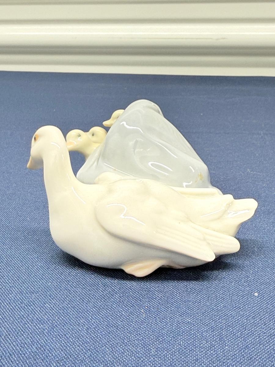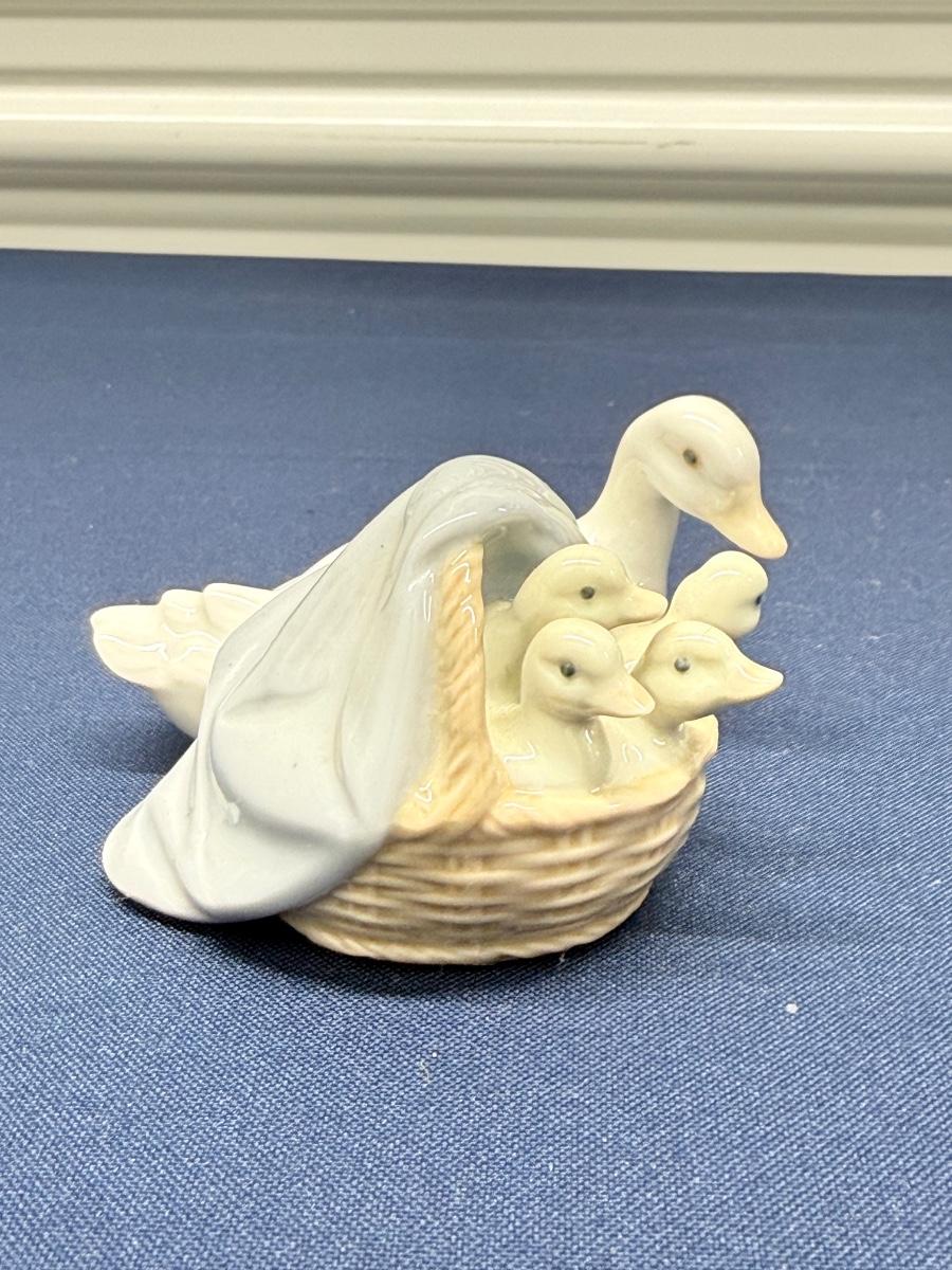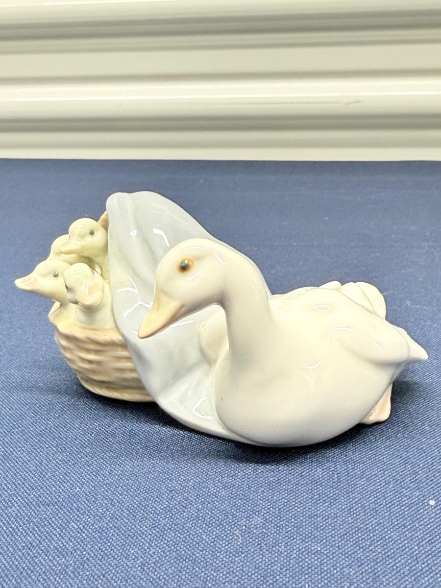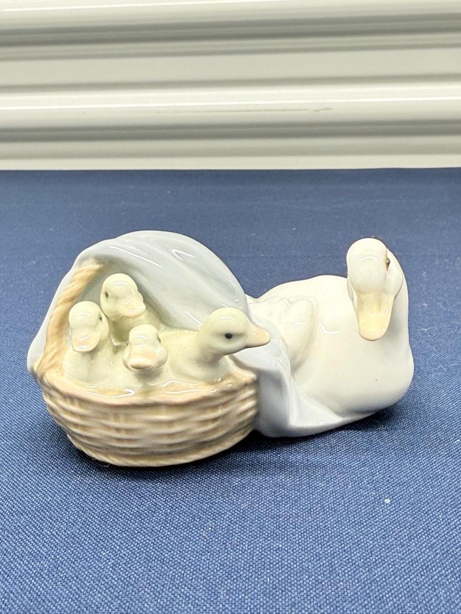 Lladro Ducklings Figurine Mother Duck With Babies In Basket