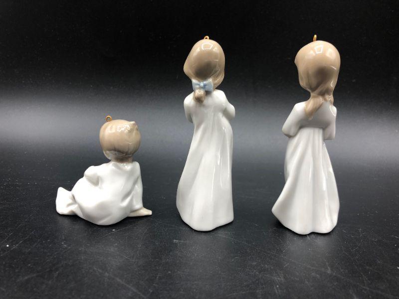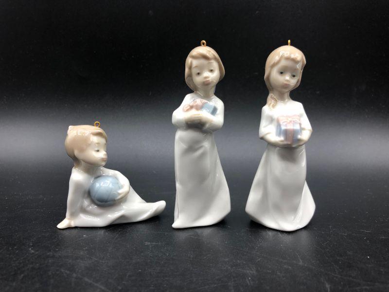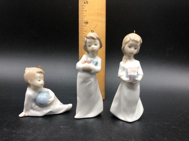 Lladro #5940 "Christmas Morning" Child ornament figurines. Set of 3. Good Condition. Display nicely. Under 4" size.