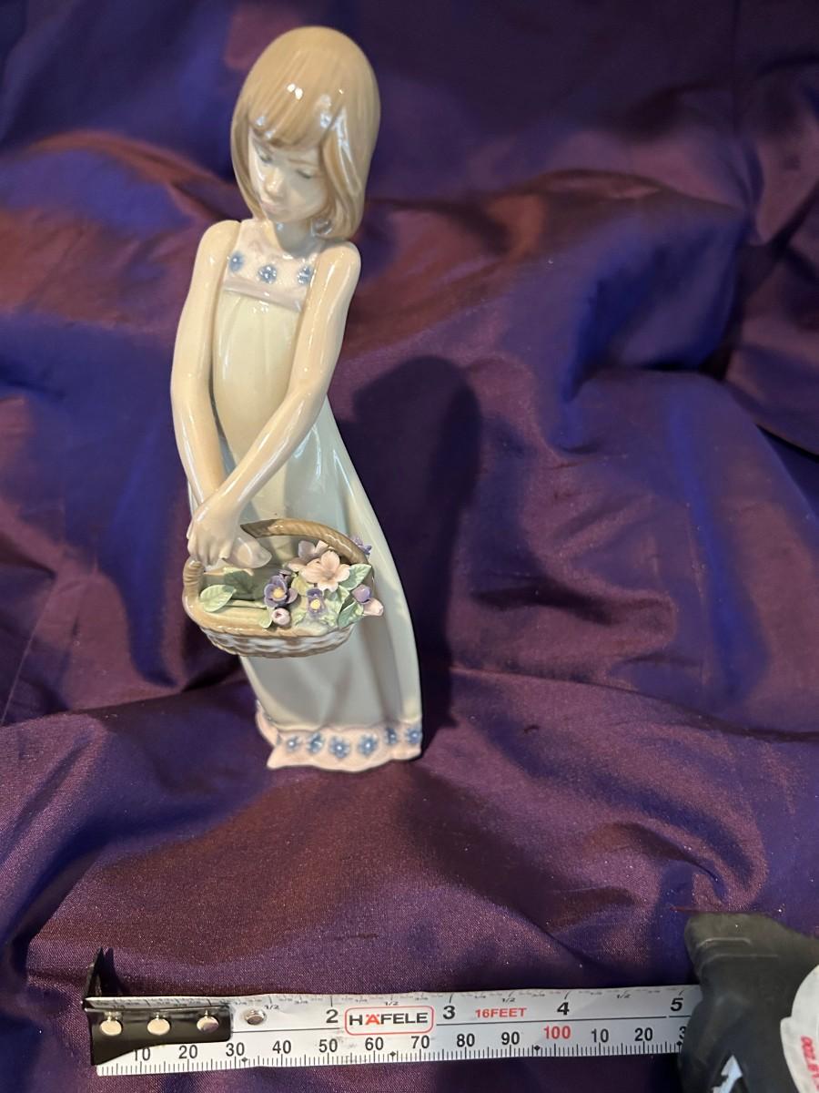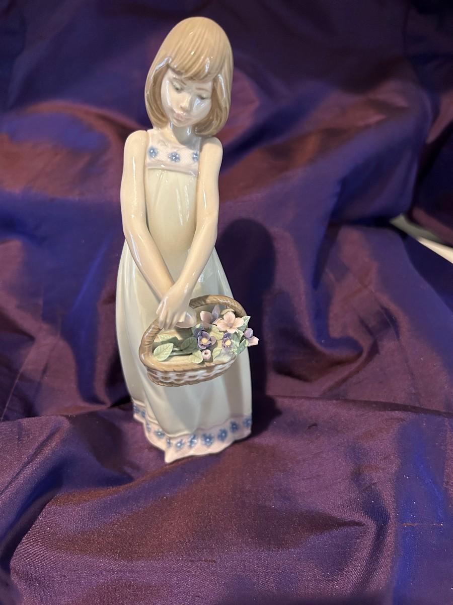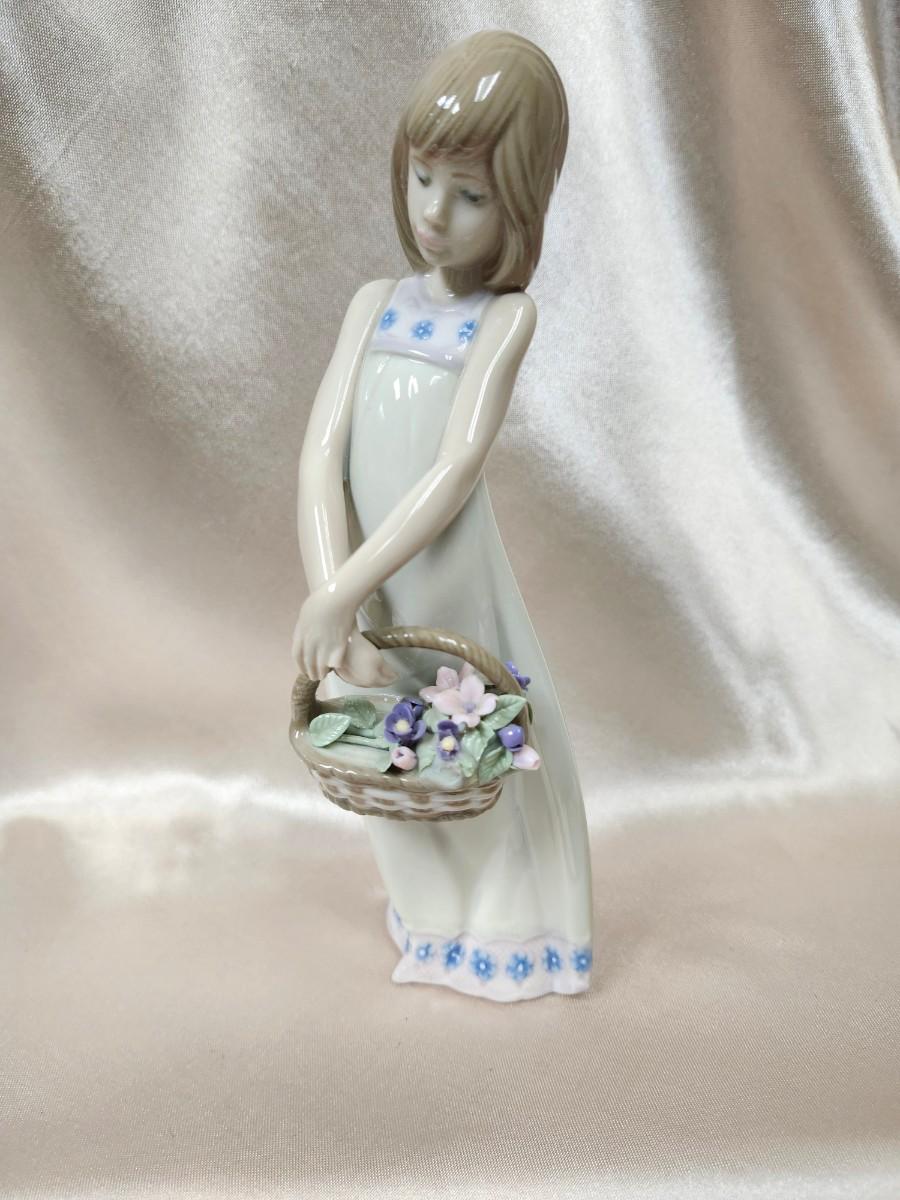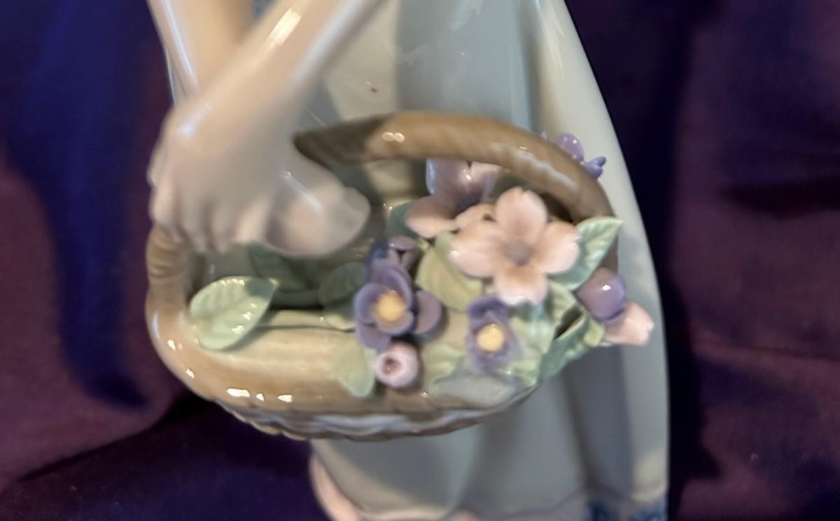 Porcelain Figurine, retired in 2007. Exquisite young girl with delicate floral basket. Excellent condition. 7.75 inches tall. Retailing at $86 to $500 online.